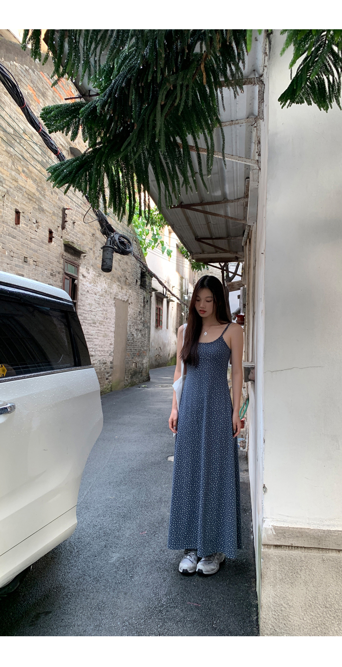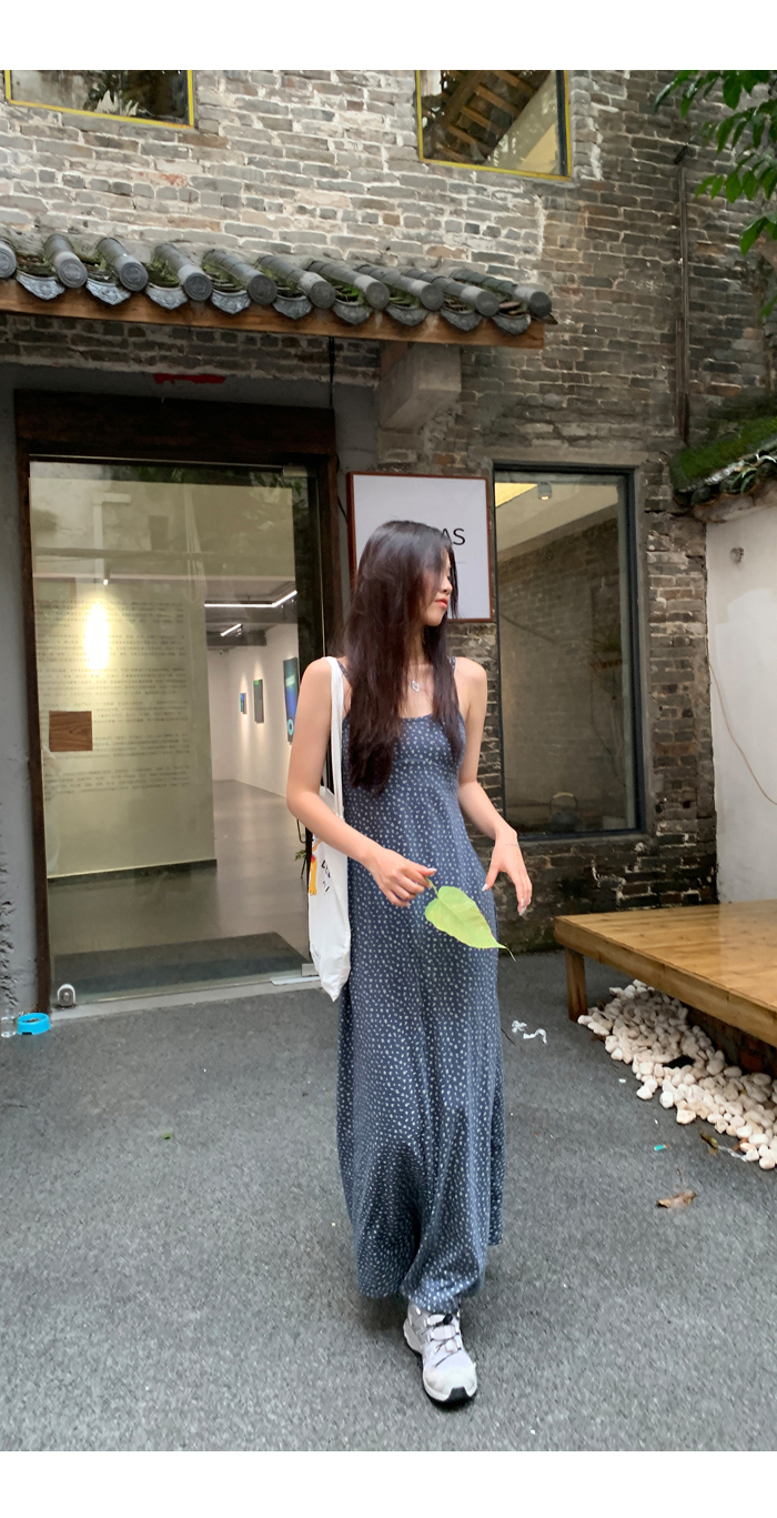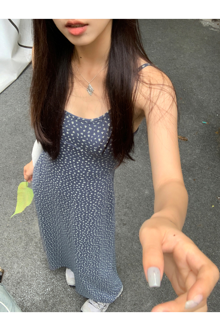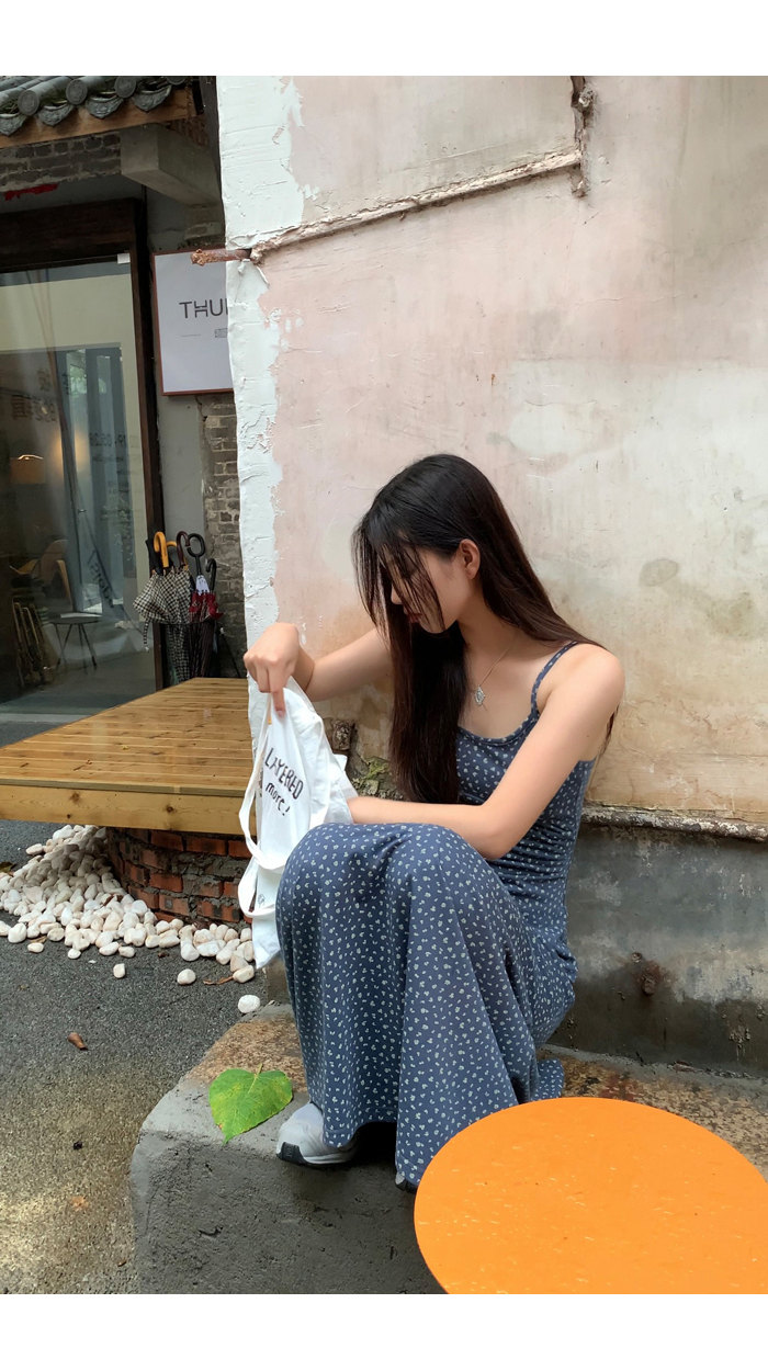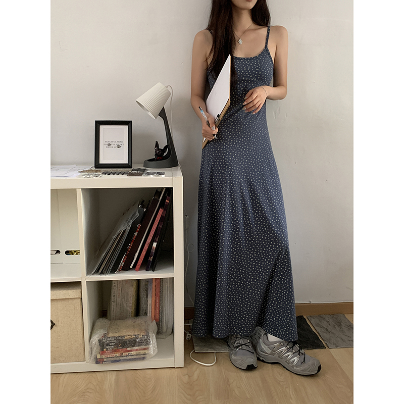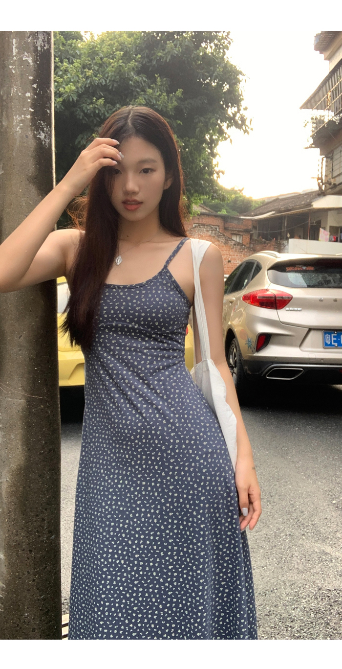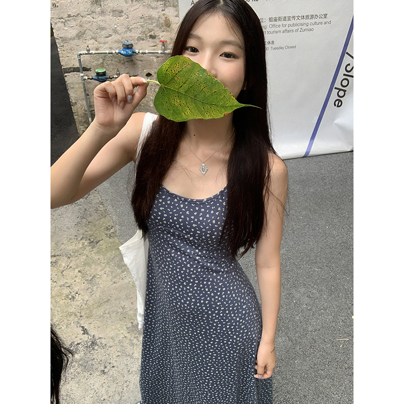 紅人館吊帶洋裝女夏季2023新款垂墜感無袖法式長裙顯瘦碎花裙子