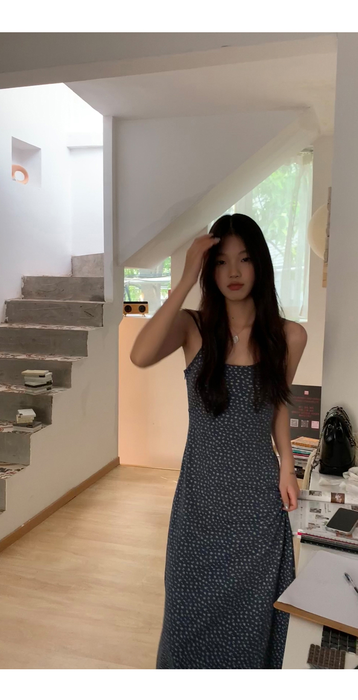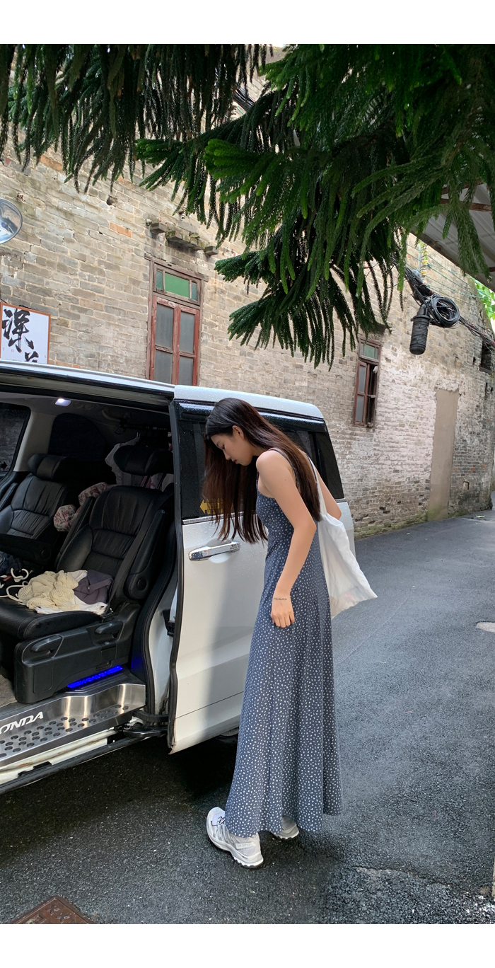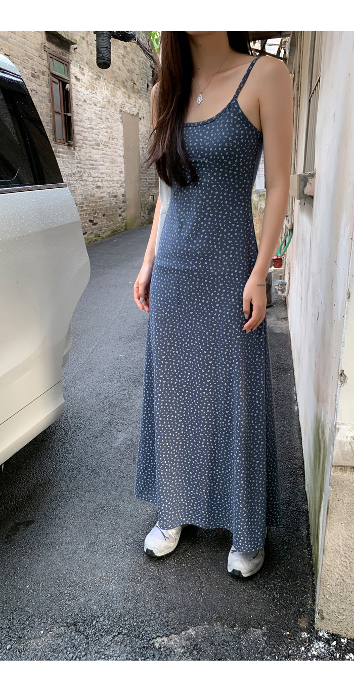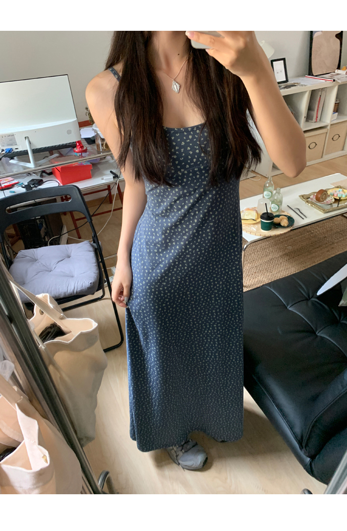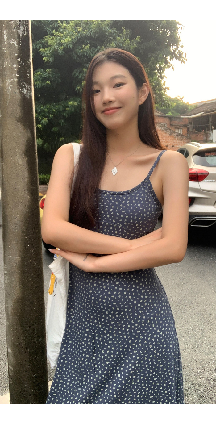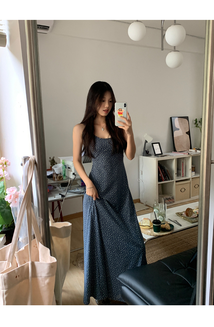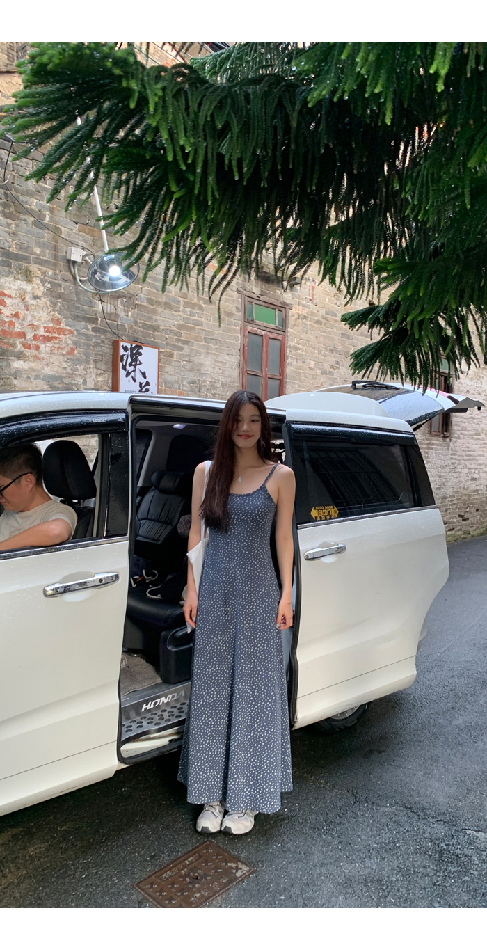 紅人館吊帶洋裝女夏季2023新款垂墜感無袖法式長裙顯瘦碎花裙子
