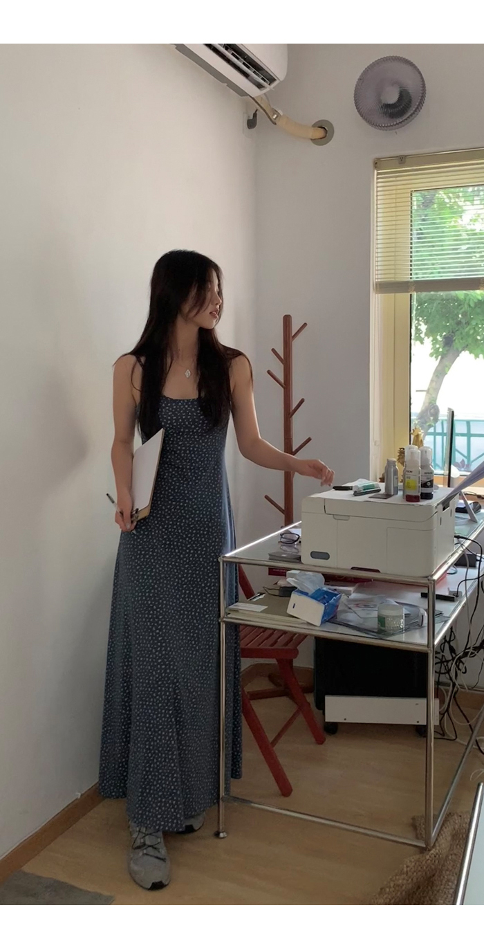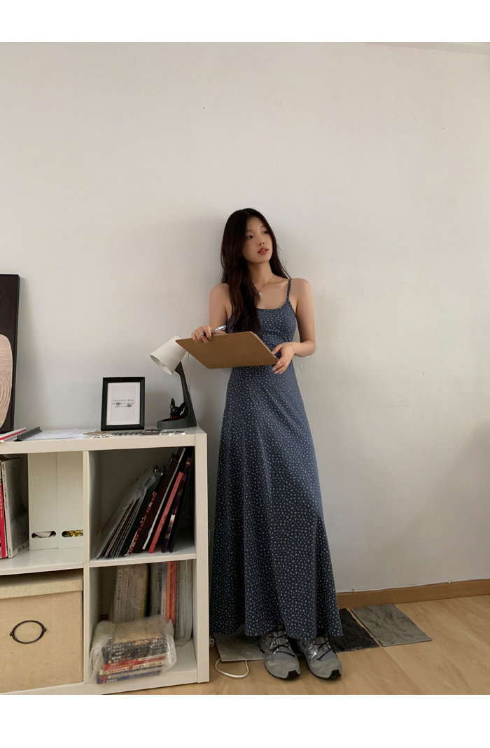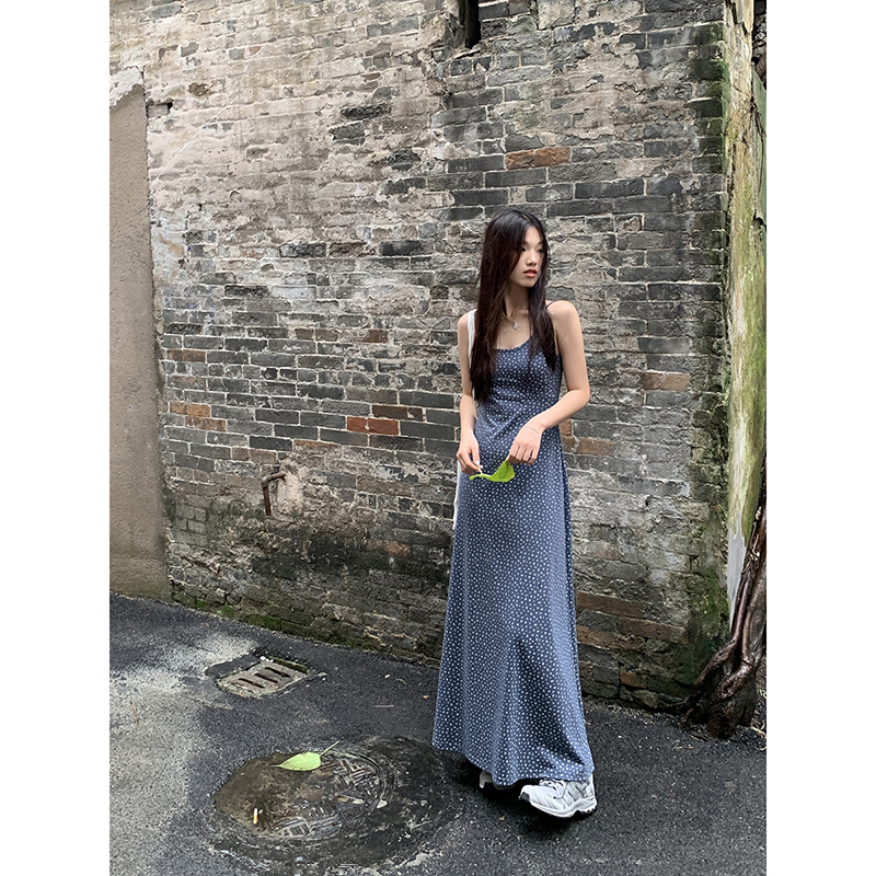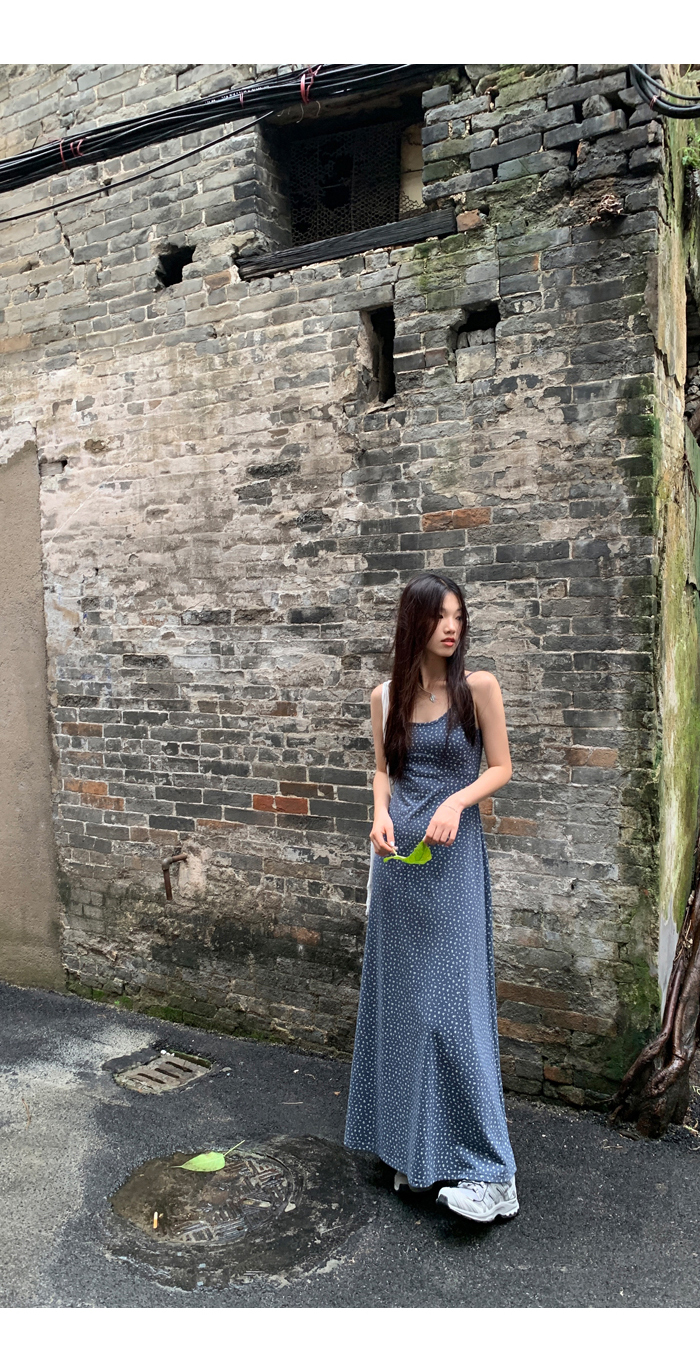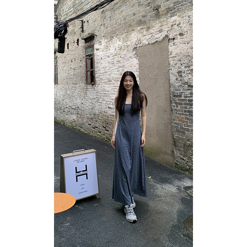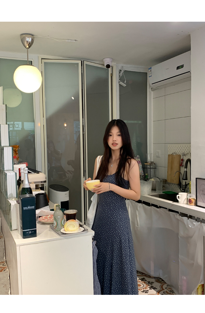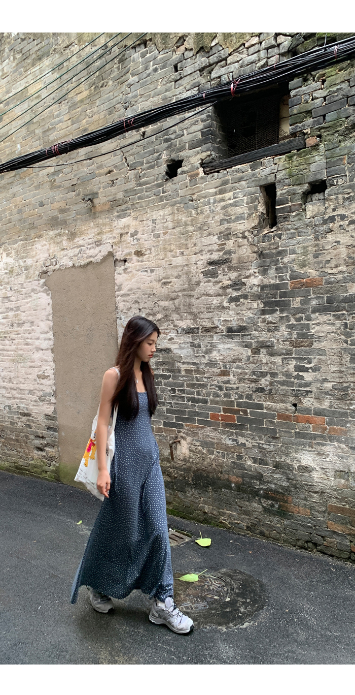 紅人館吊帶洋裝女夏季2023新款垂墜感無袖法式長裙顯瘦碎花裙子