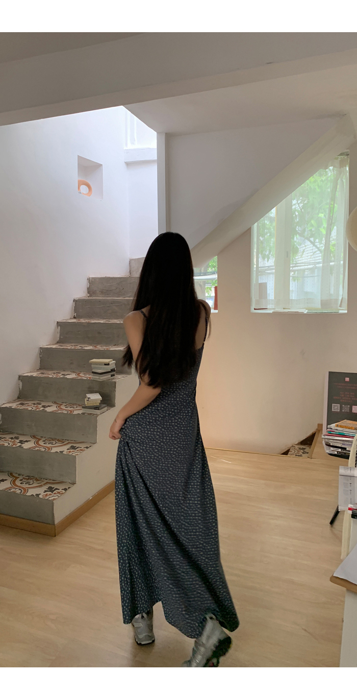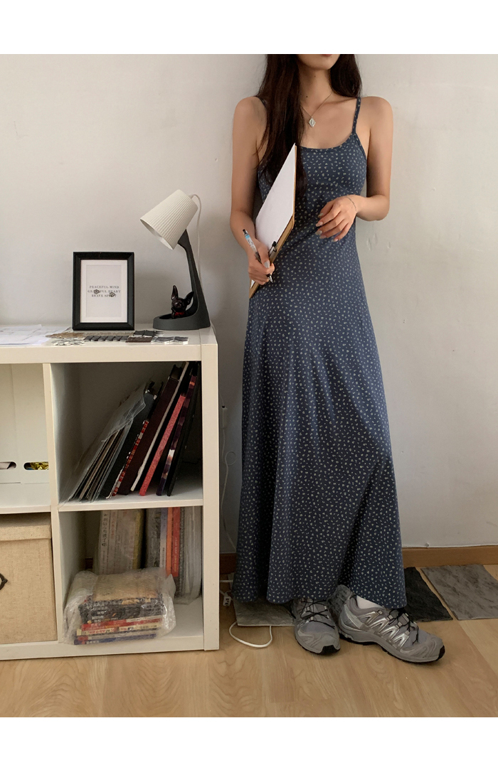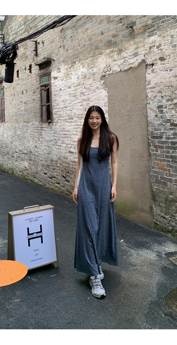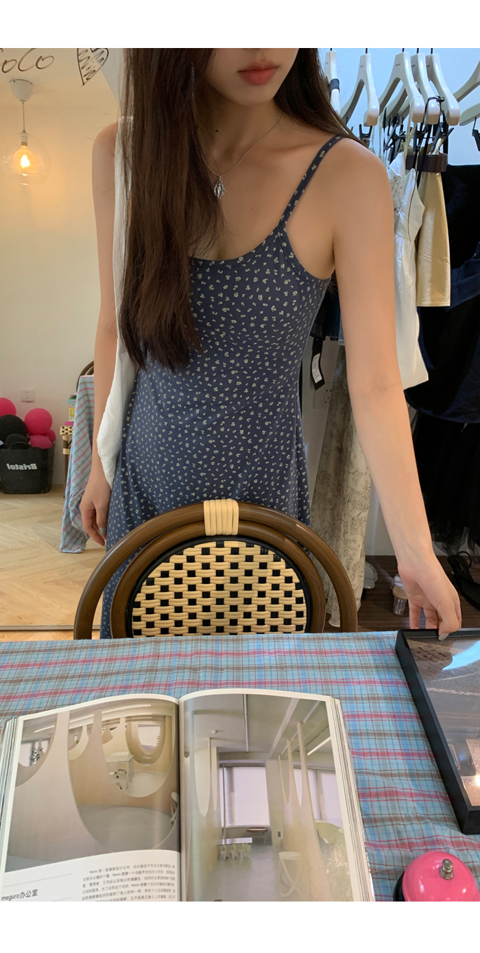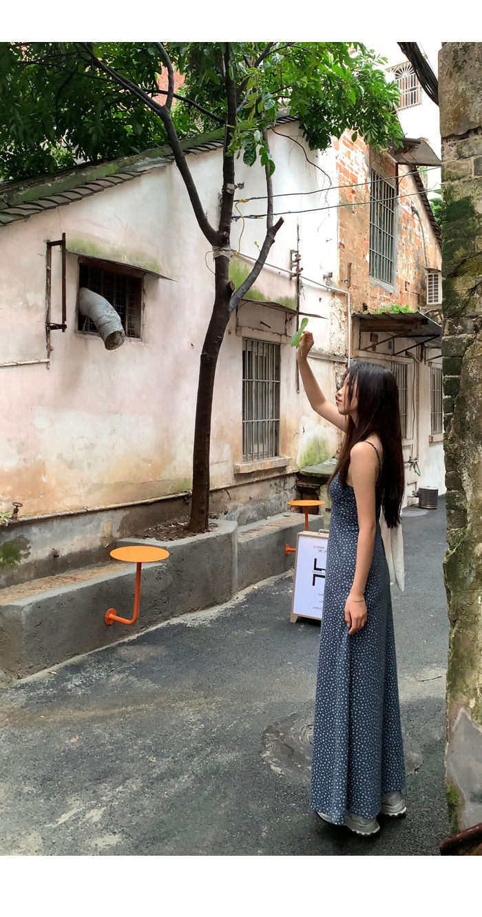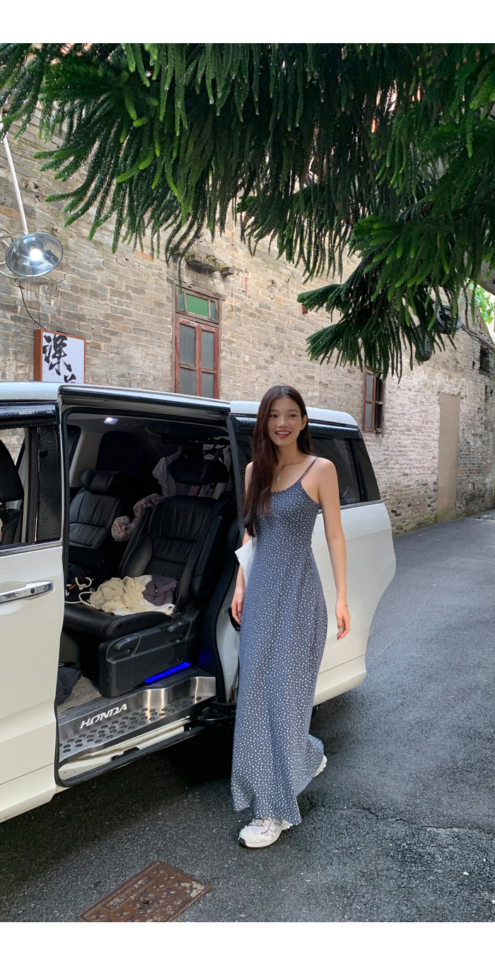 紅人館吊帶洋裝女夏季2023新款垂墜感無袖法式長裙顯瘦碎花裙子