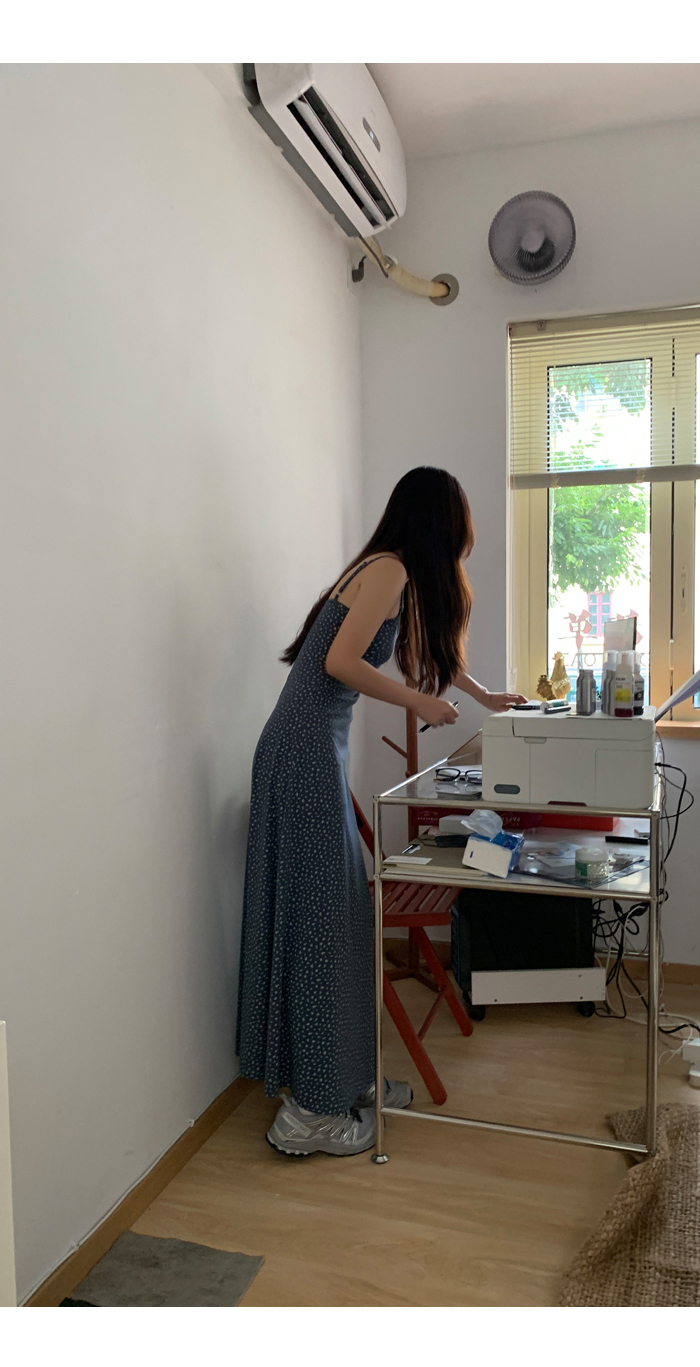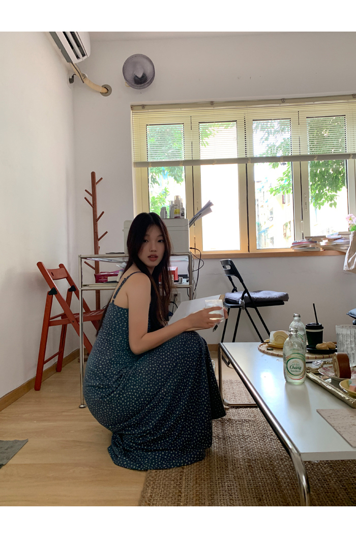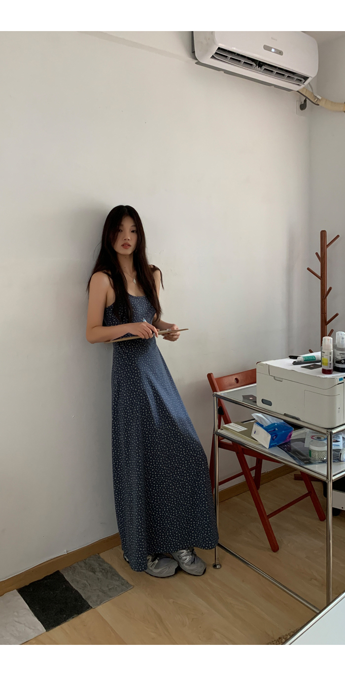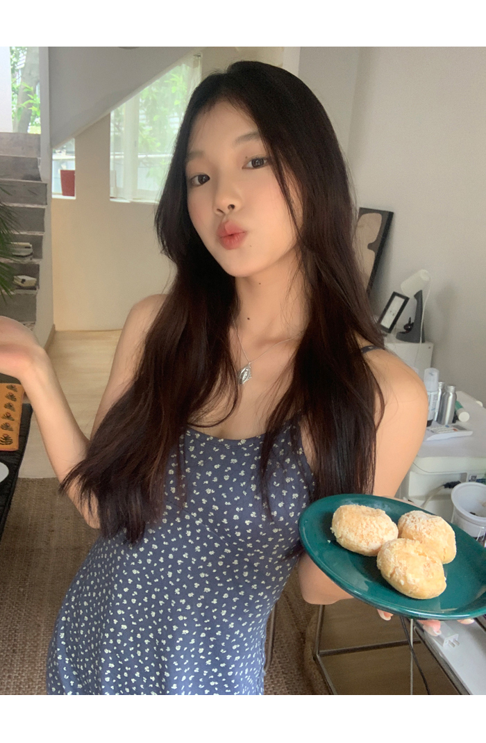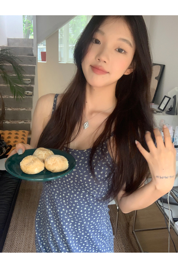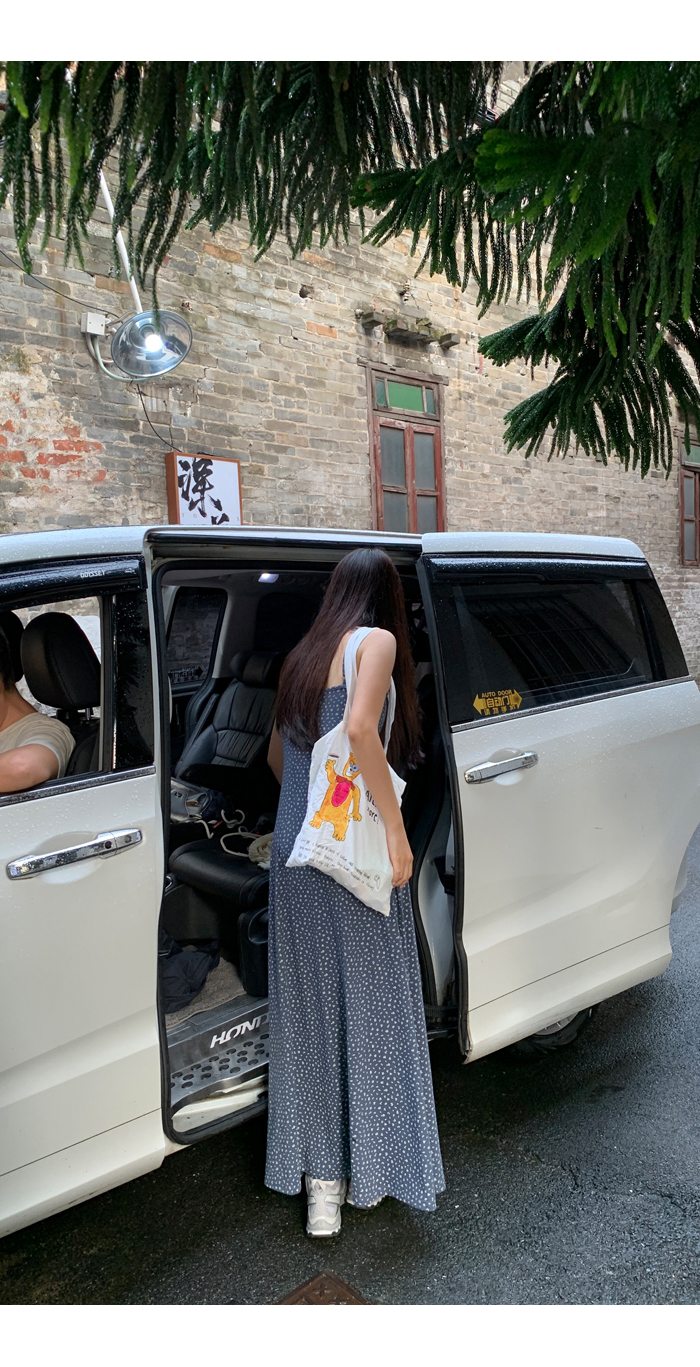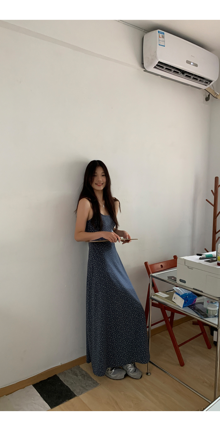 紅人館吊帶洋裝女夏季2023新款垂墜感無袖法式長裙顯瘦碎花裙子