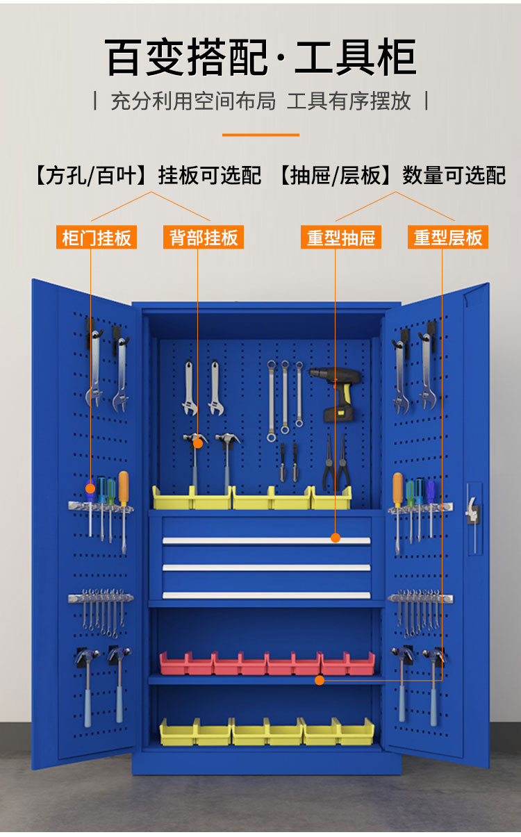 五金工具柜工具车车间工具收纳多功能零件柜加厚双开门重型汽修柜