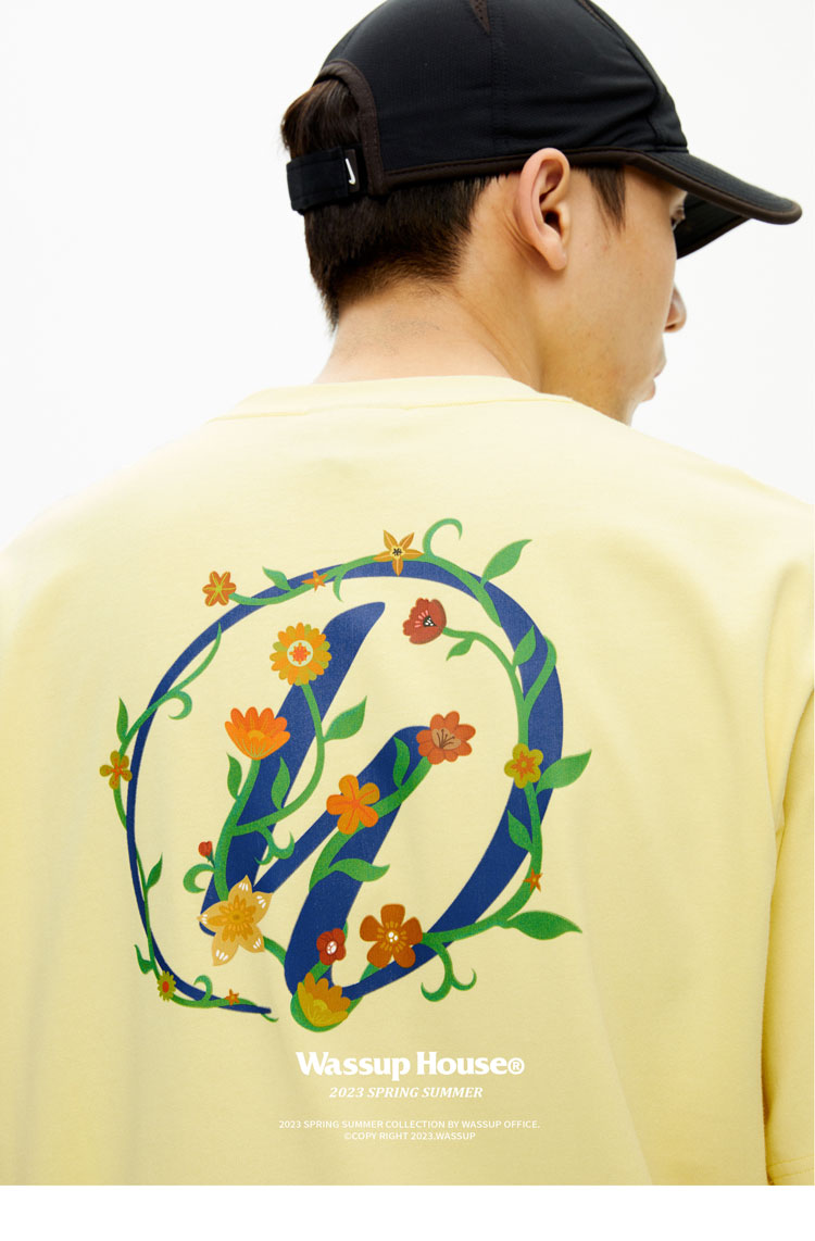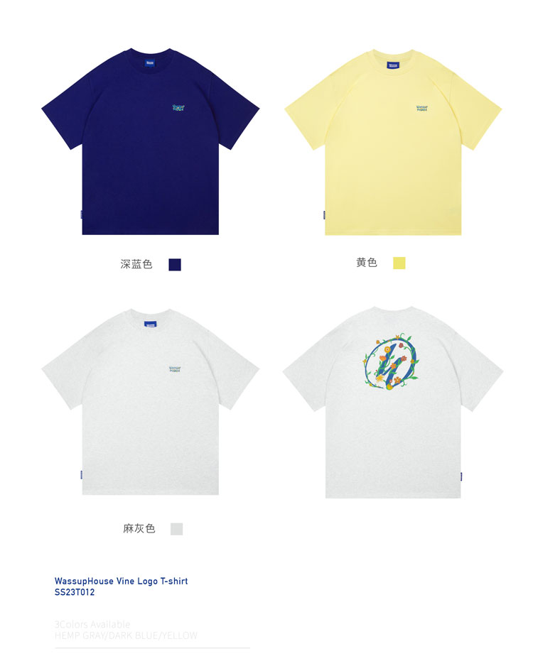 WASSUP藤蔓logo印花短袖T恤男女2023春夏新款百搭純棉上衣情侶潮