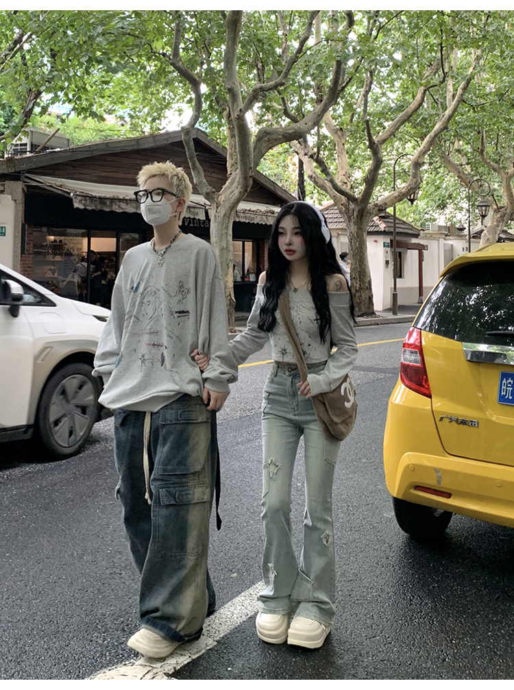 搭配宽松的休闲牛仔裤直接慵懒休闲氛围感满分~