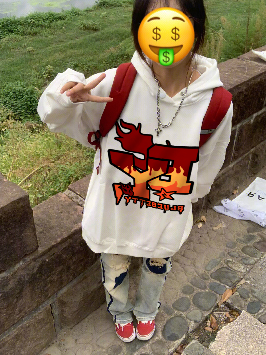 美式復古hiphop潮牌火焰刺繡衛衣女寬鬆bf慵懶風春秋ins薄款外套
