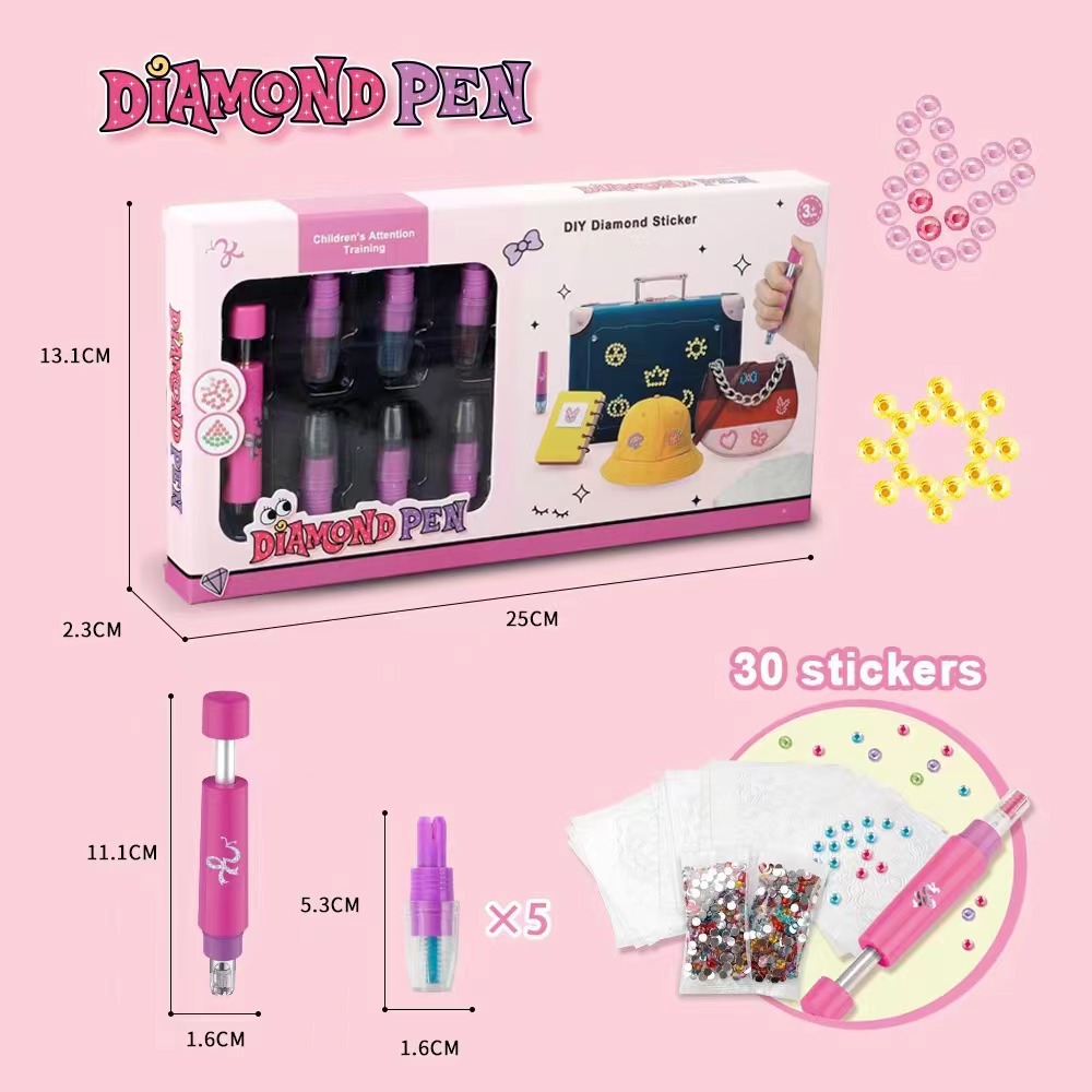 跨境热供儿童卡通贴钻笔玩具 亲子互动女孩过家家贴钻笔玩具