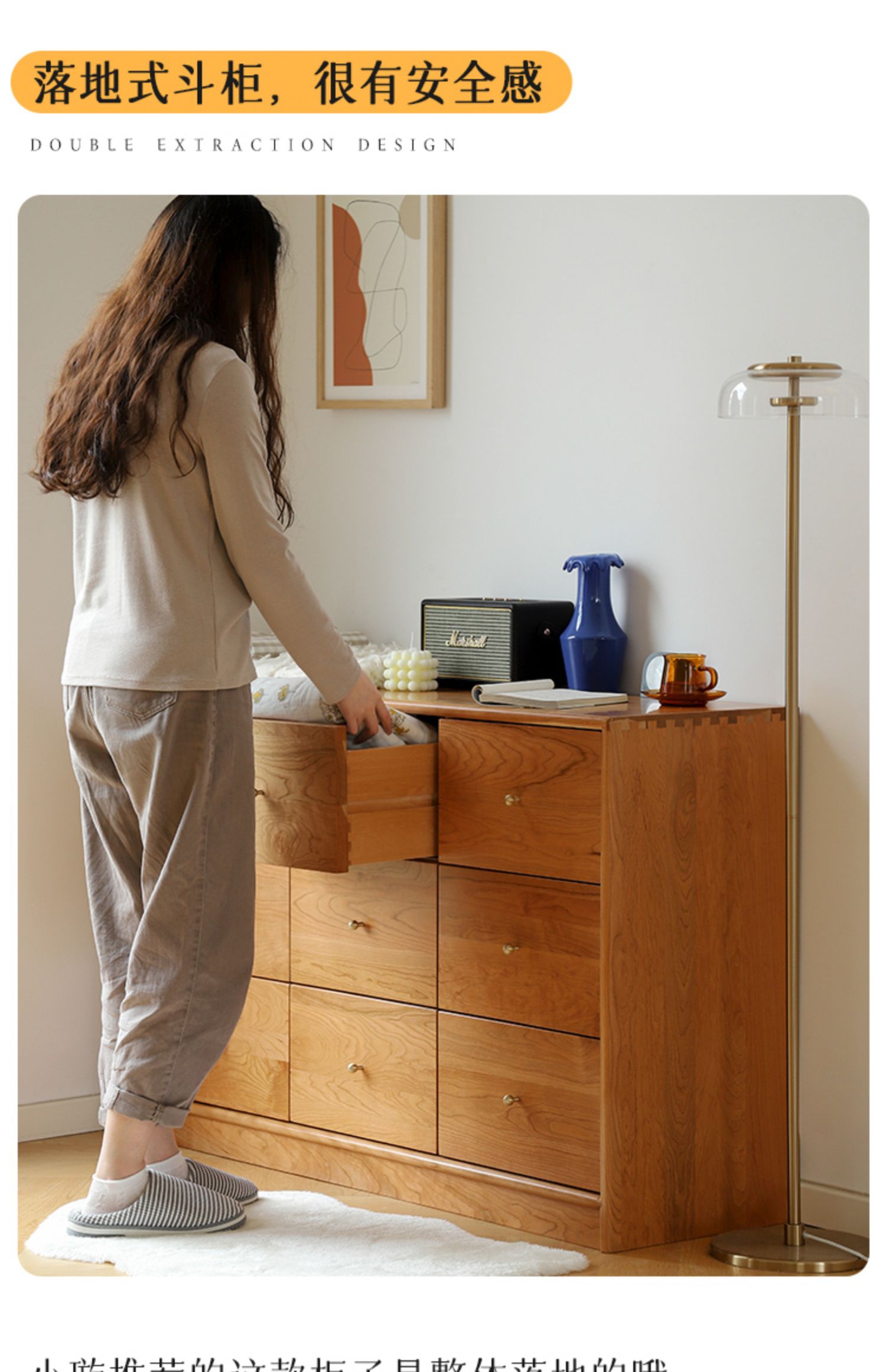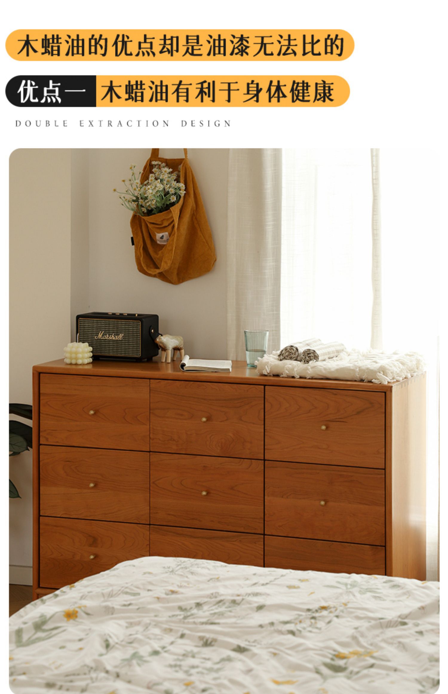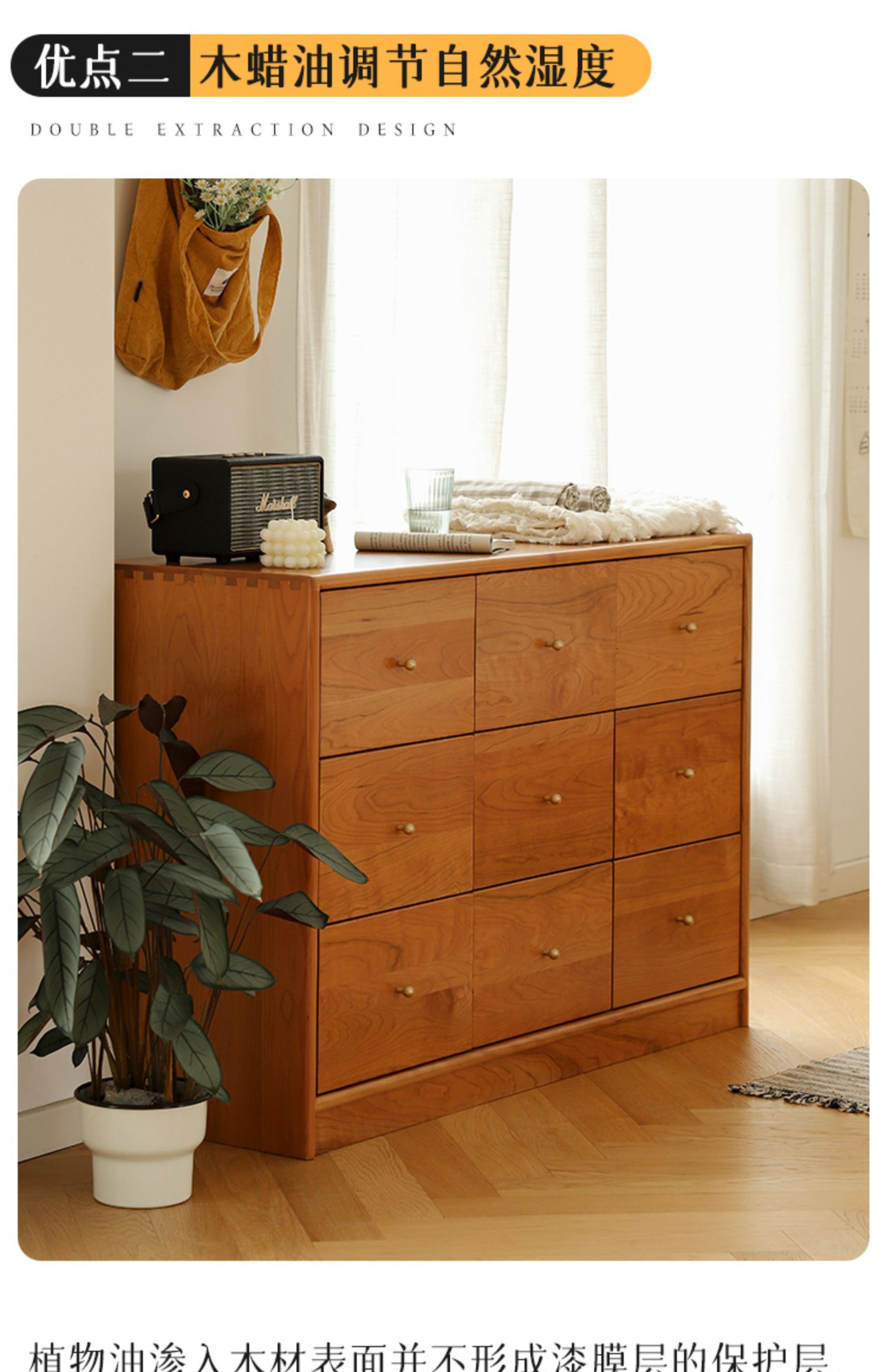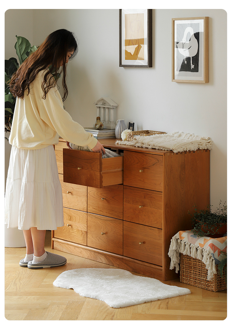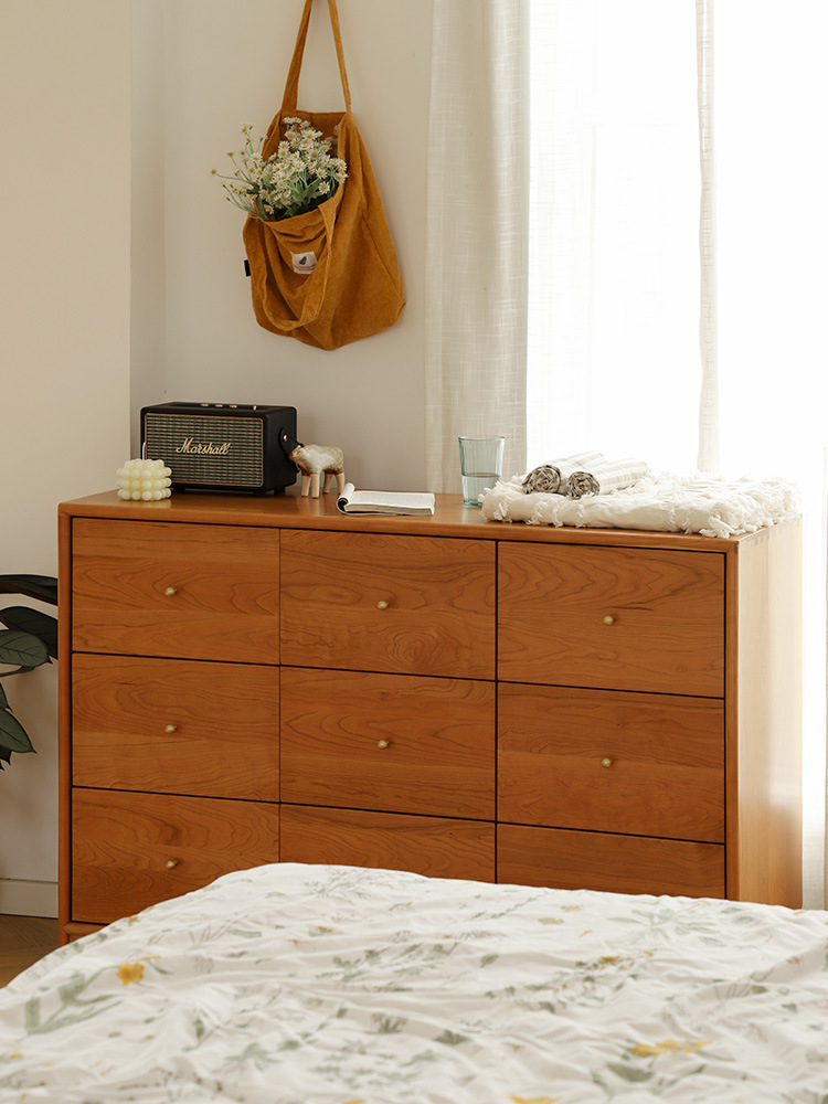 OD59批发|樱桃木九斗柜实木抽屉柜多功能卧室衣物收纳柜复古风玄