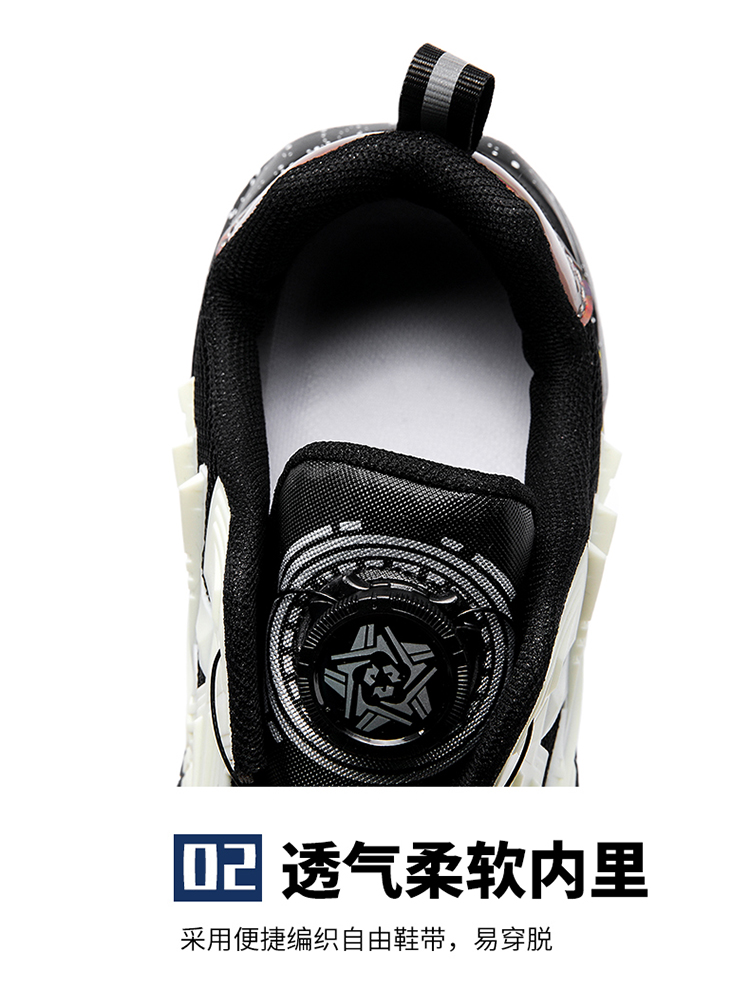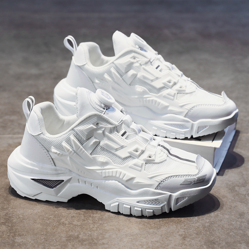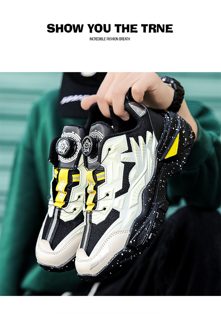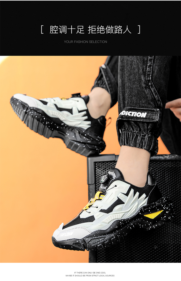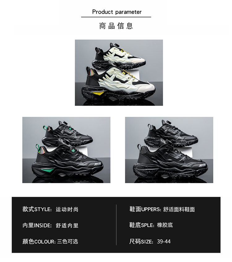 黑色男鞋秋季透氣網面休閒運動鞋旋轉鈕釦機甲免繫帶增高老爹潮鞋