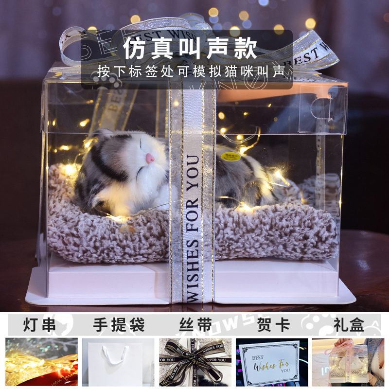 仿真猫咪会叫毛绒小女孩生日礼物女童宠物玩偶礼物伴手礼盒