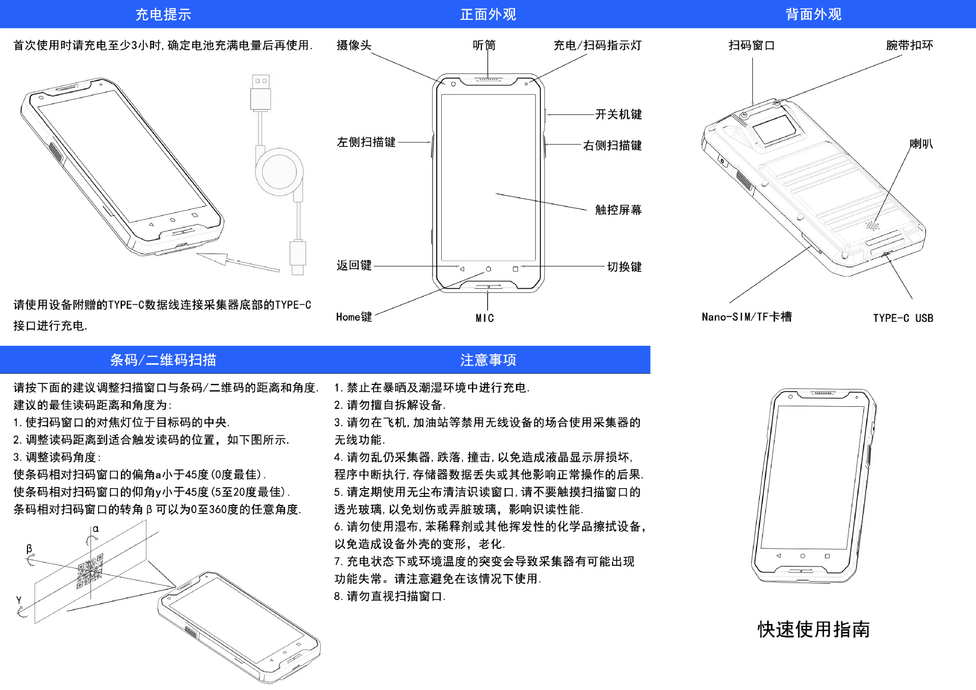 4G数据采集器手持终端PDA二维条码扫描器NFC选配坚固型IP65防水
