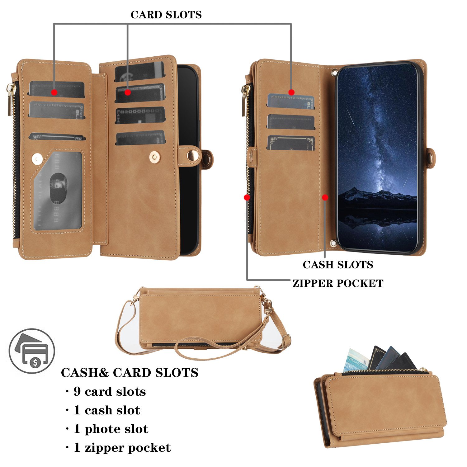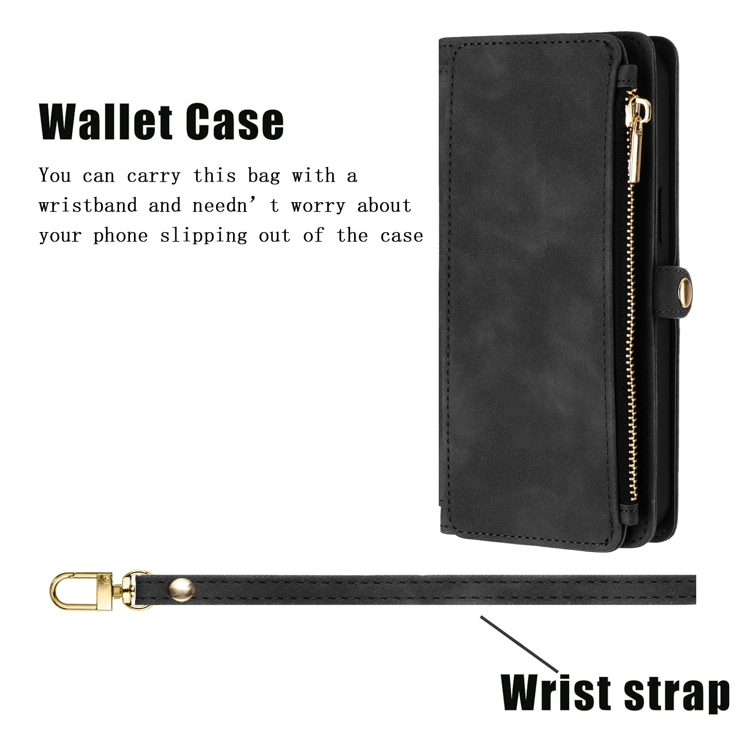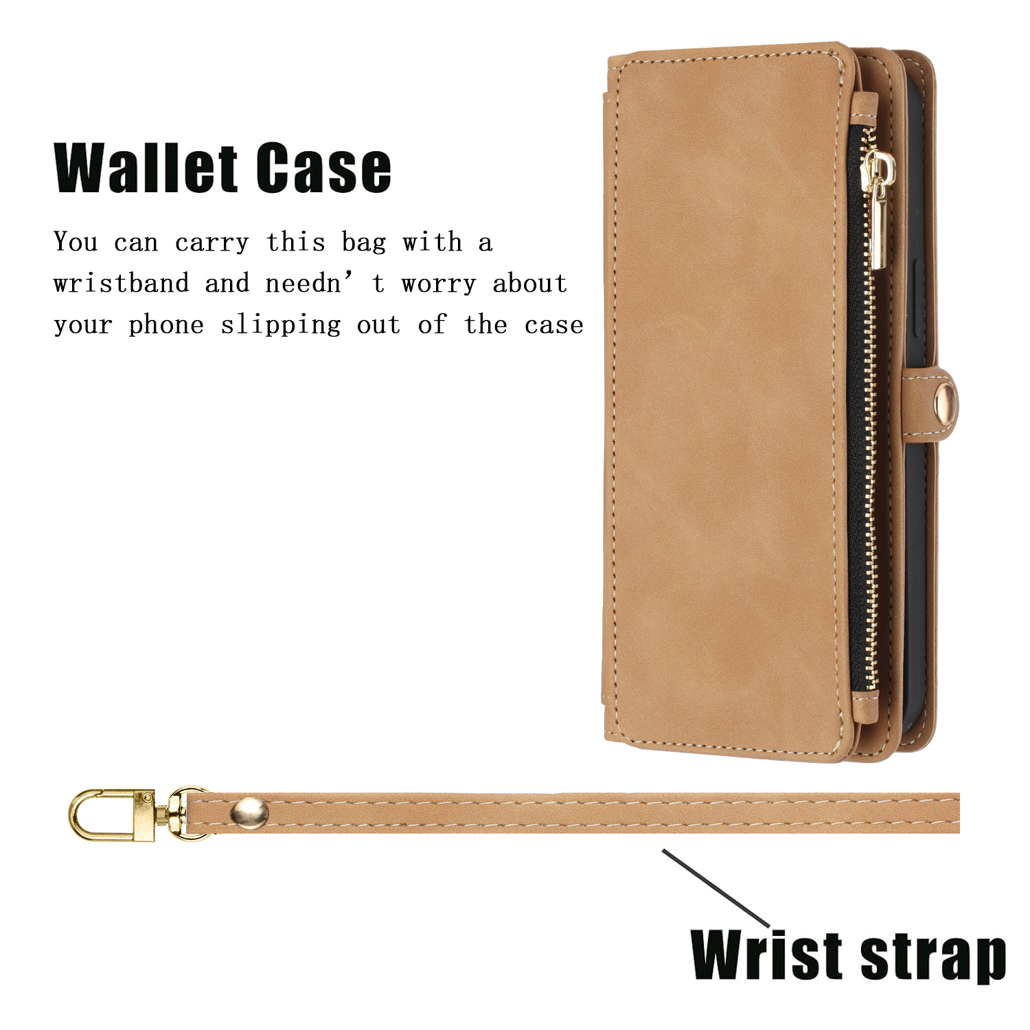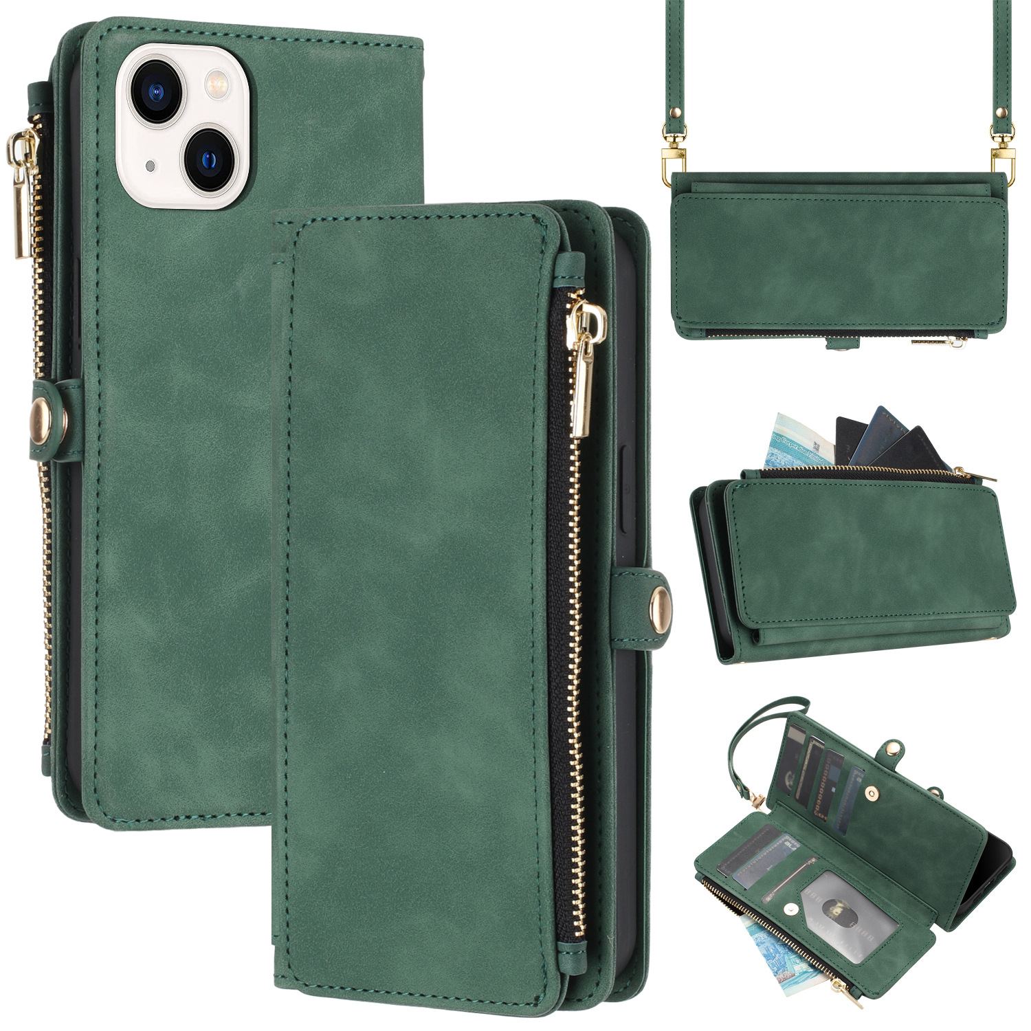适用iPhone15Pro钱包手机壳批发苹果14Pro斜跨拉链包皮套case跨境