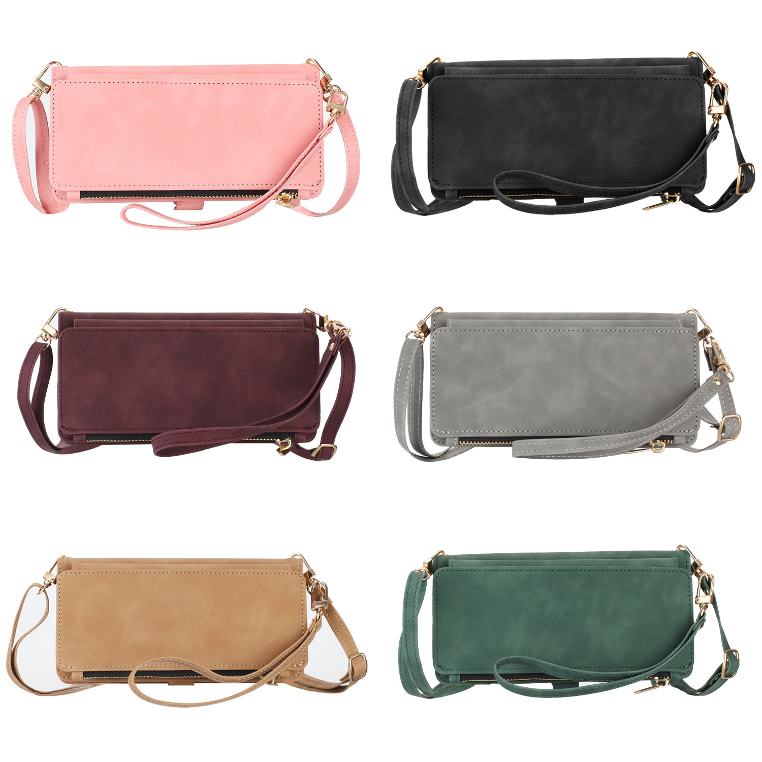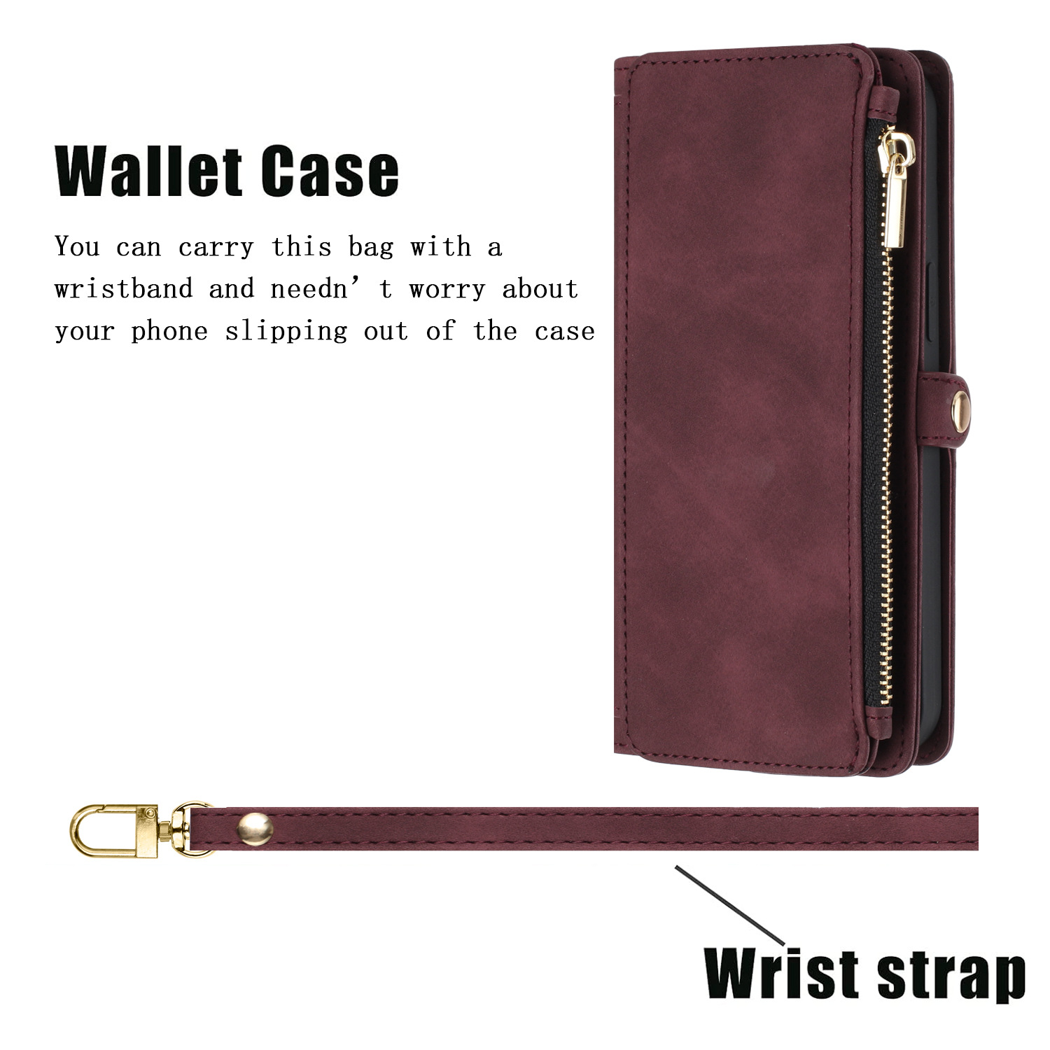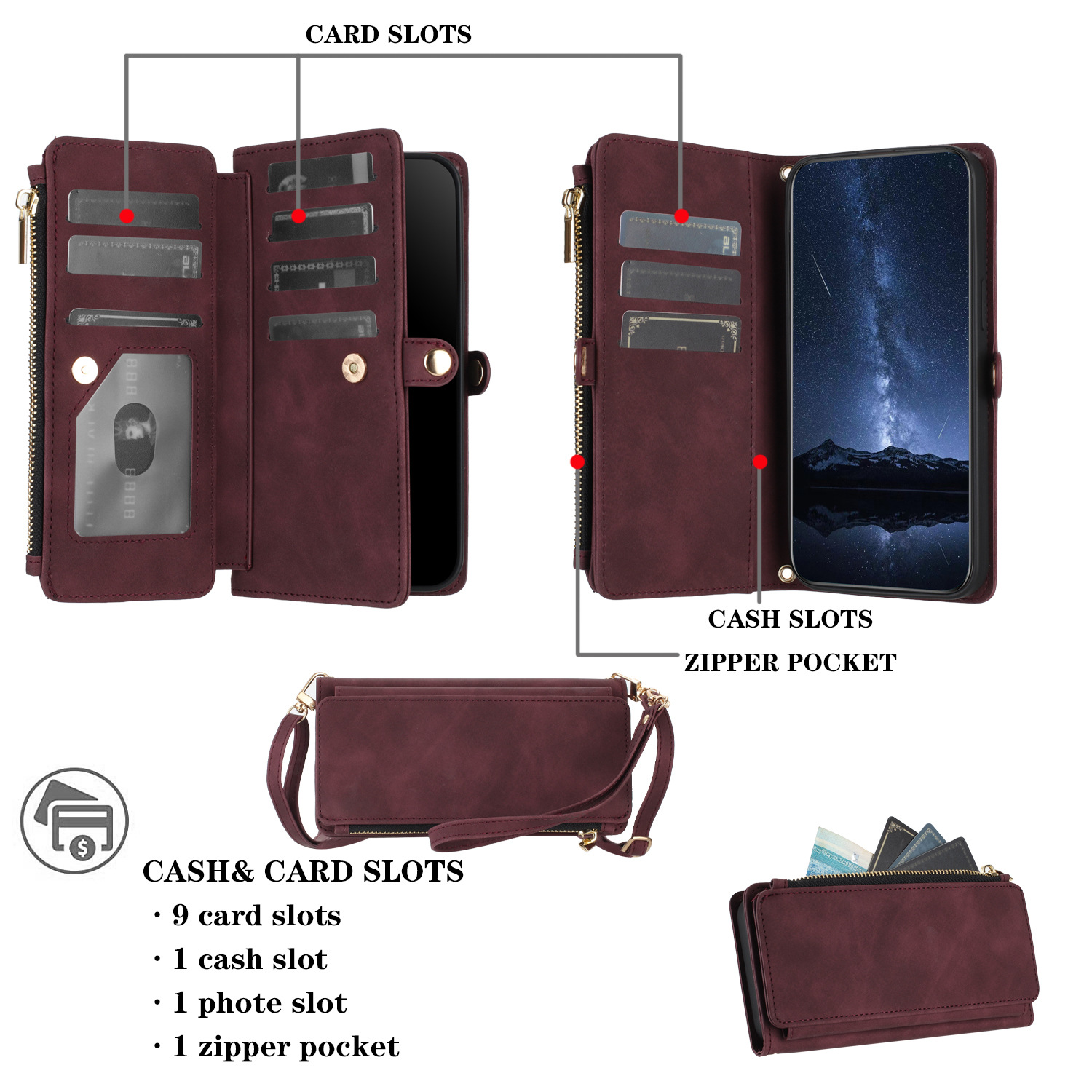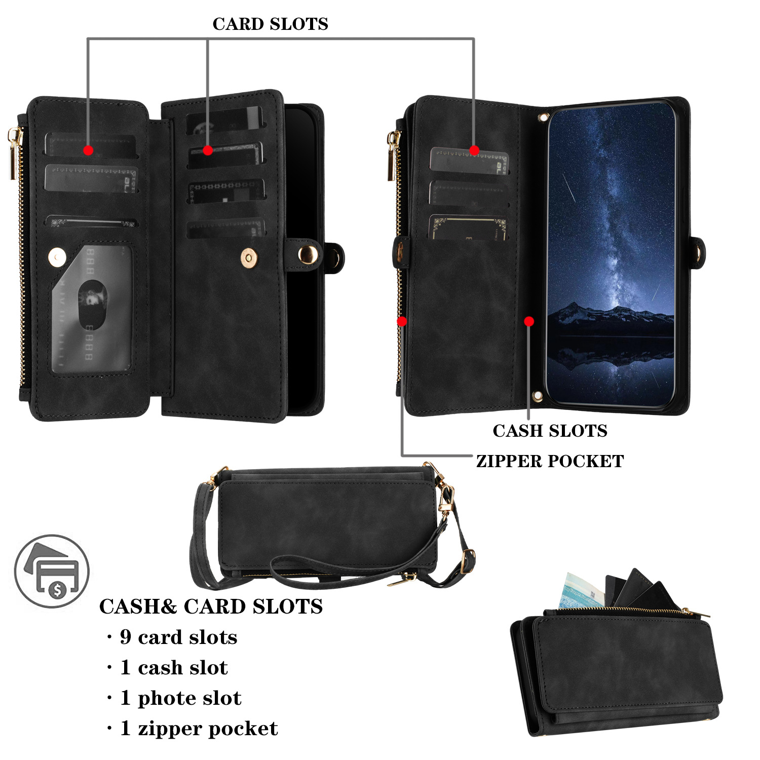 适用iPhone15Pro钱包手机壳批发苹果14Pro斜跨拉链包皮套case跨境