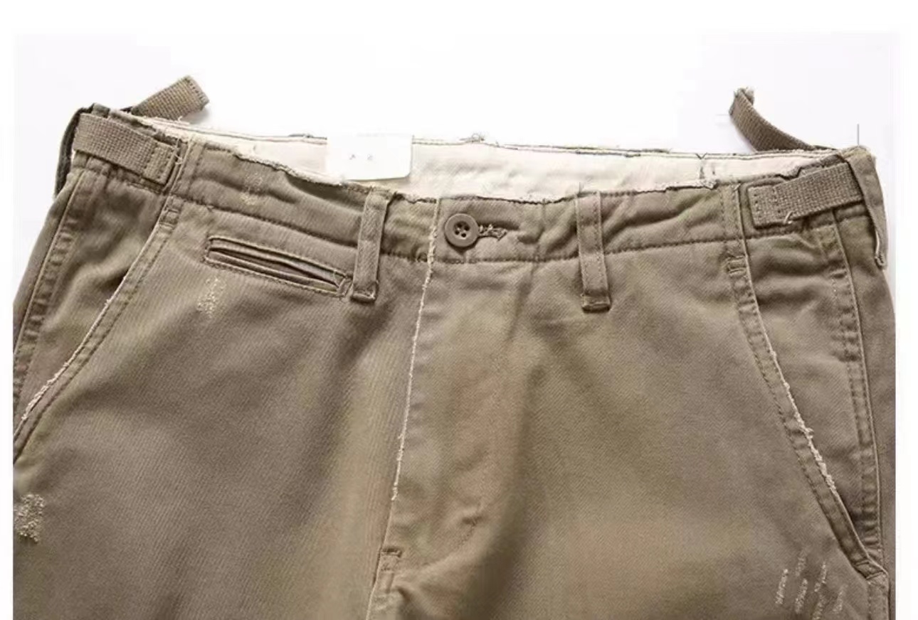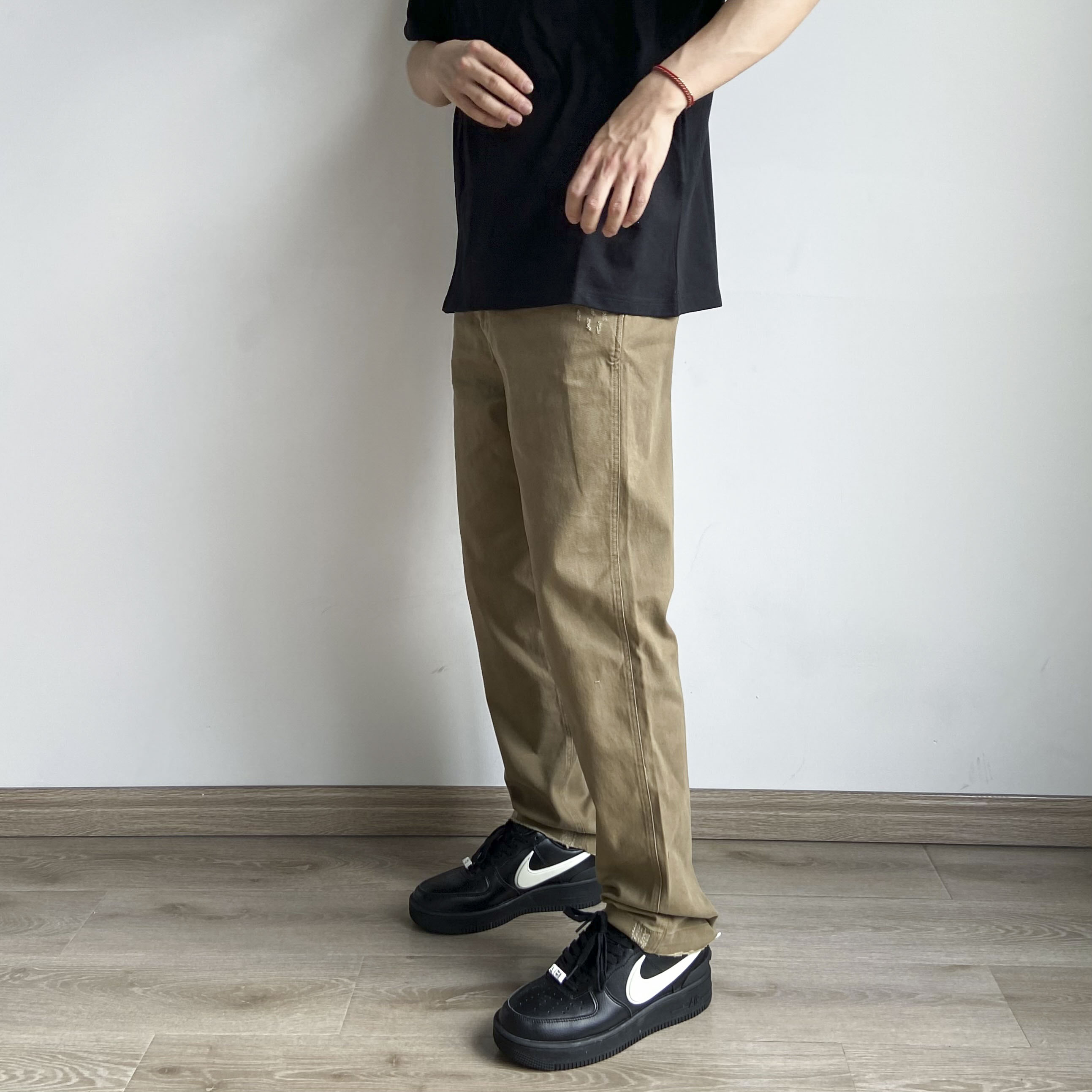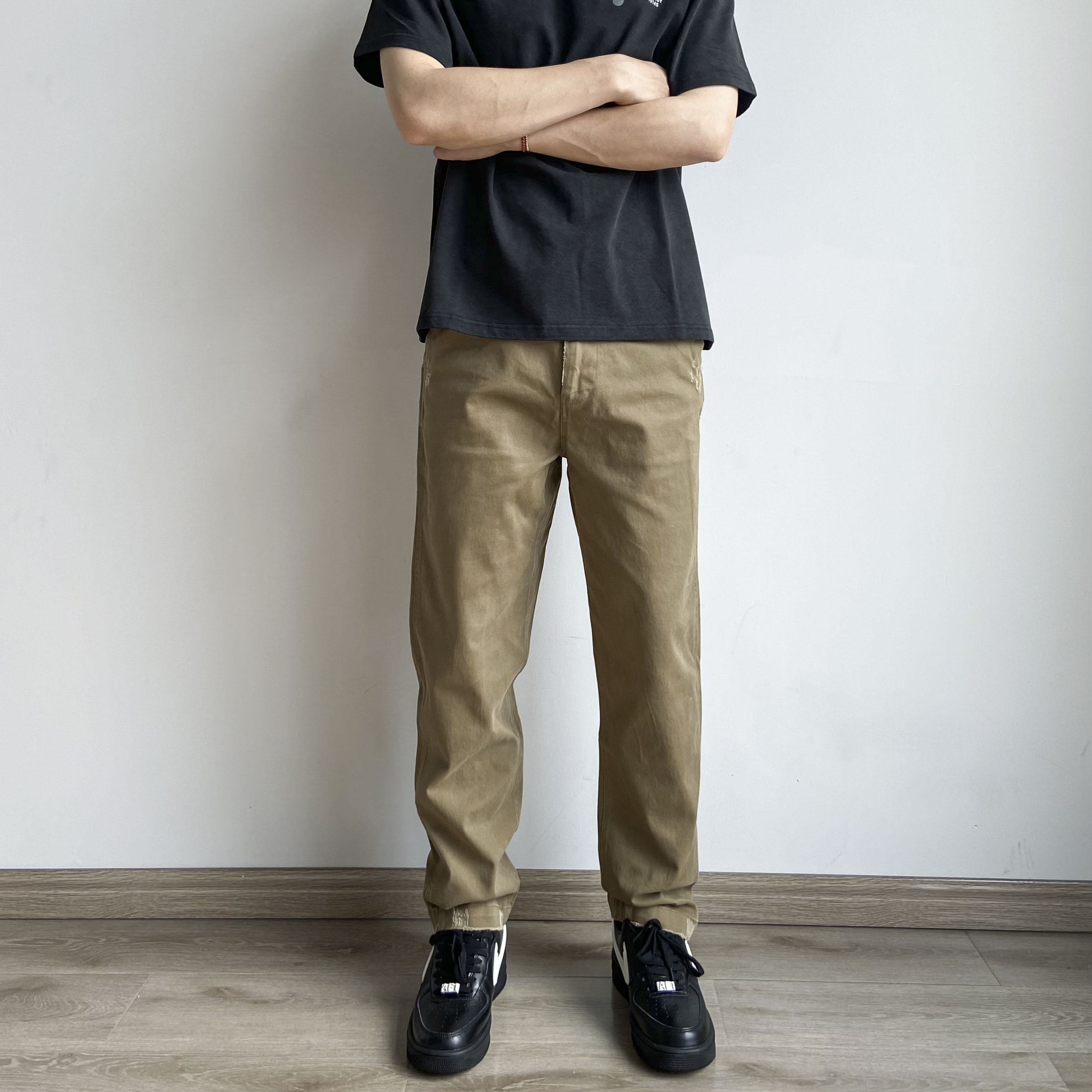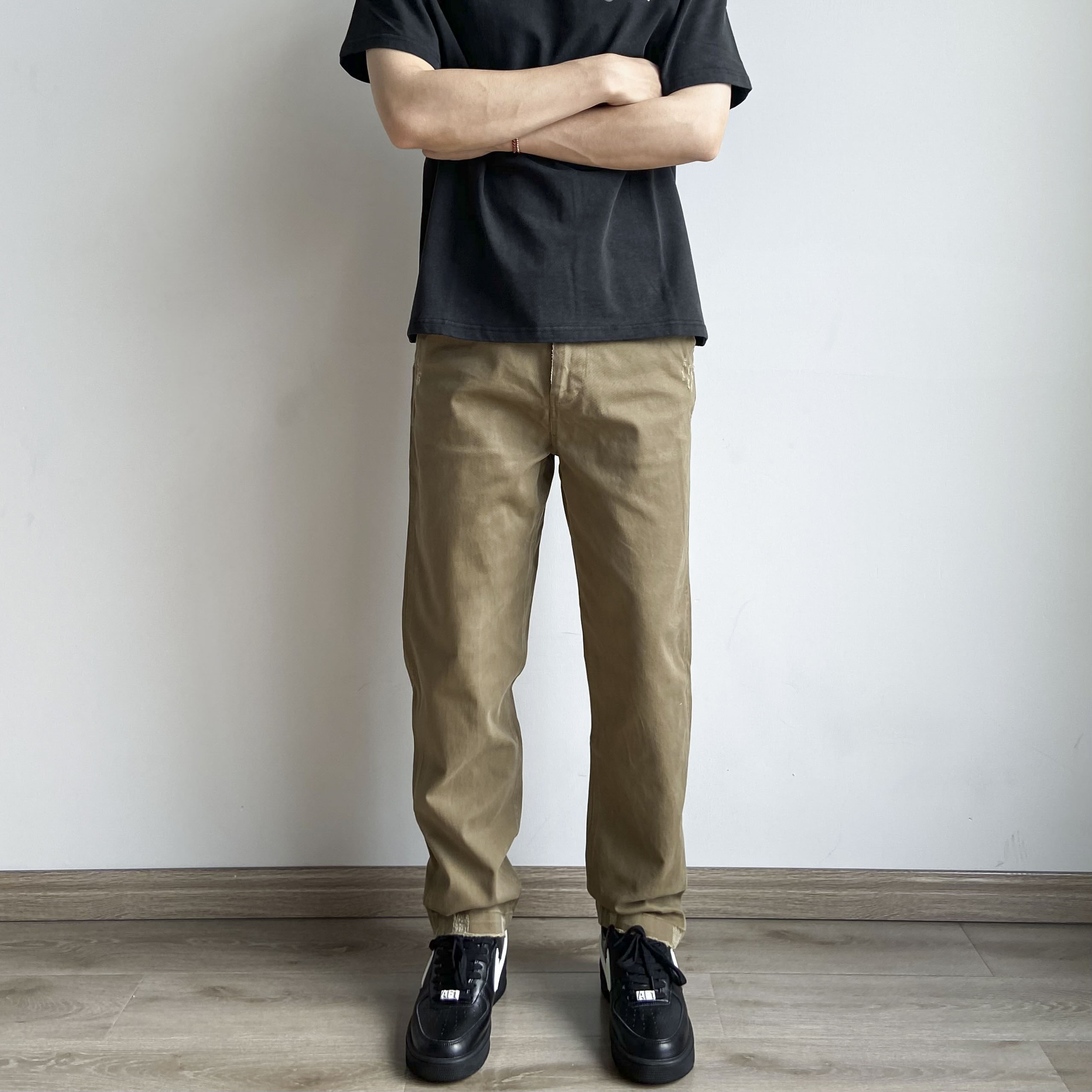 春夏薄款美式休閒卡其軍綠水洗男士直筒寬鬆做舊破壞碳素情侶長褲