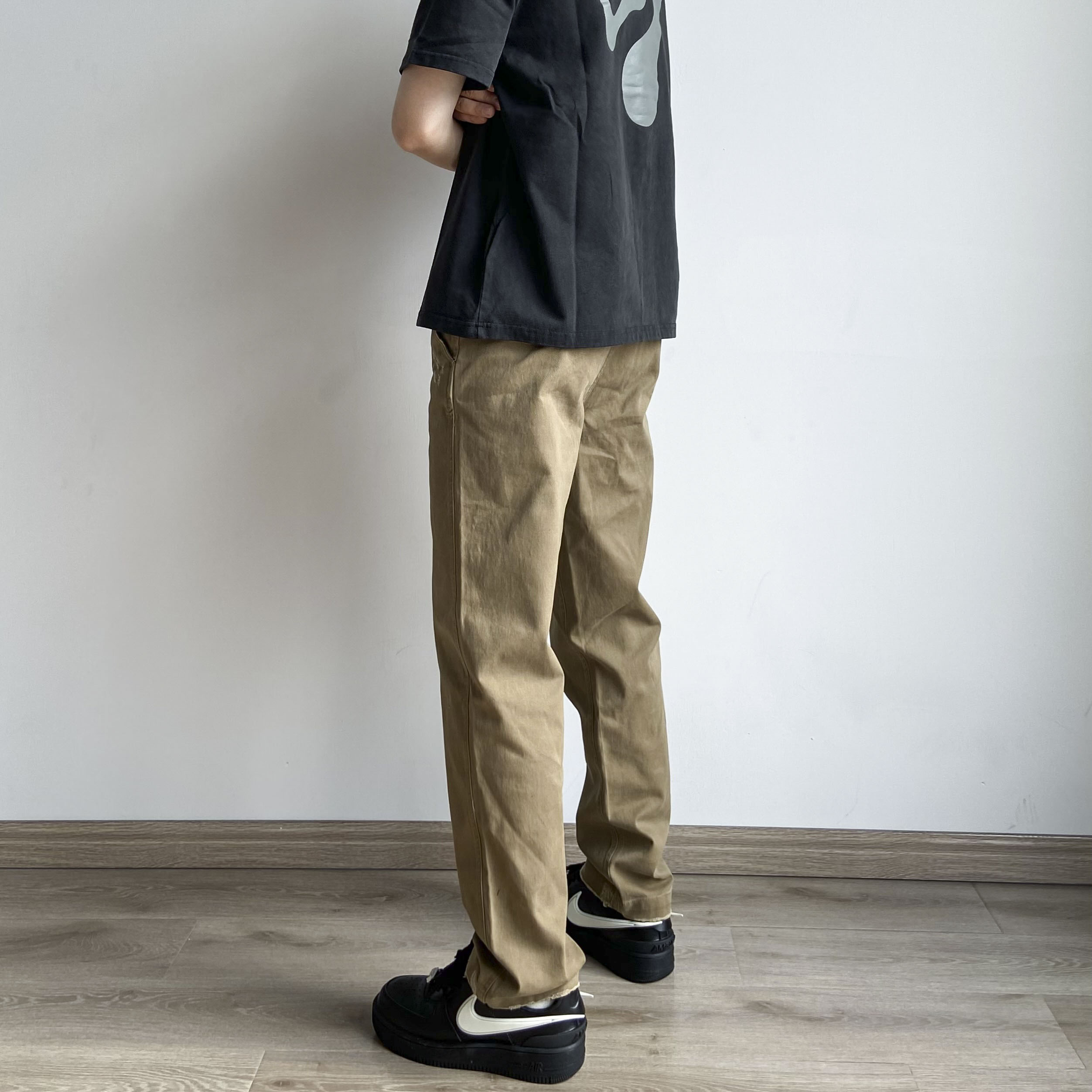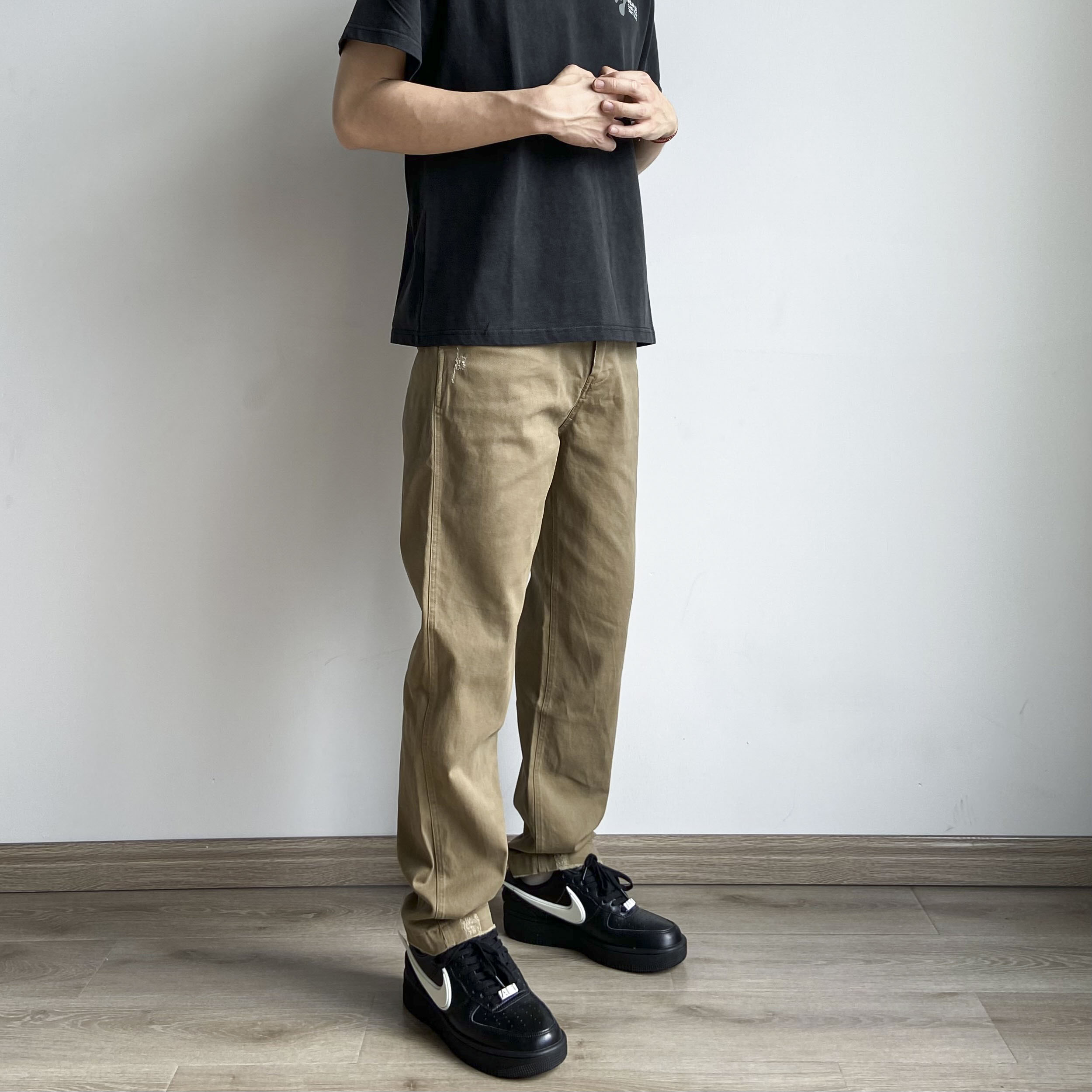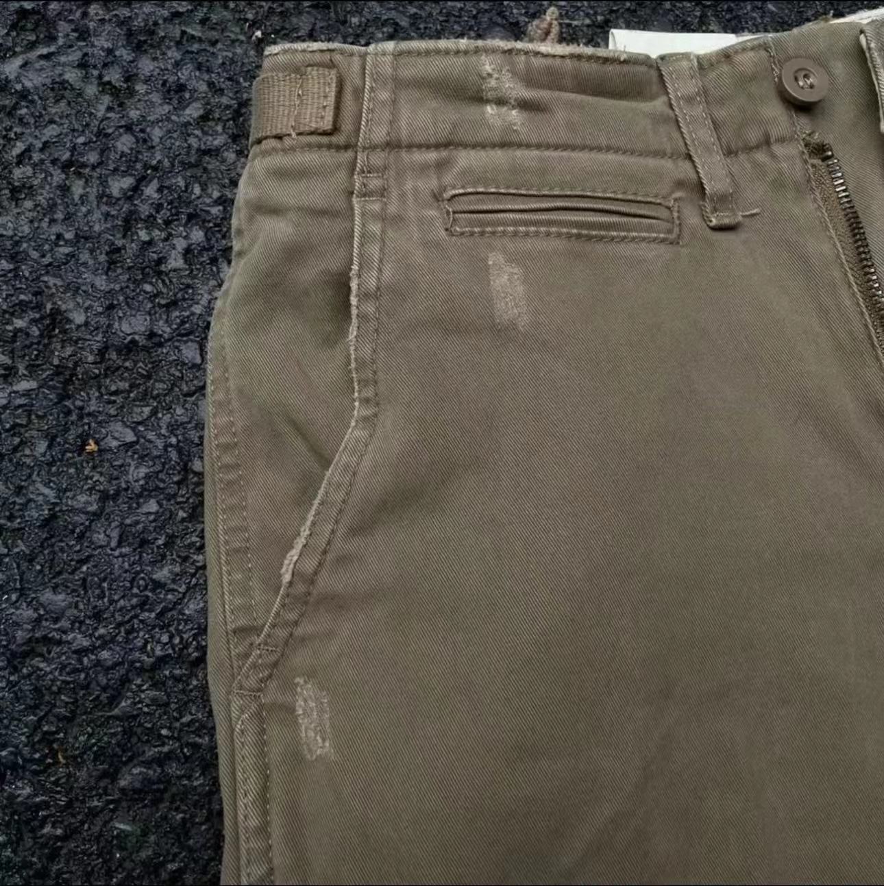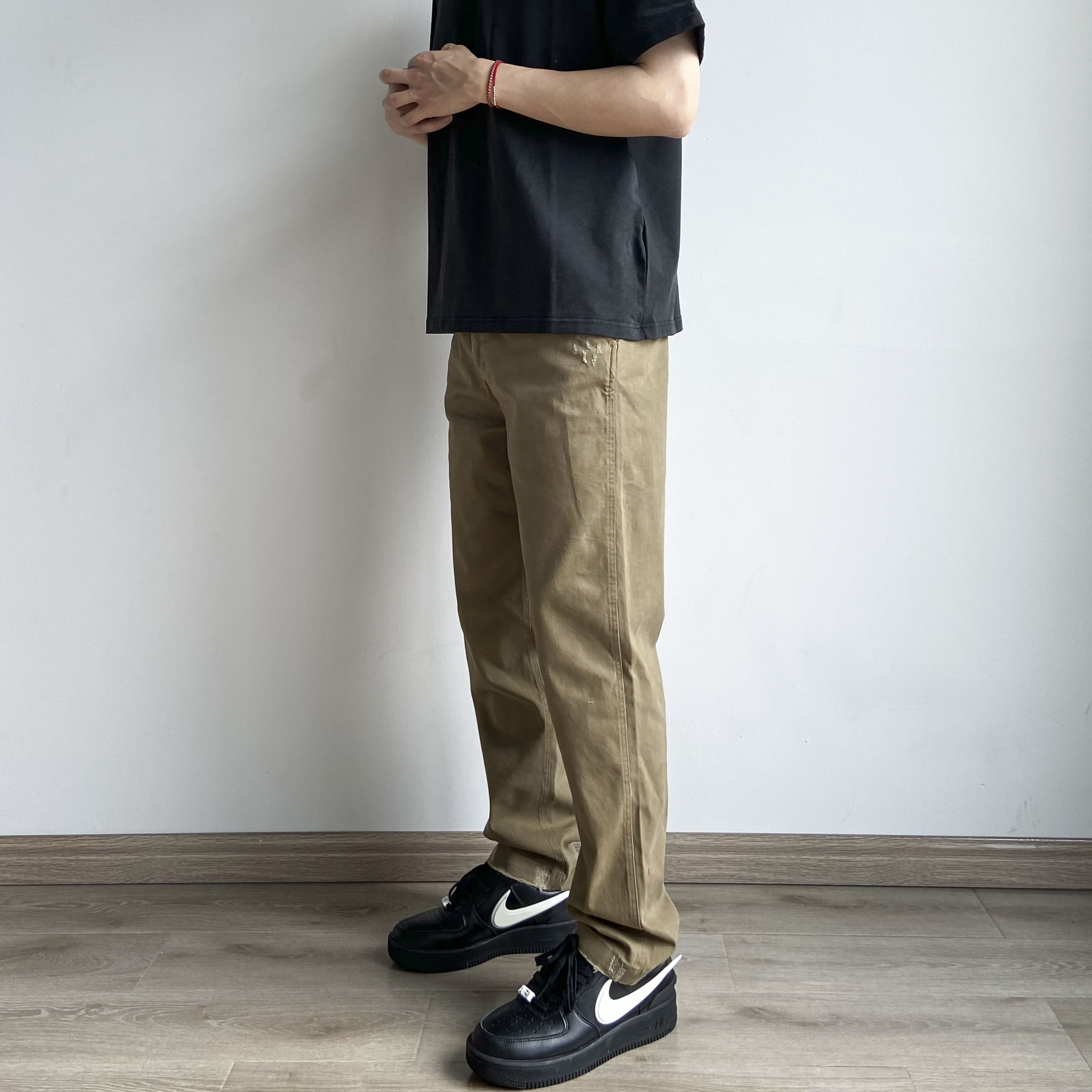 春夏薄款美式休閒卡其軍綠水洗男士直筒寬鬆做舊破壞碳素情侶長褲