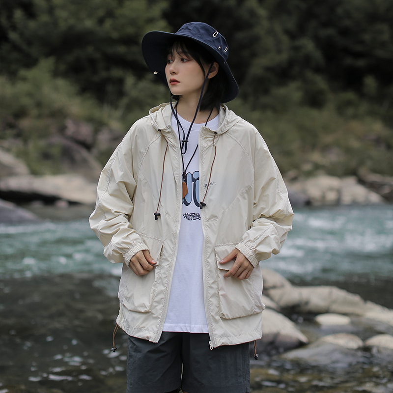 漫渡美式衝鋒衣外套女夏日系cityboy工裝夾克潮牌多口袋防曬衣女
