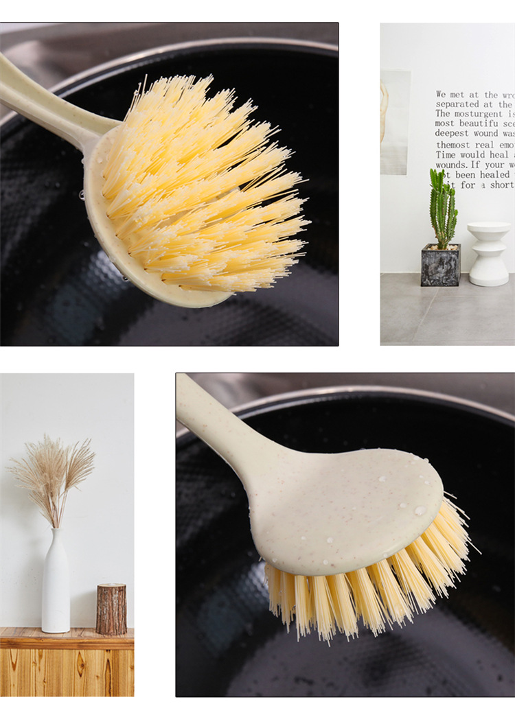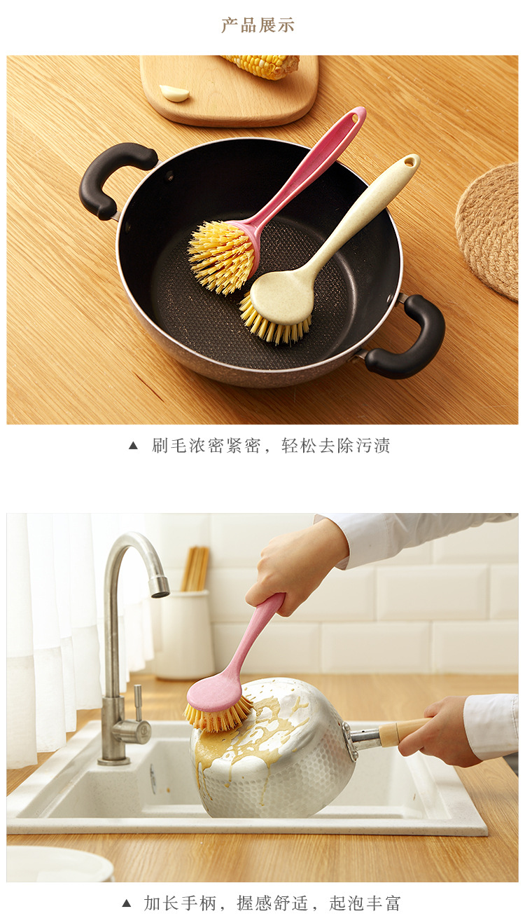 厨房清洁洗碗刷锅刷可挂式长柄灶台清洁刷 小麦秸秆洗碗洗锅刷
