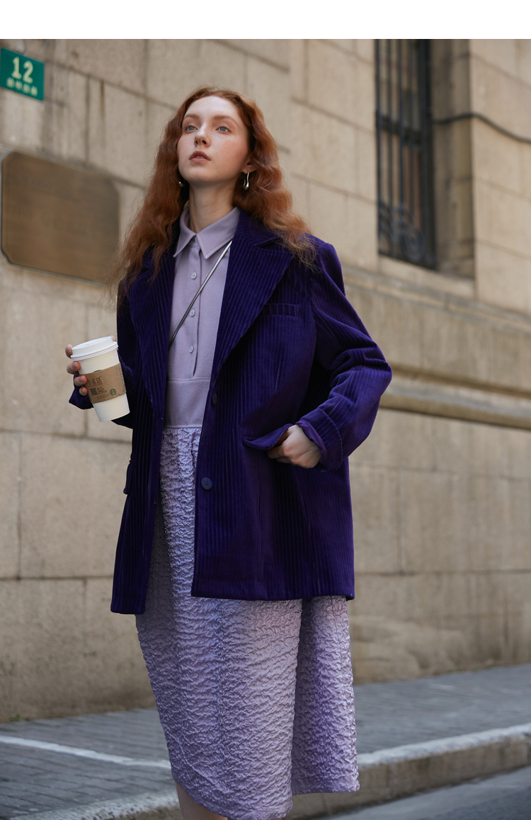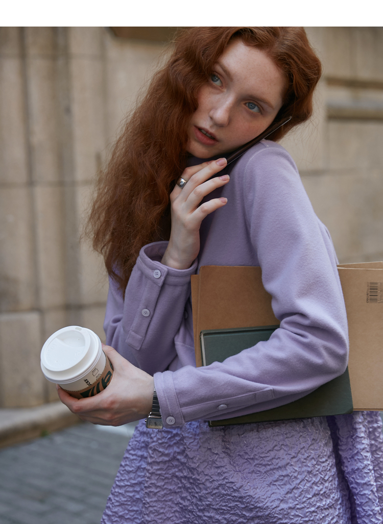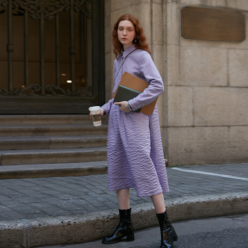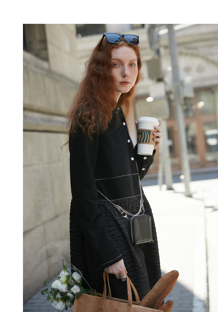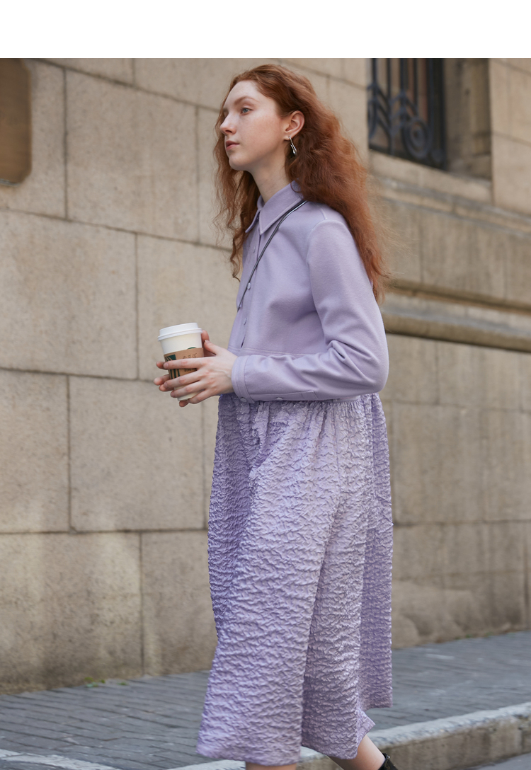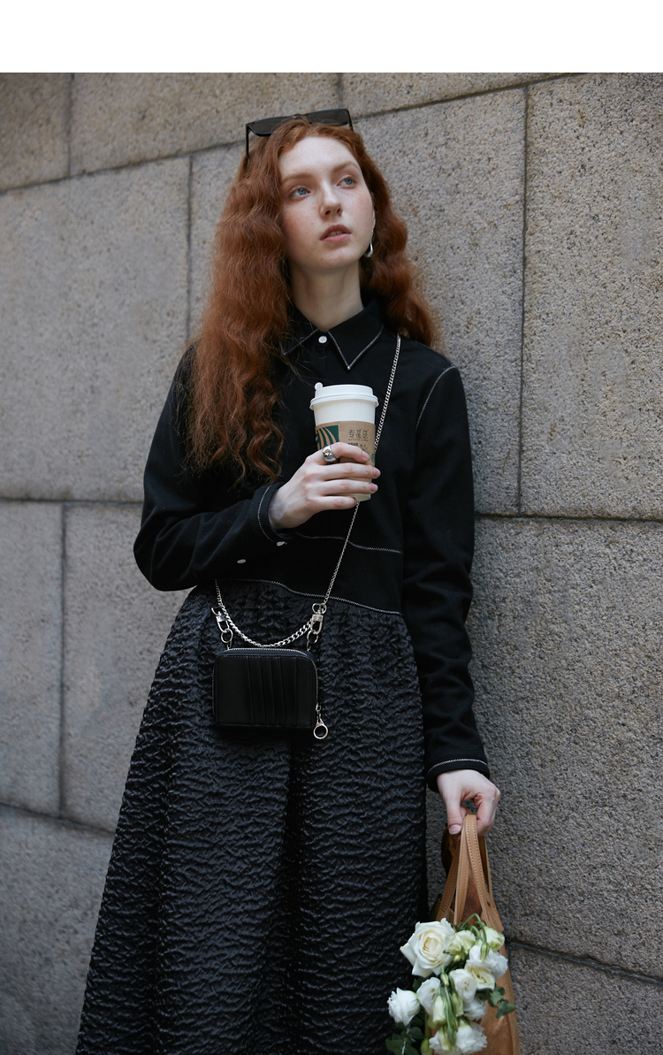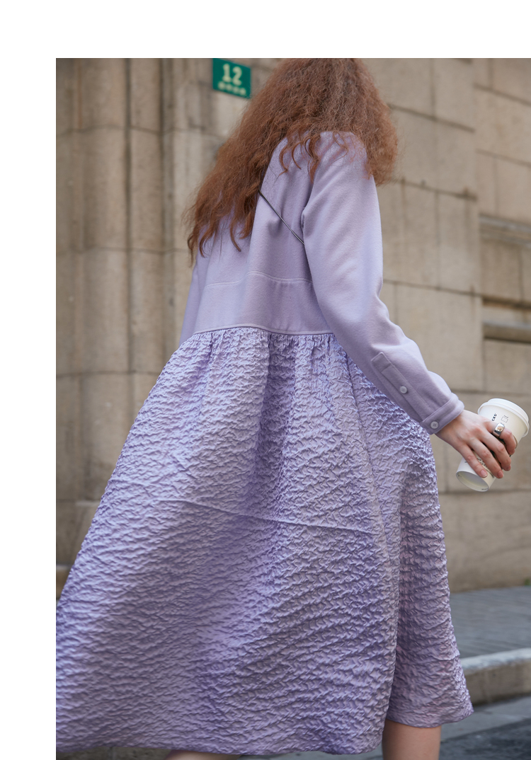 半圓原創設計師女裝2023春秋季新款羊毛呢拼接中長寬鬆襯衫式洋裝
