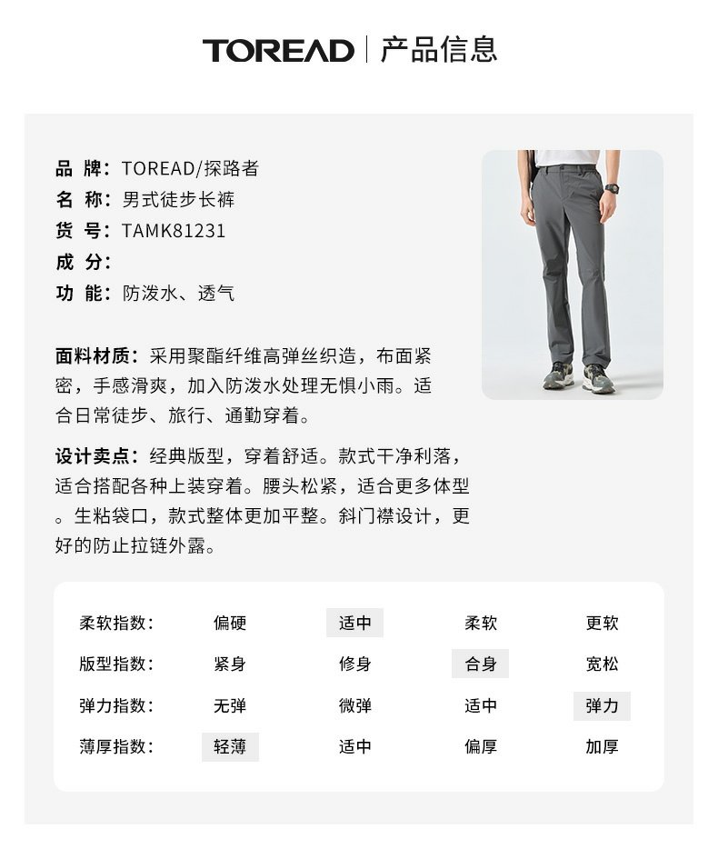 探路者速乾長褲男23春夏戶外徒步彈力透氣休閒衝鋒褲TAMMCL81832