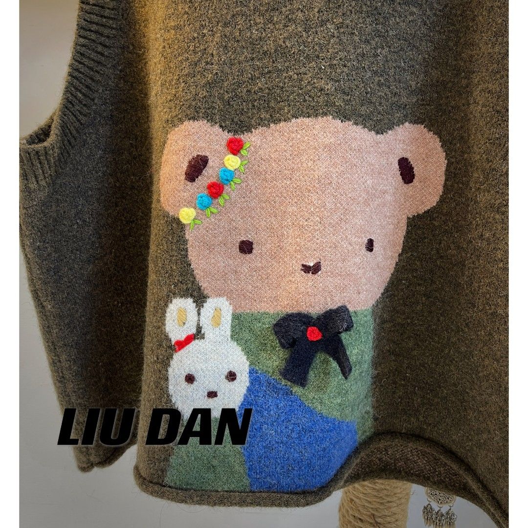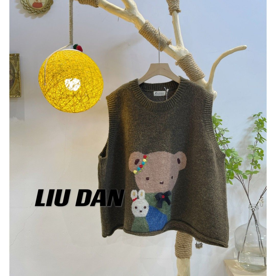 2023年韓版萌萌熊襯衫搭配馬甲時尚洋派百搭休閒遮肉減齡背心春款