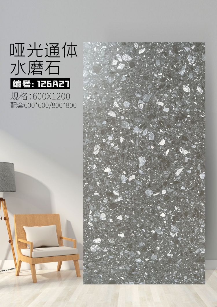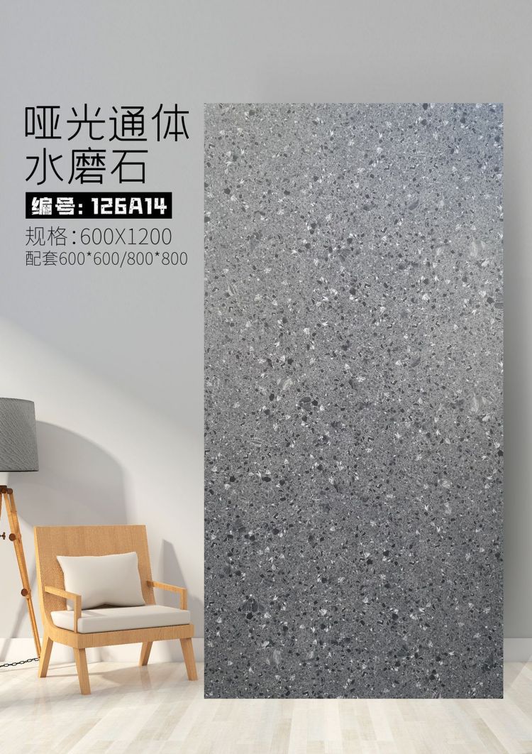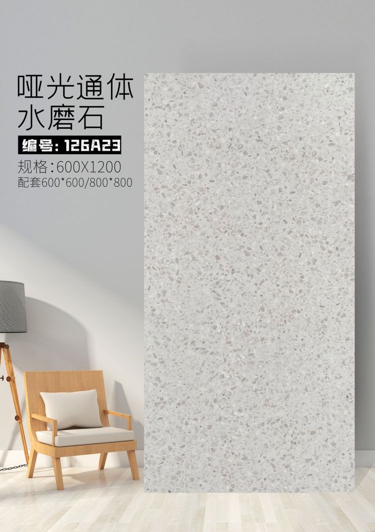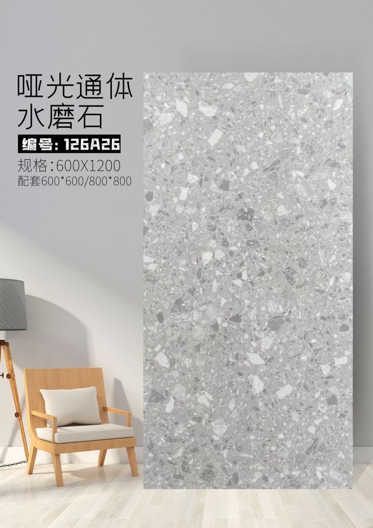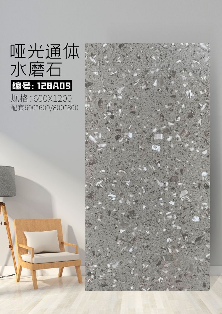 9URT批发通体哑光水磨石瓷砖600x1200餐厅服装连锁店写字楼办公室