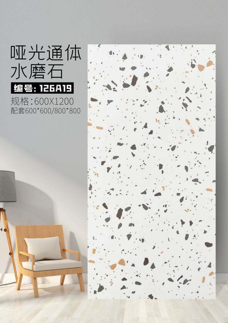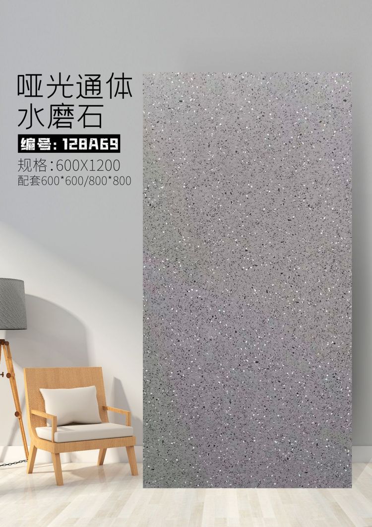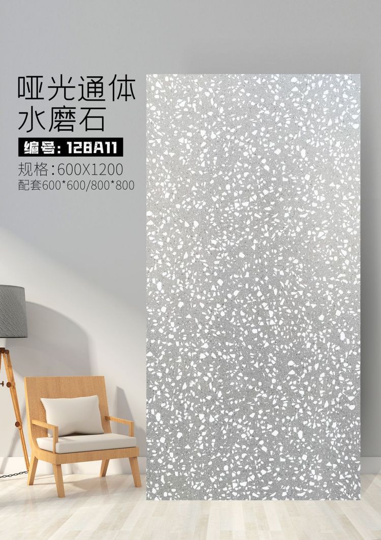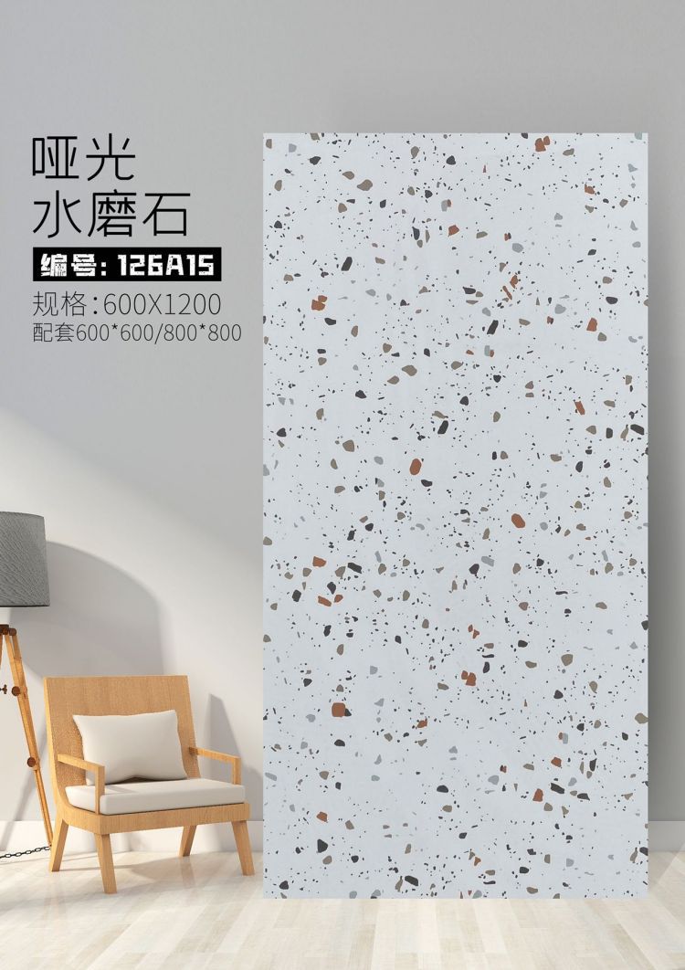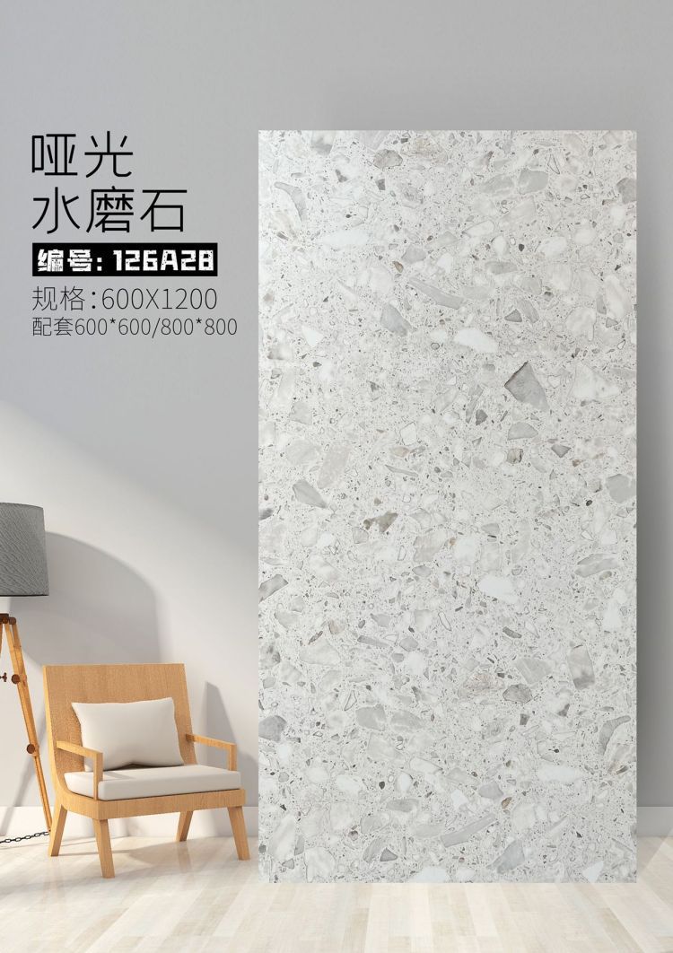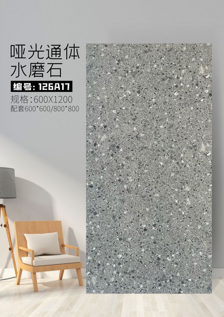 9URT批发通体哑光水磨石瓷砖600x1200餐厅服装连锁店写字楼办公室