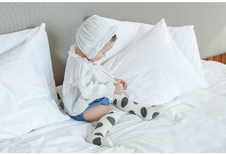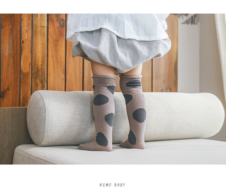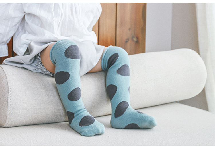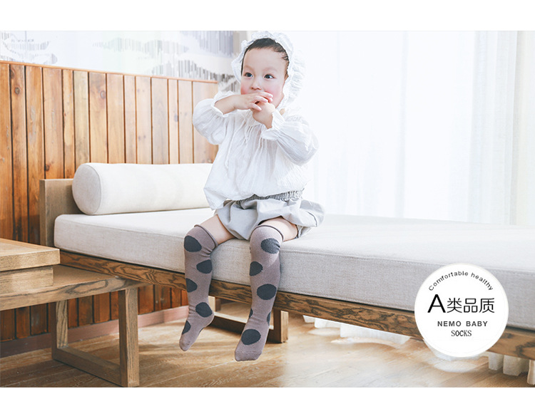 新款宝宝长筒袜大波点过膝松口不勒脚婴儿袜精梳棉春夏儿童堆堆袜