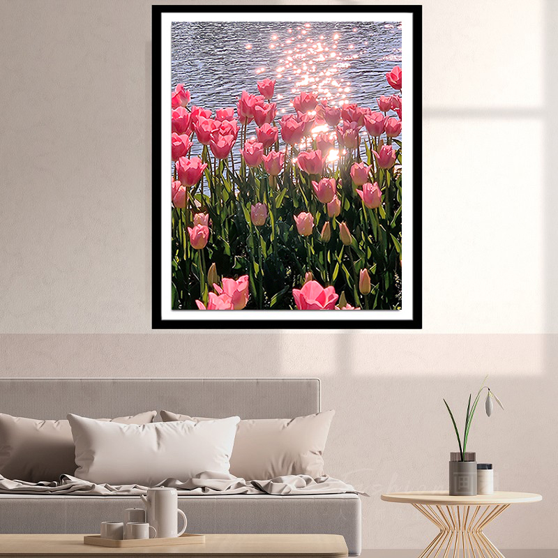 鬱金香花卉十字繡2023新款線繡客廳臥室簡約現代小幅玄關手工刺繡