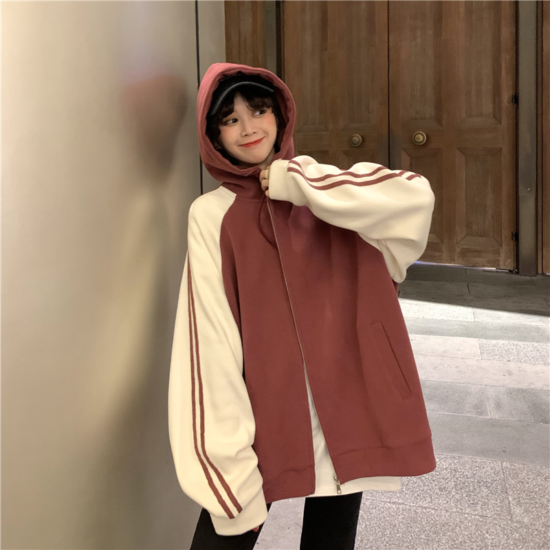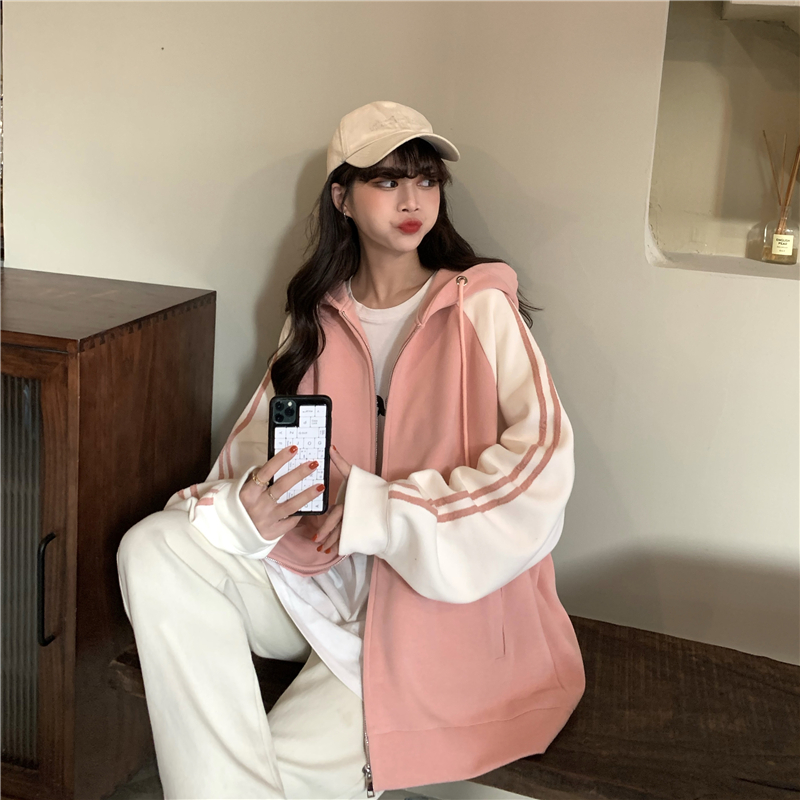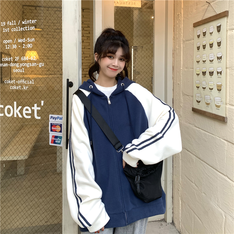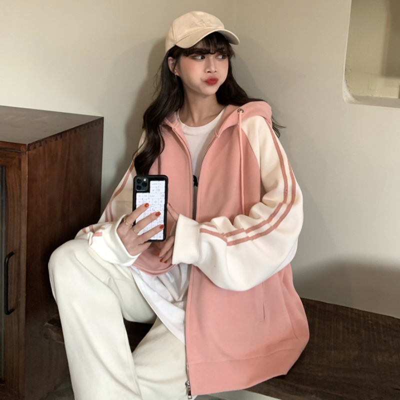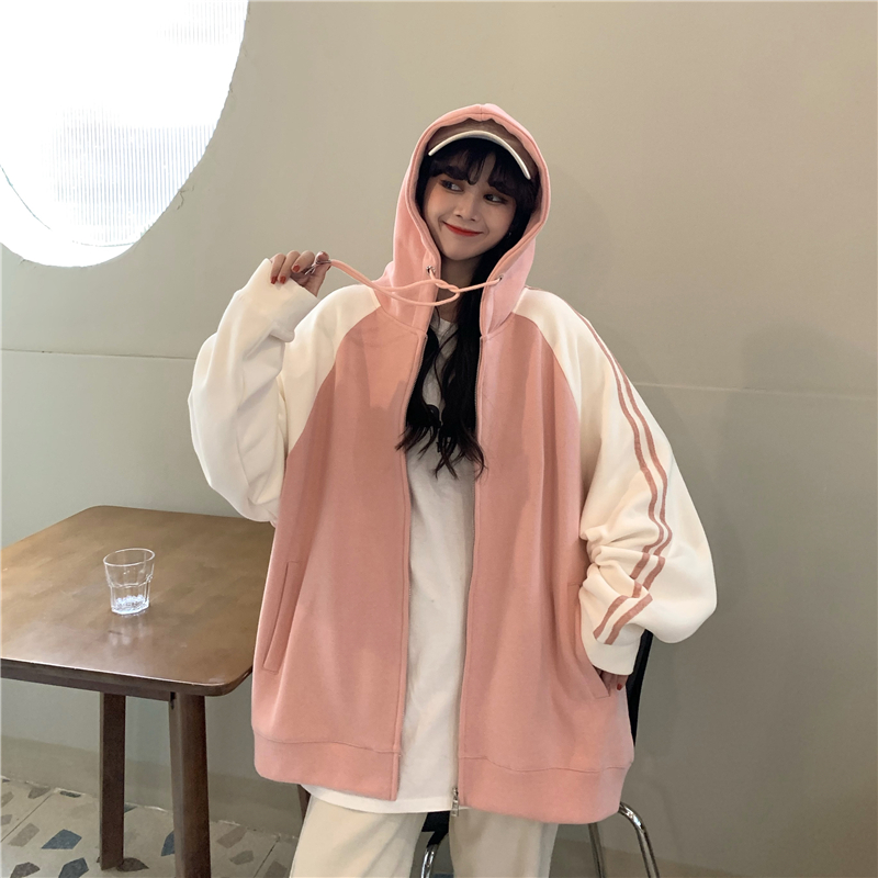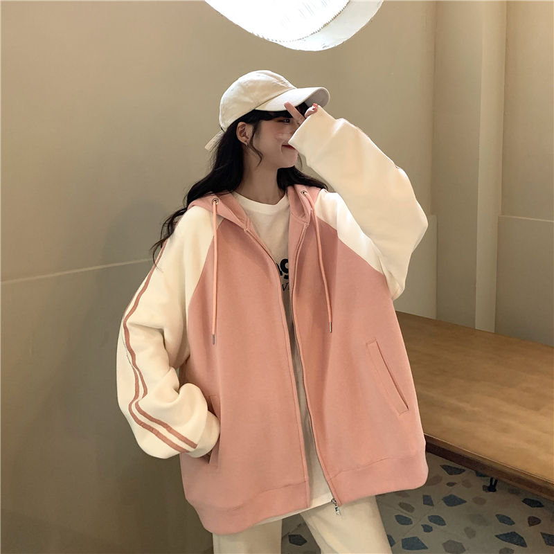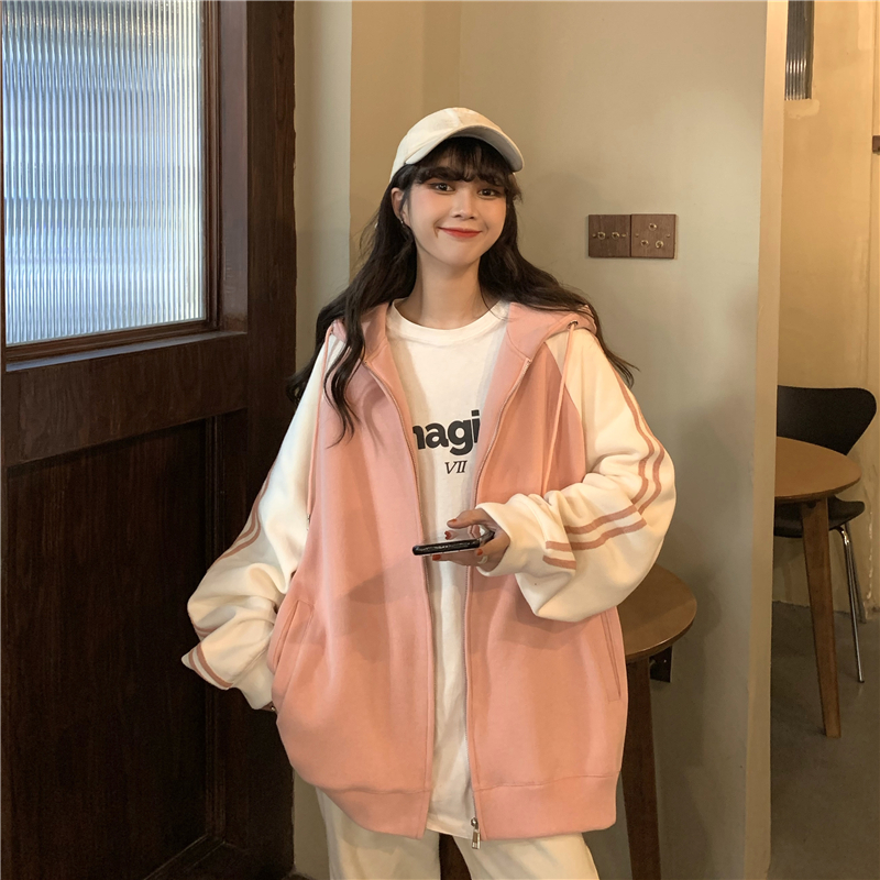 大尺碼胖MM春秋韓系鹽甜oversize衛衣外套女寬鬆學院風百搭連帽開衫