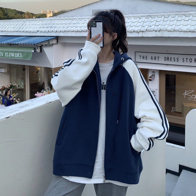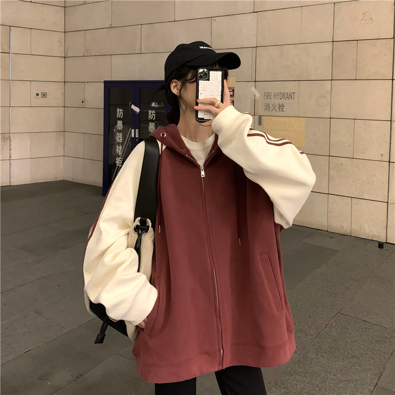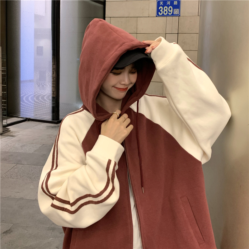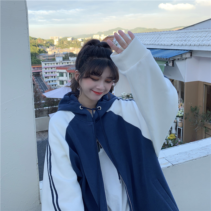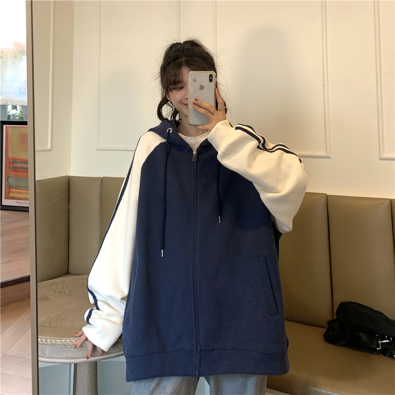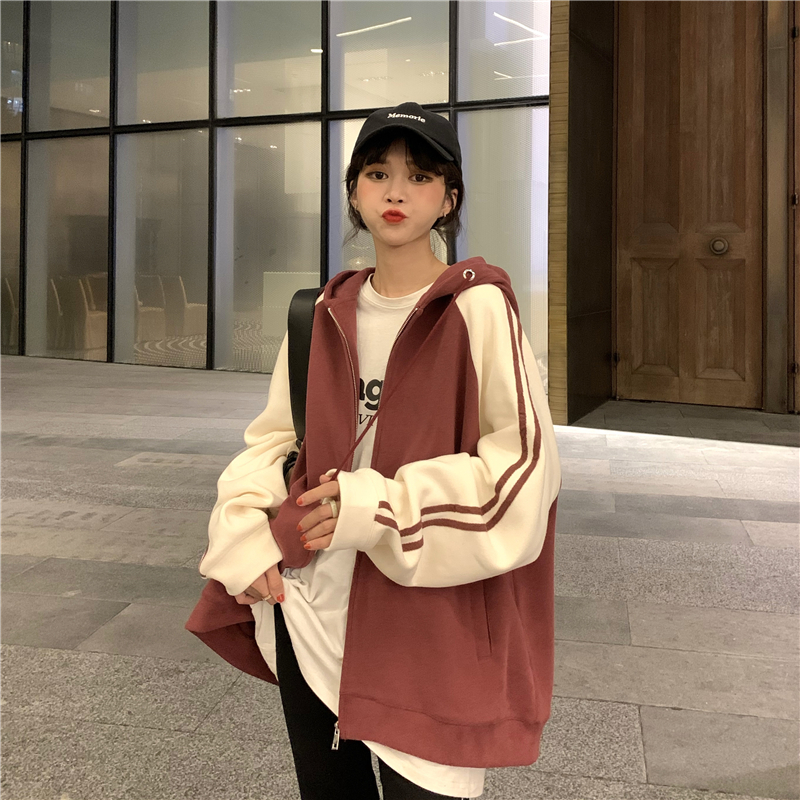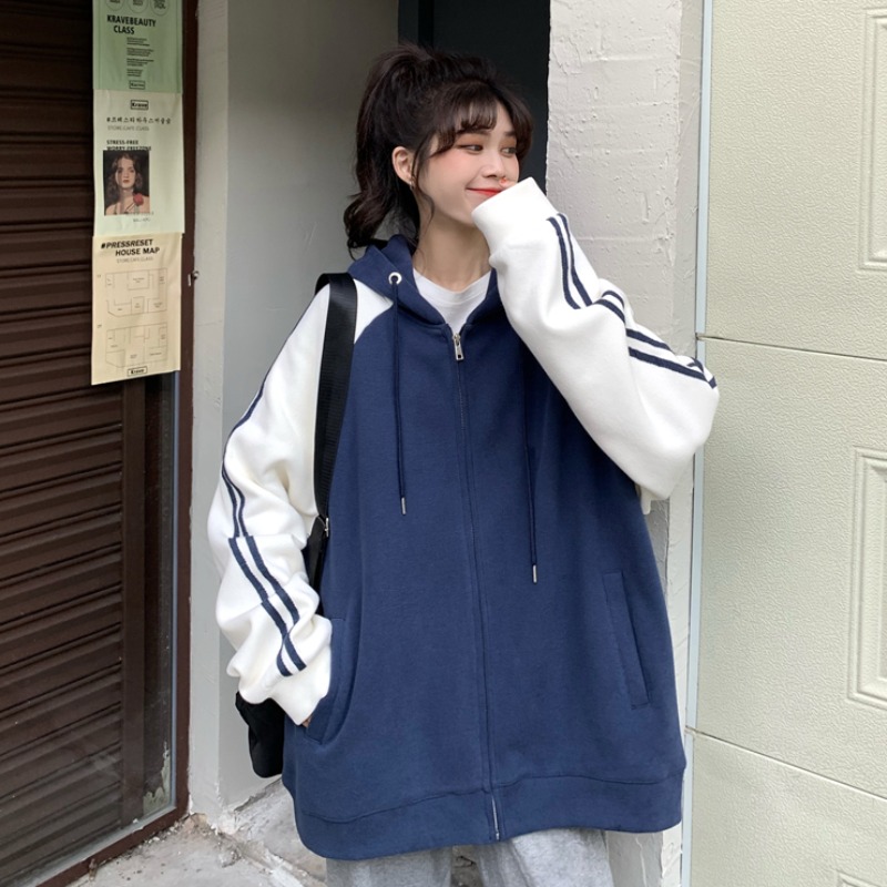 大尺碼胖MM春秋韓系鹽甜oversize衛衣外套女寬鬆學院風百搭連帽開衫