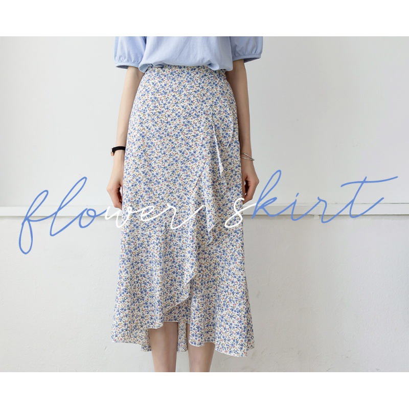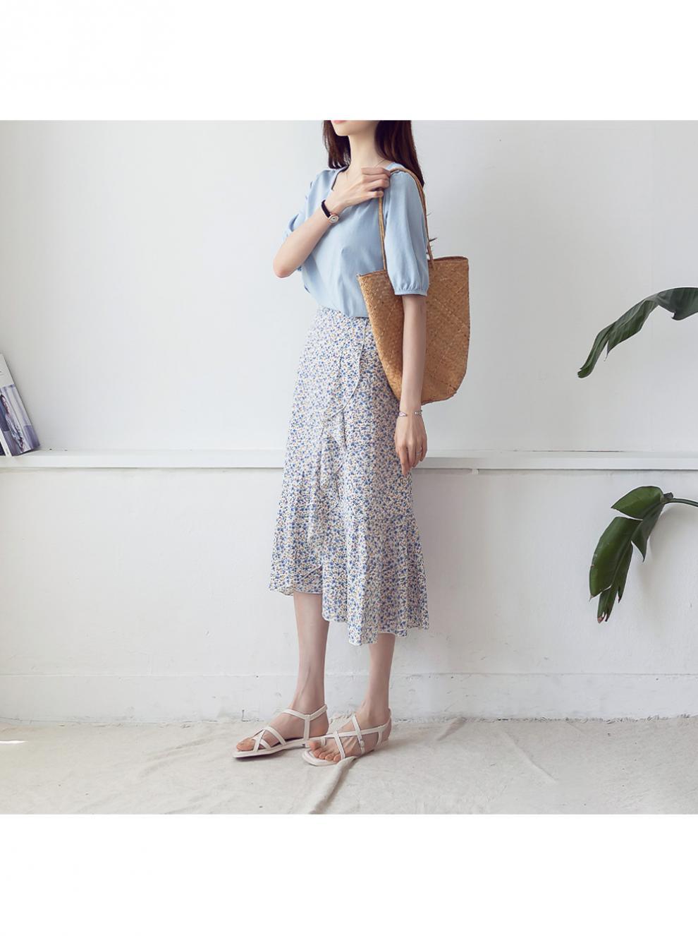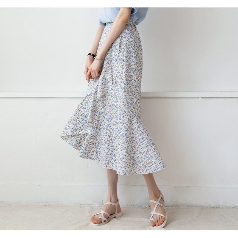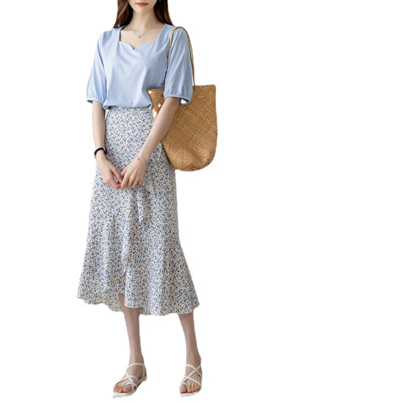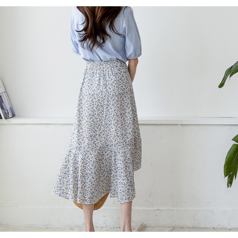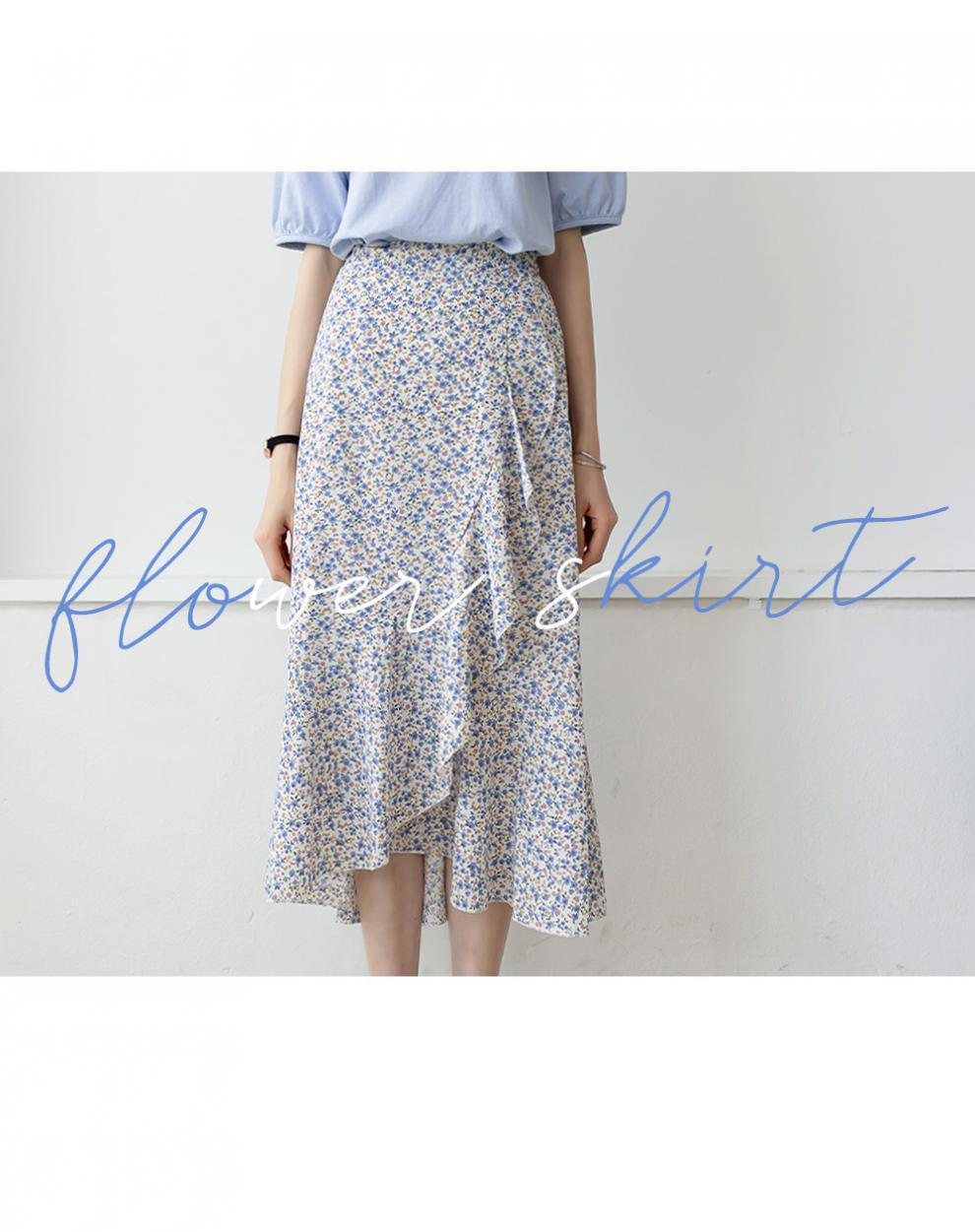2023春夏新品大码女装简约甜美淑女碎花荷叶边不规则下摆半身裙