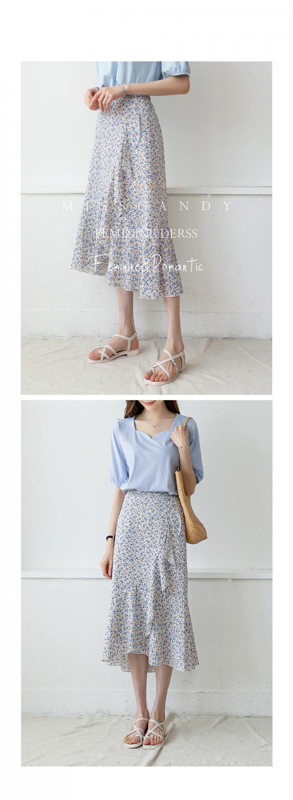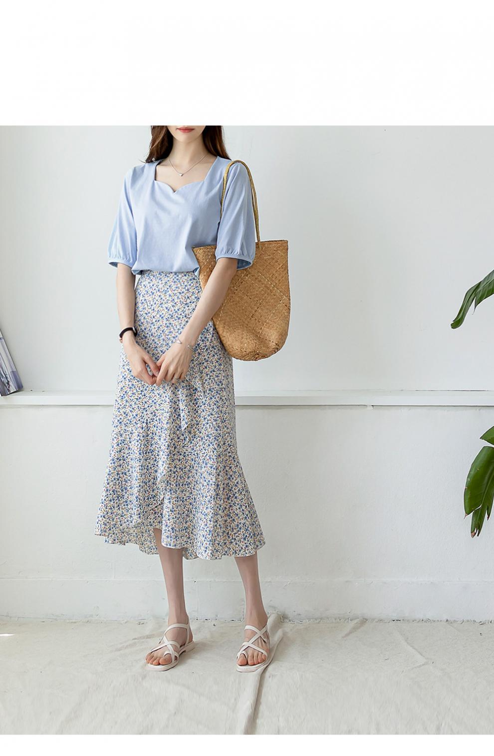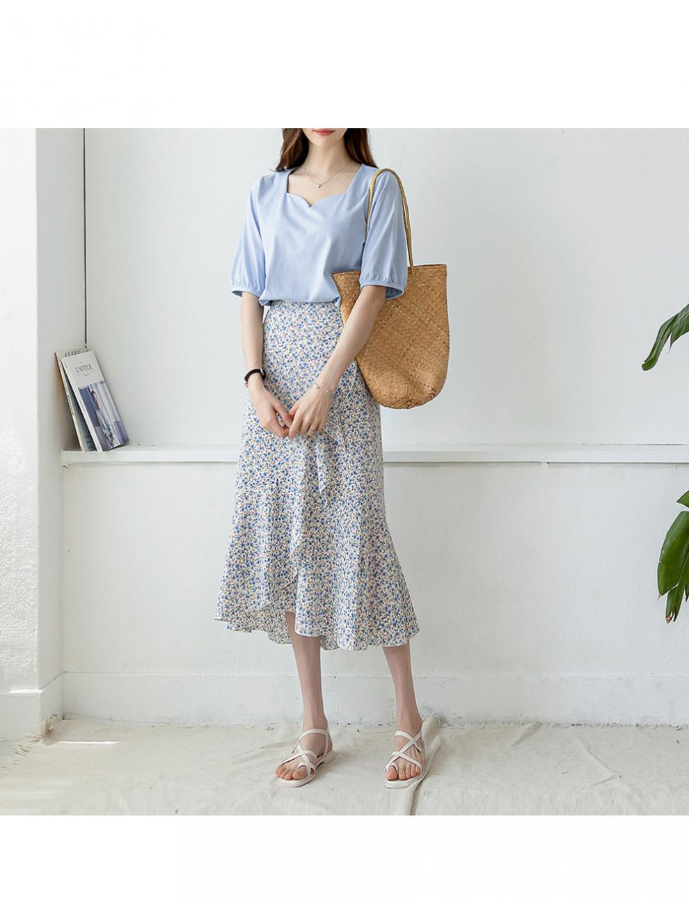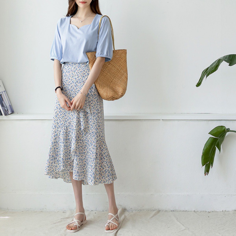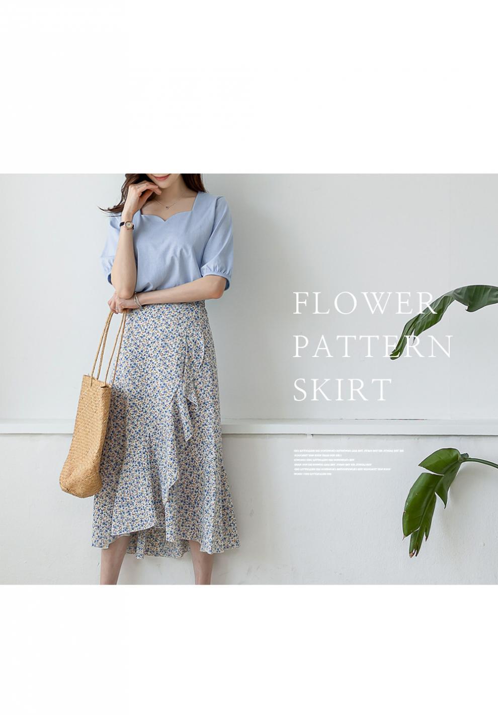 2023春夏新品大码女装简约甜美淑女碎花荷叶边不规则下摆半身裙
