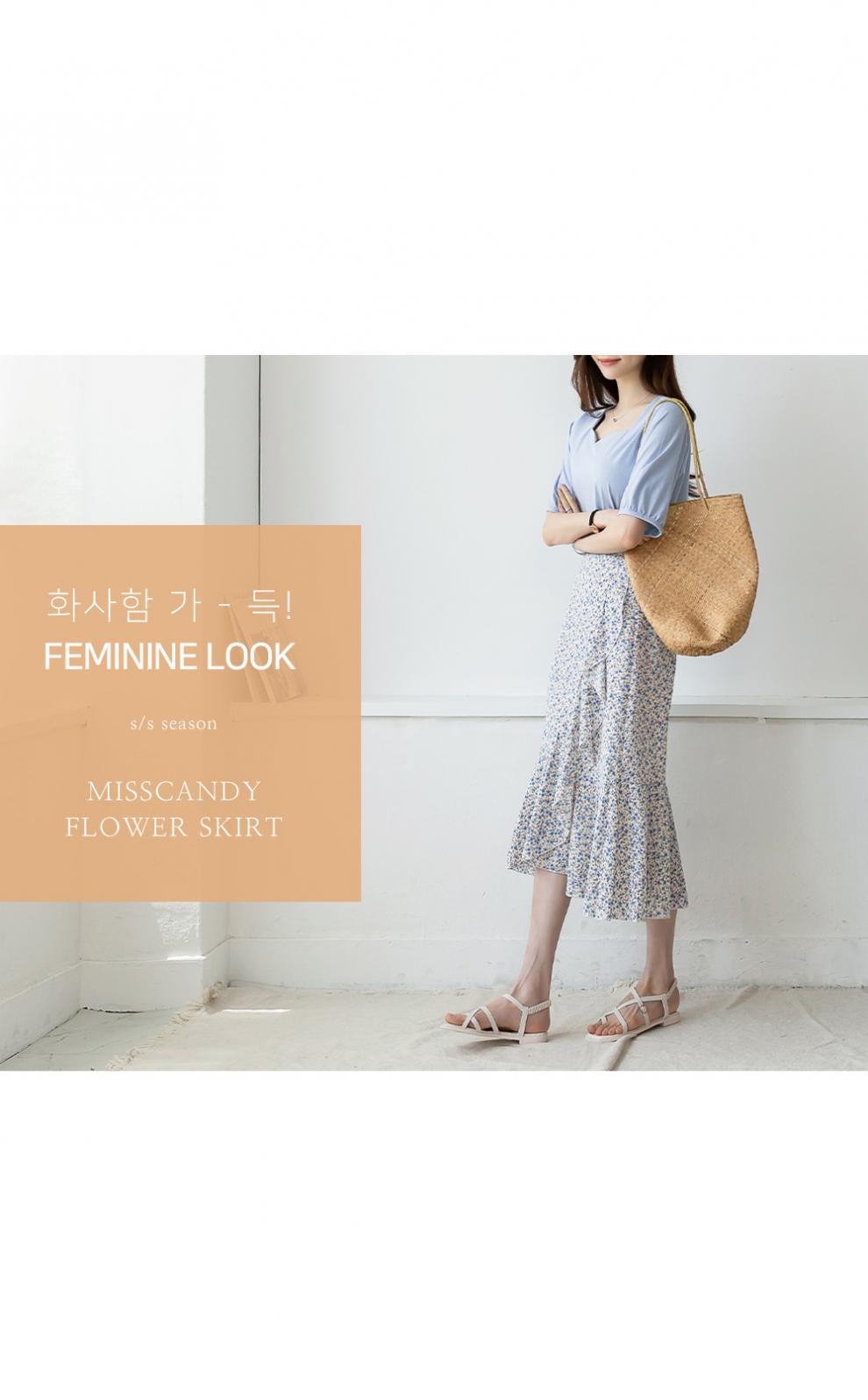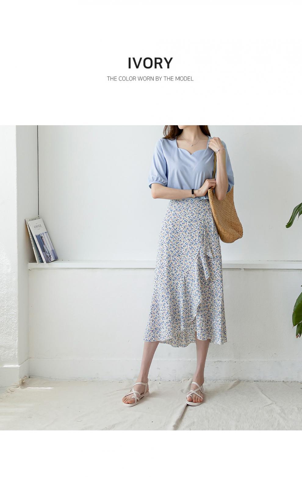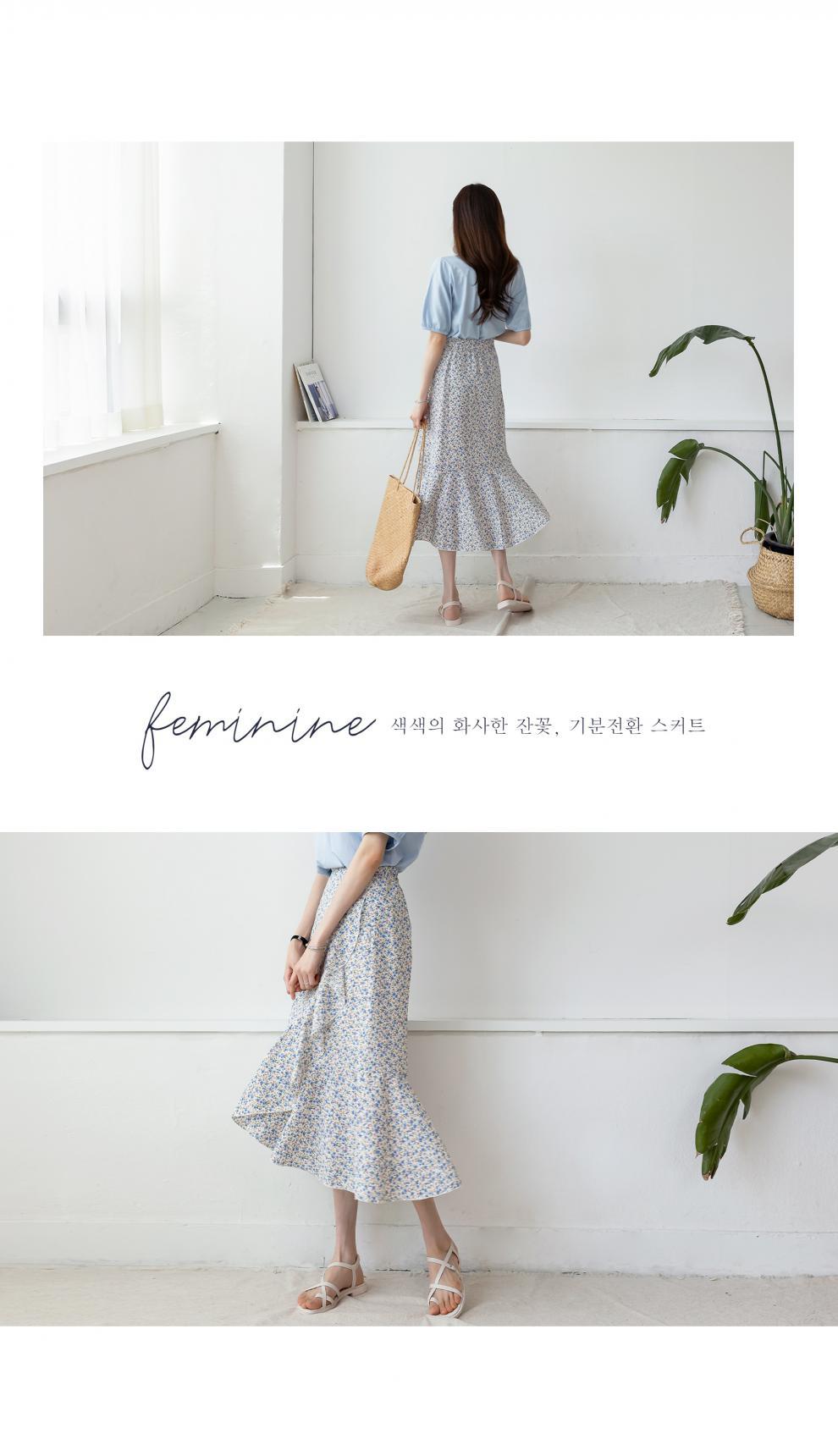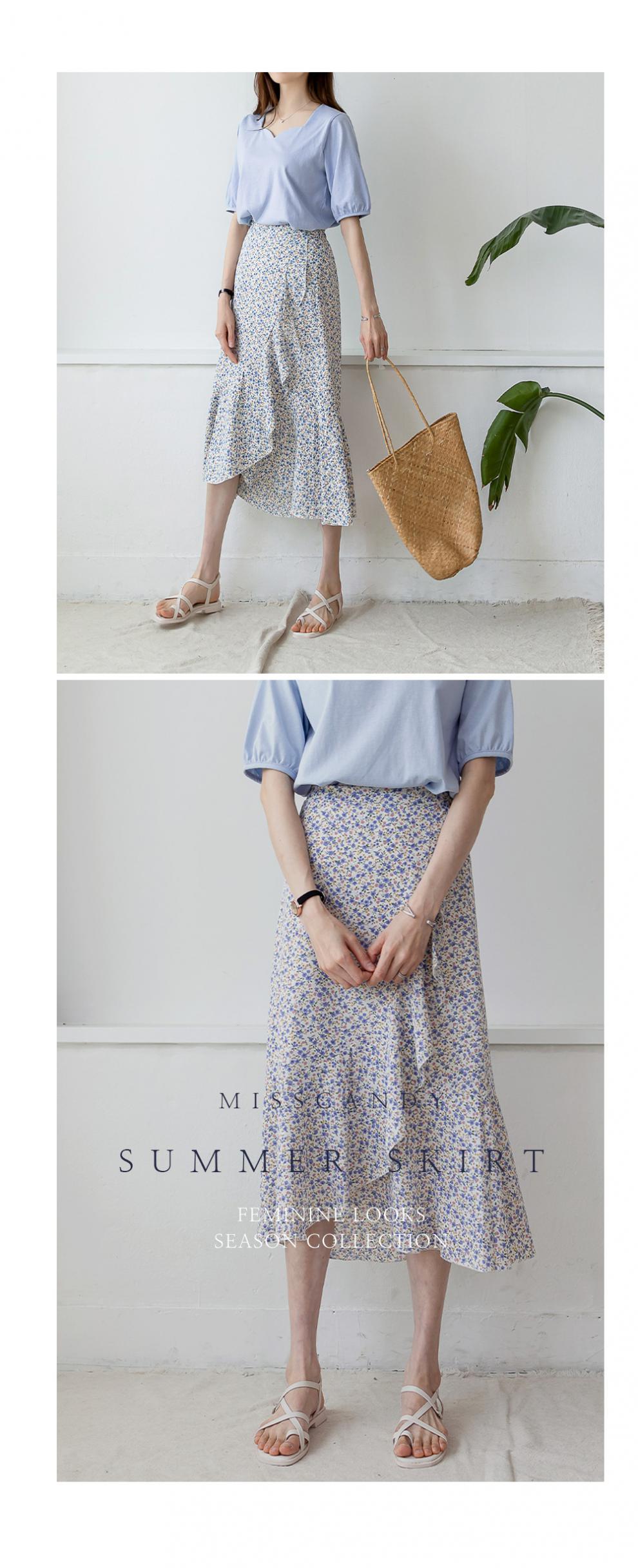 2023春夏新品大码女装简约甜美淑女碎花荷叶边不规则下摆半身裙