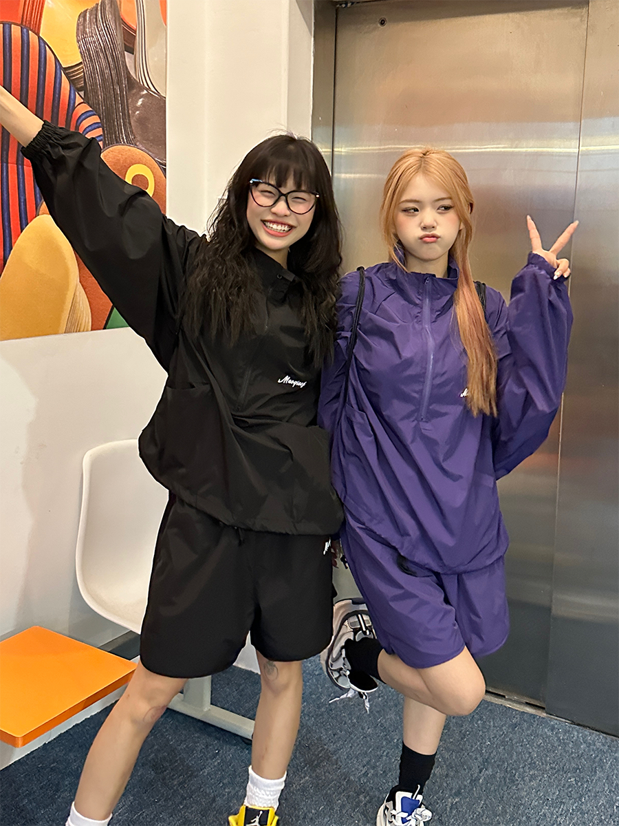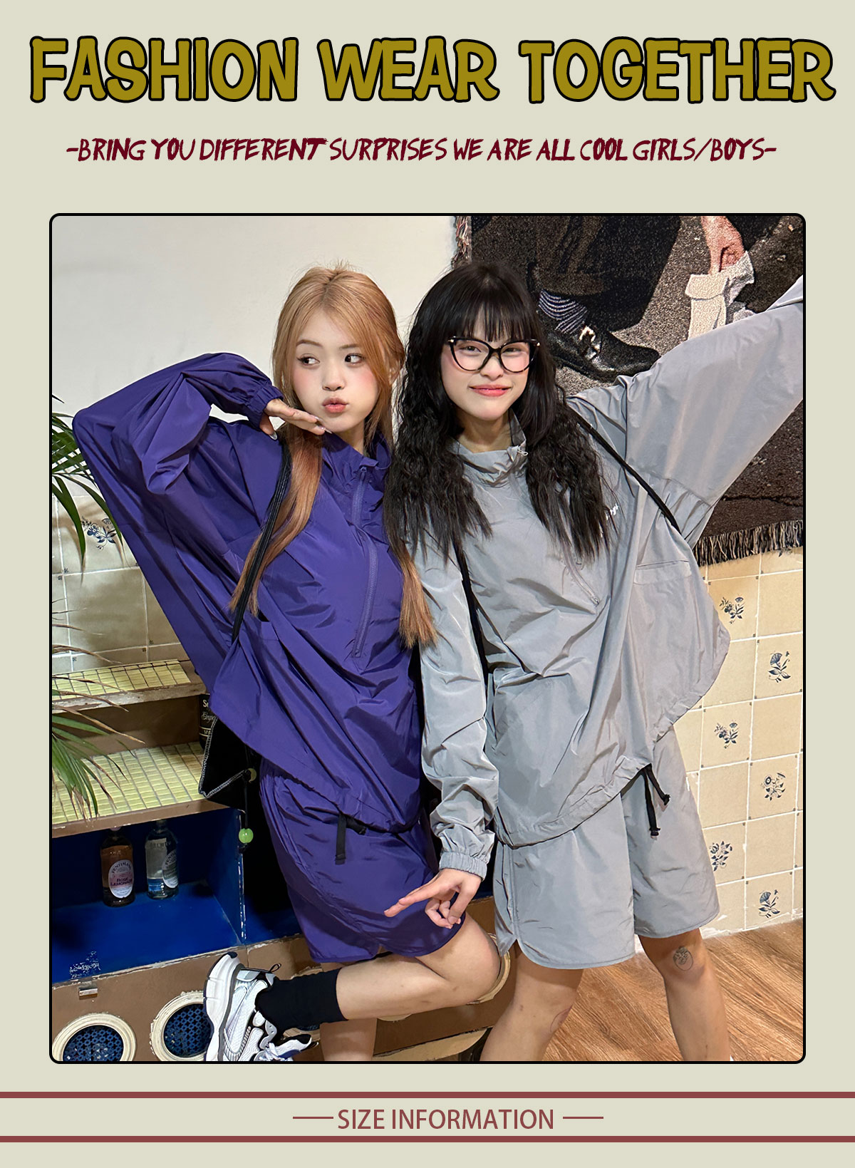 鹽系速乾運動套裝防曬服男女夏美式潮牌街頭嘻哈衝鋒衣情侶兩件套