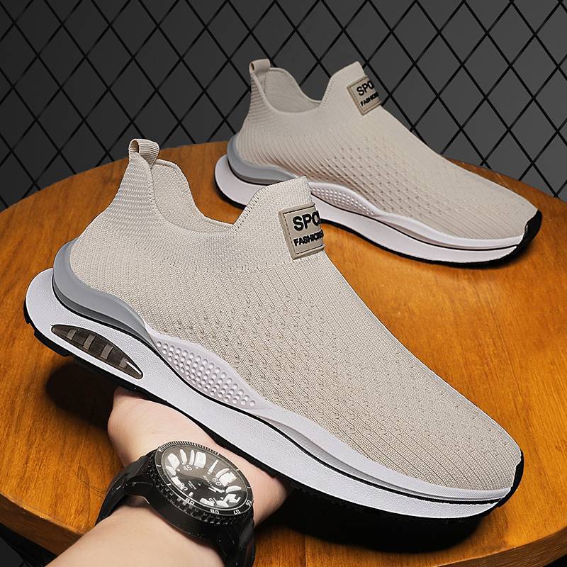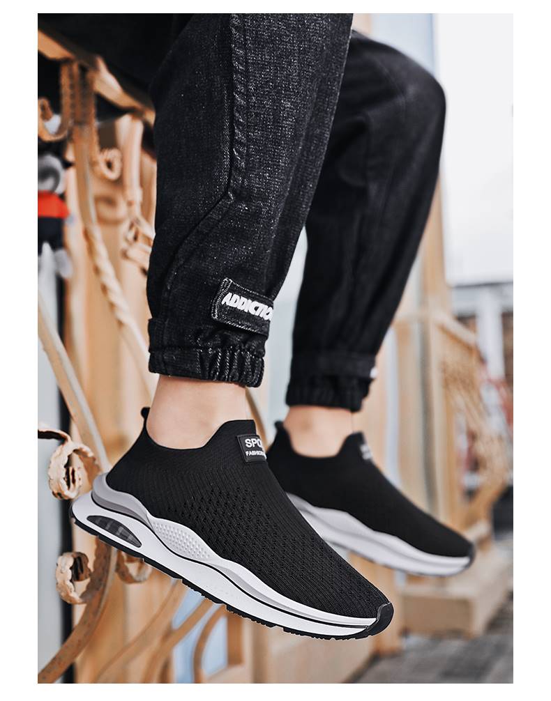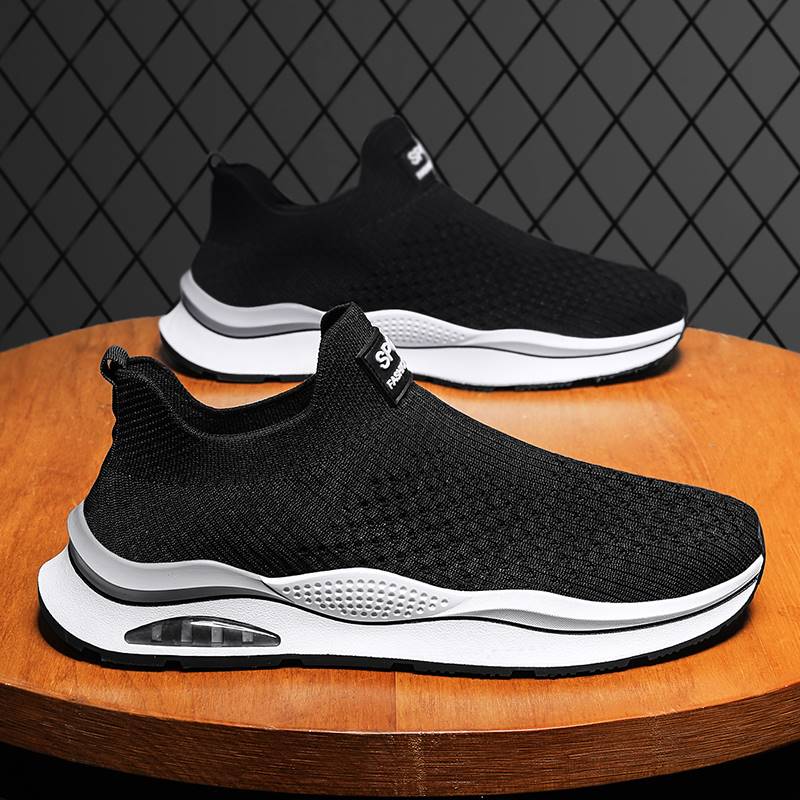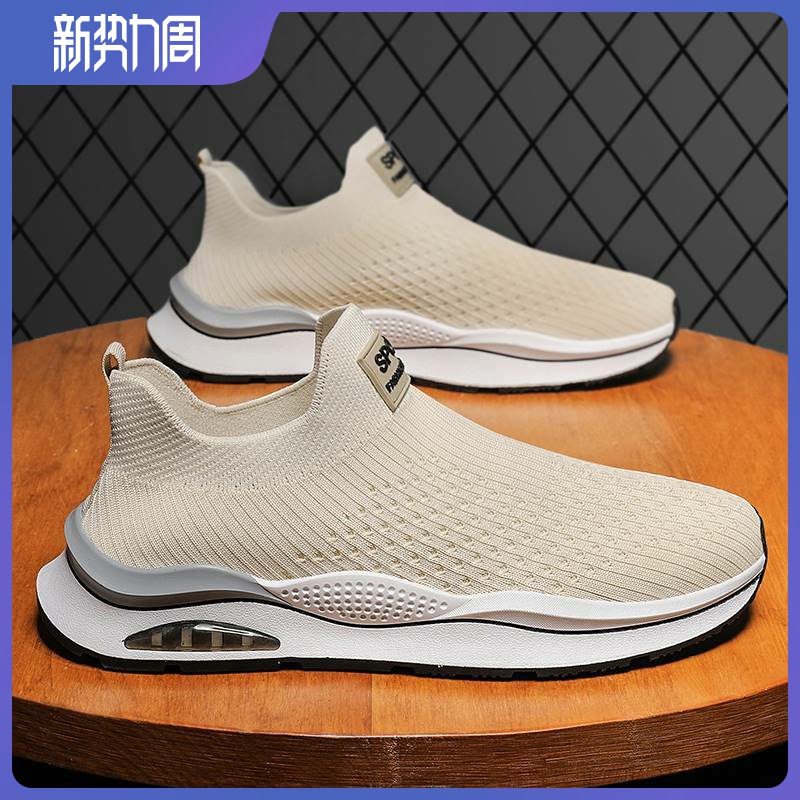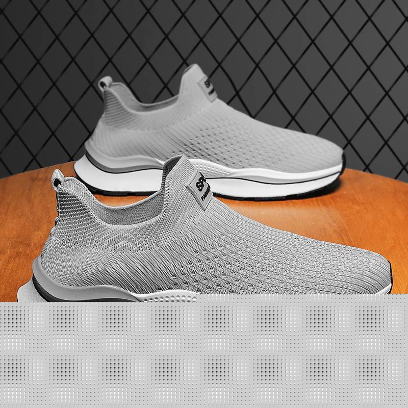 無鞋帶男鞋秋季透氣飛織網面運動鞋不繫鞋帶秋天軟底一腳蹬襪子鞋