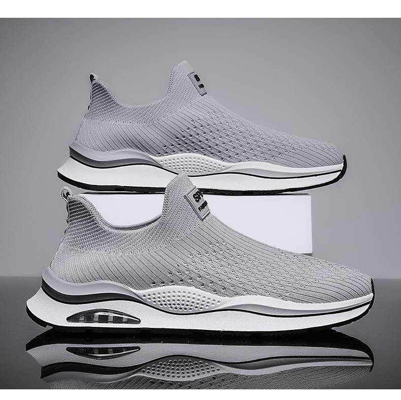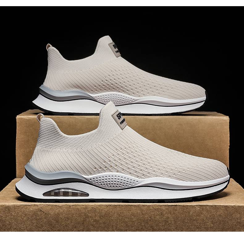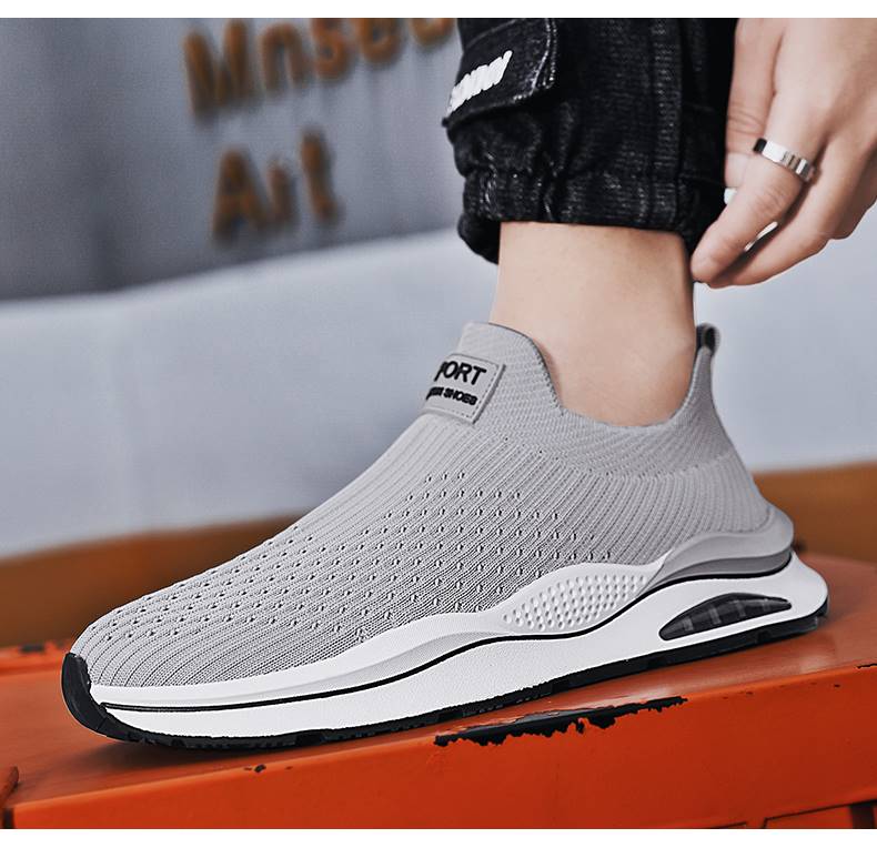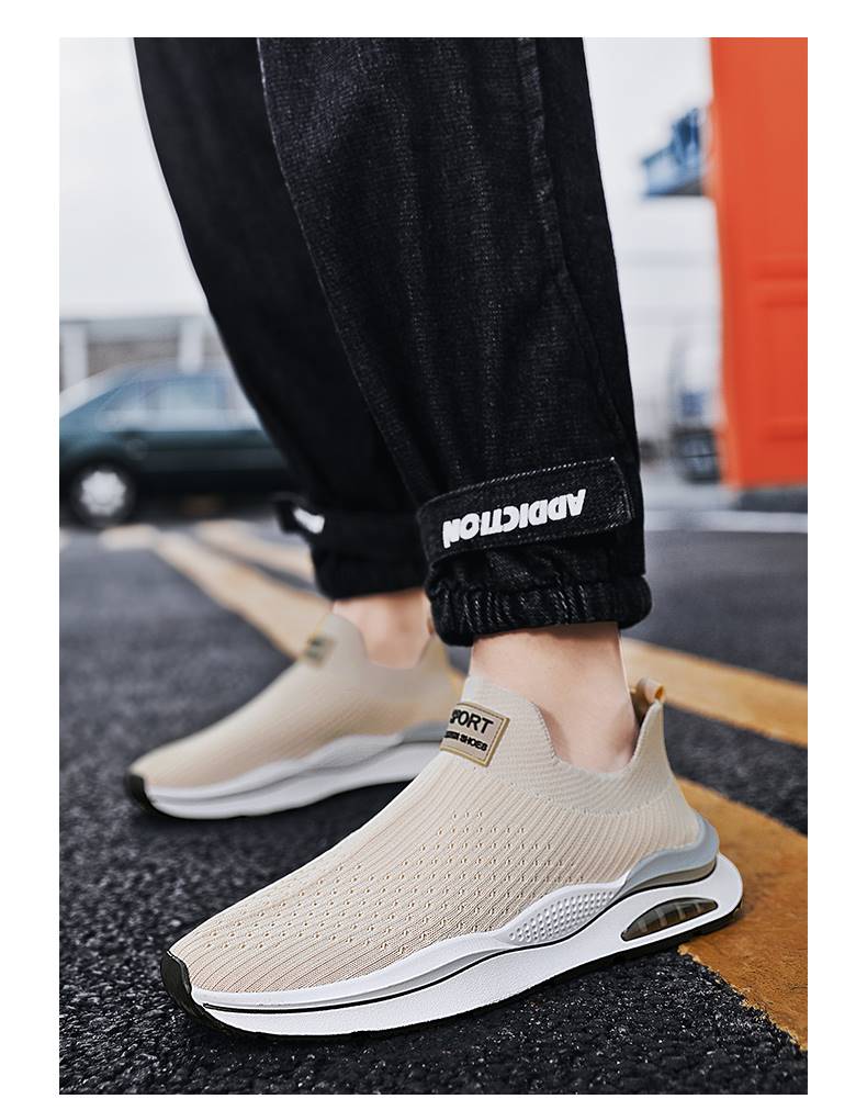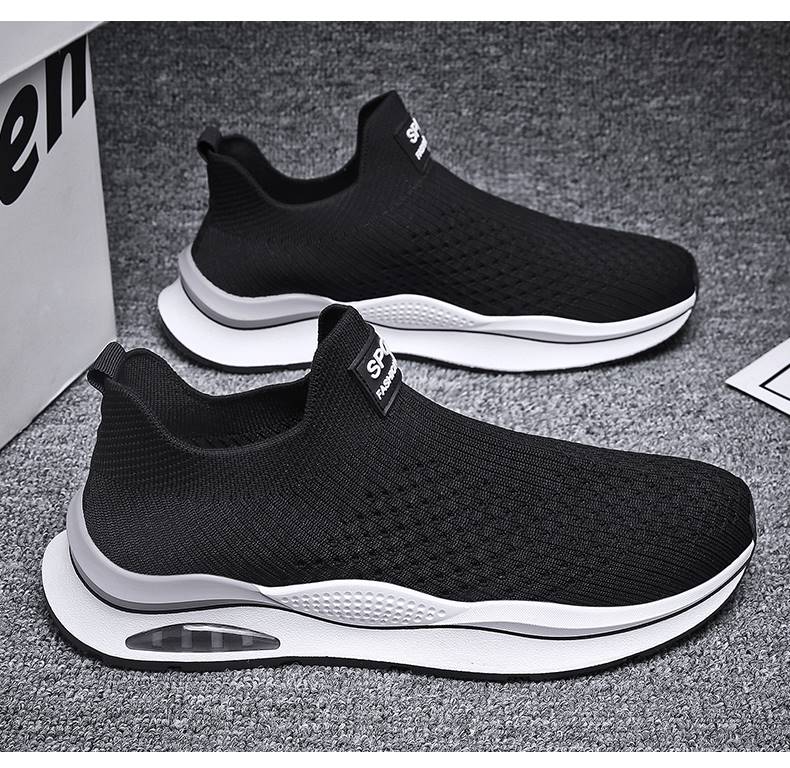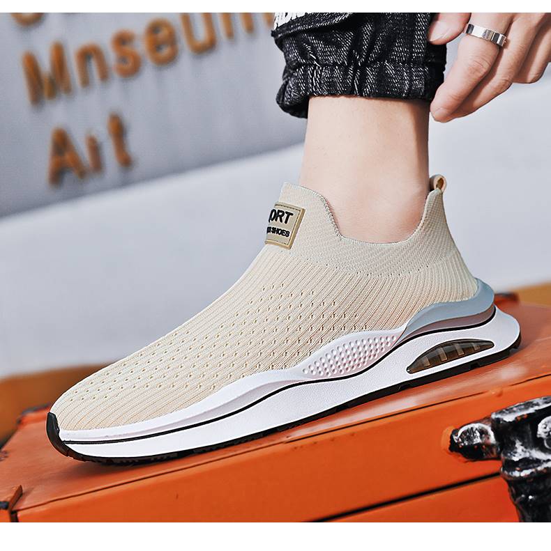 無鞋帶男鞋秋季透氣飛織網面運動鞋不繫鞋帶秋天軟底一腳蹬襪子鞋