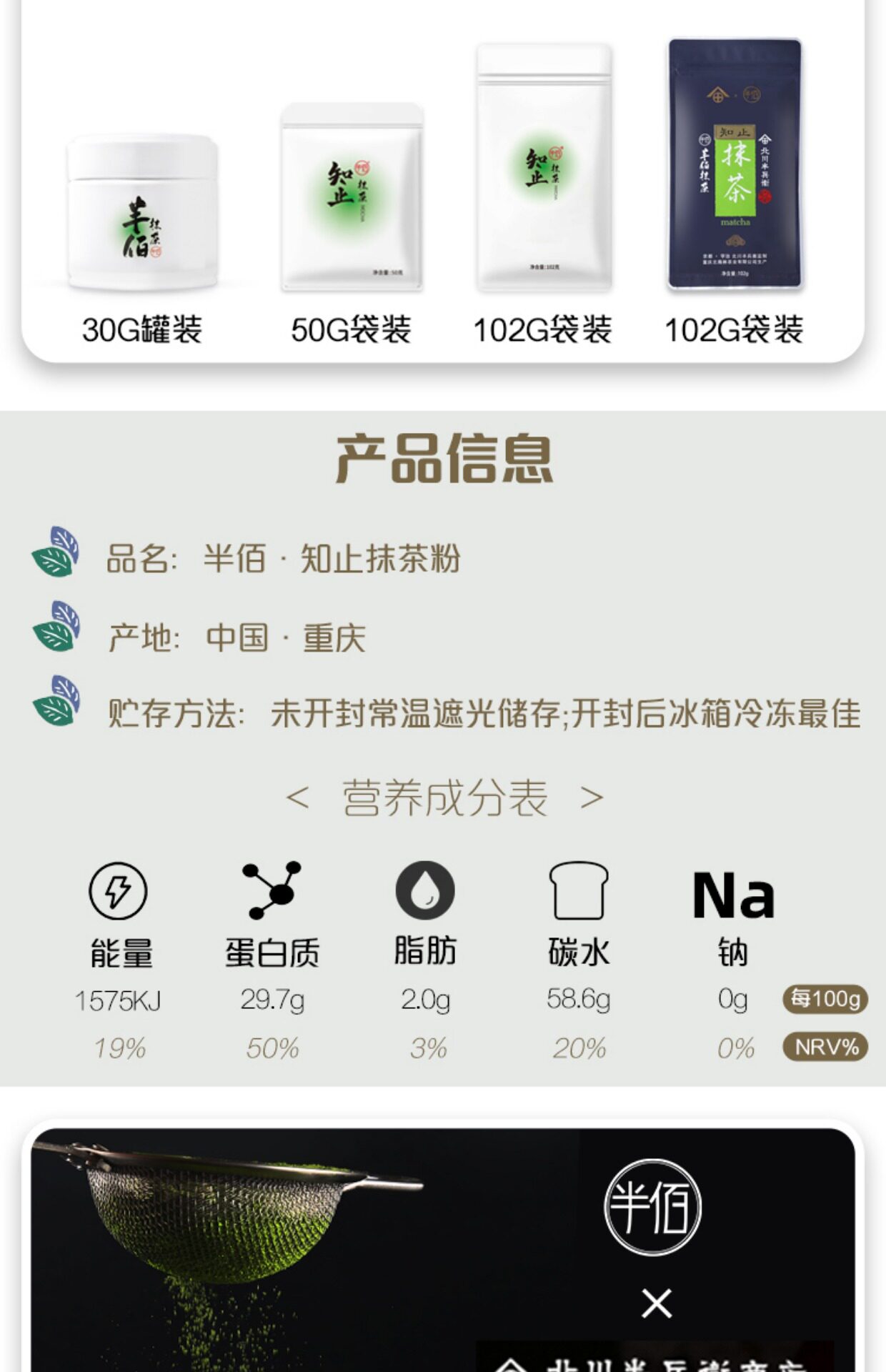 【每日10點限量秒殺】半佰知止抹茶粉試用包嚐鮮8g裝烘焙直飲點茶