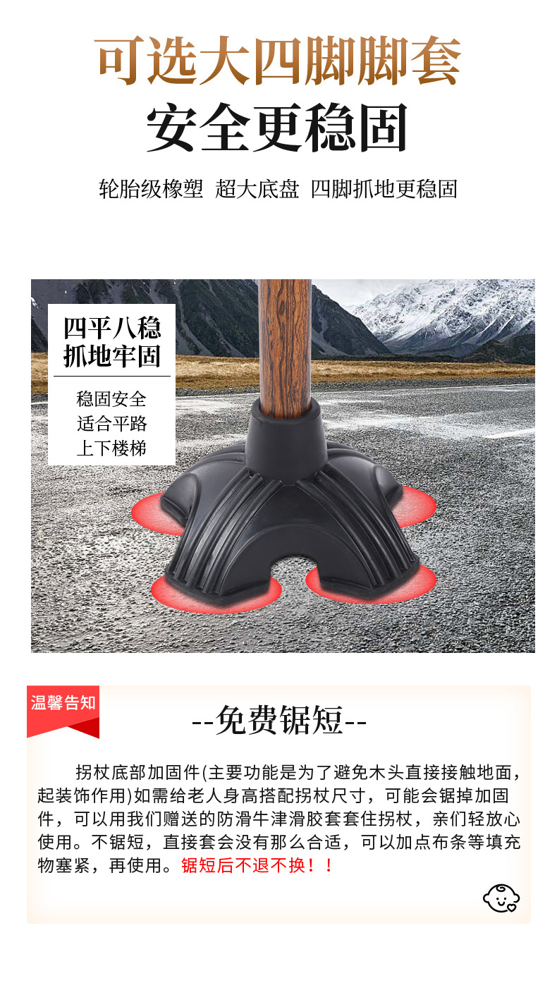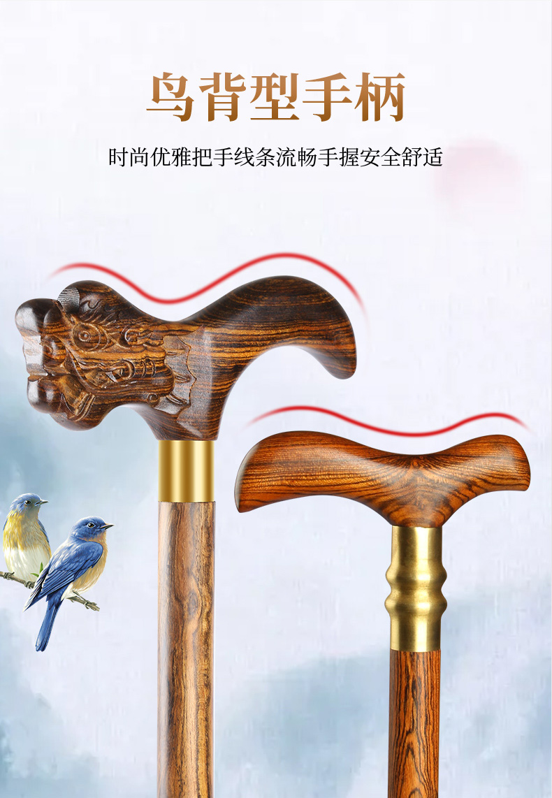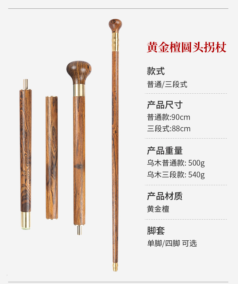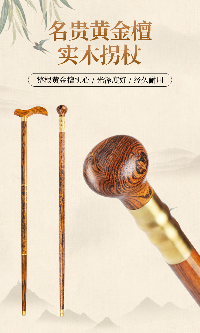 黃金檀老年人防滑柺杖實木柺棍三節扙拐老人輕便手杖木質手棍捌杖
