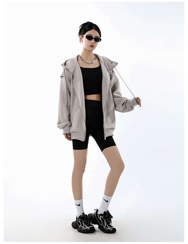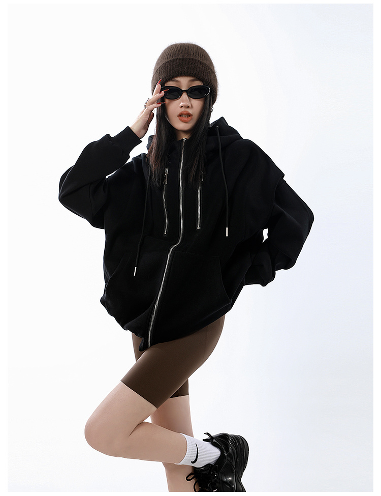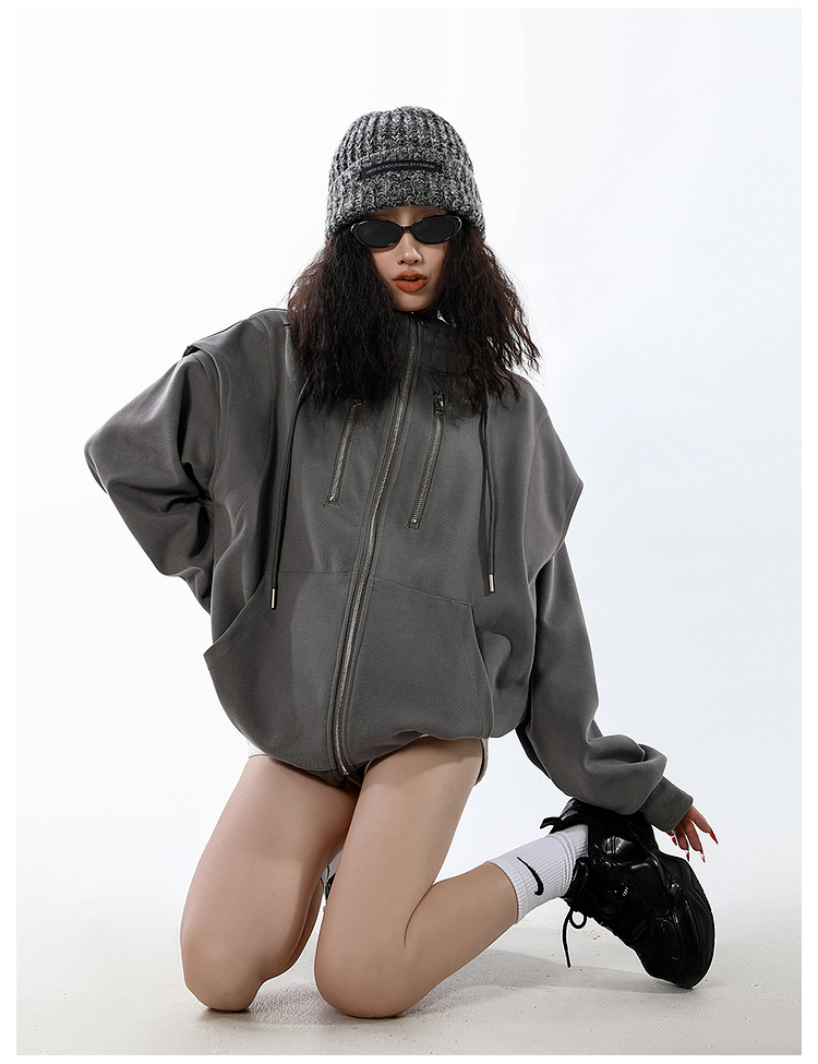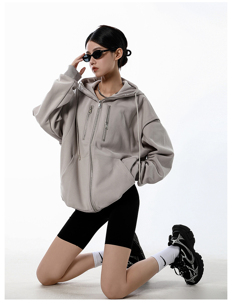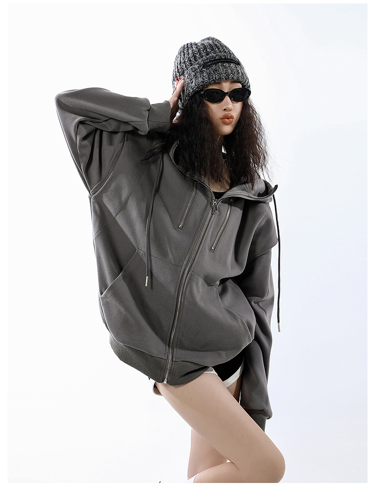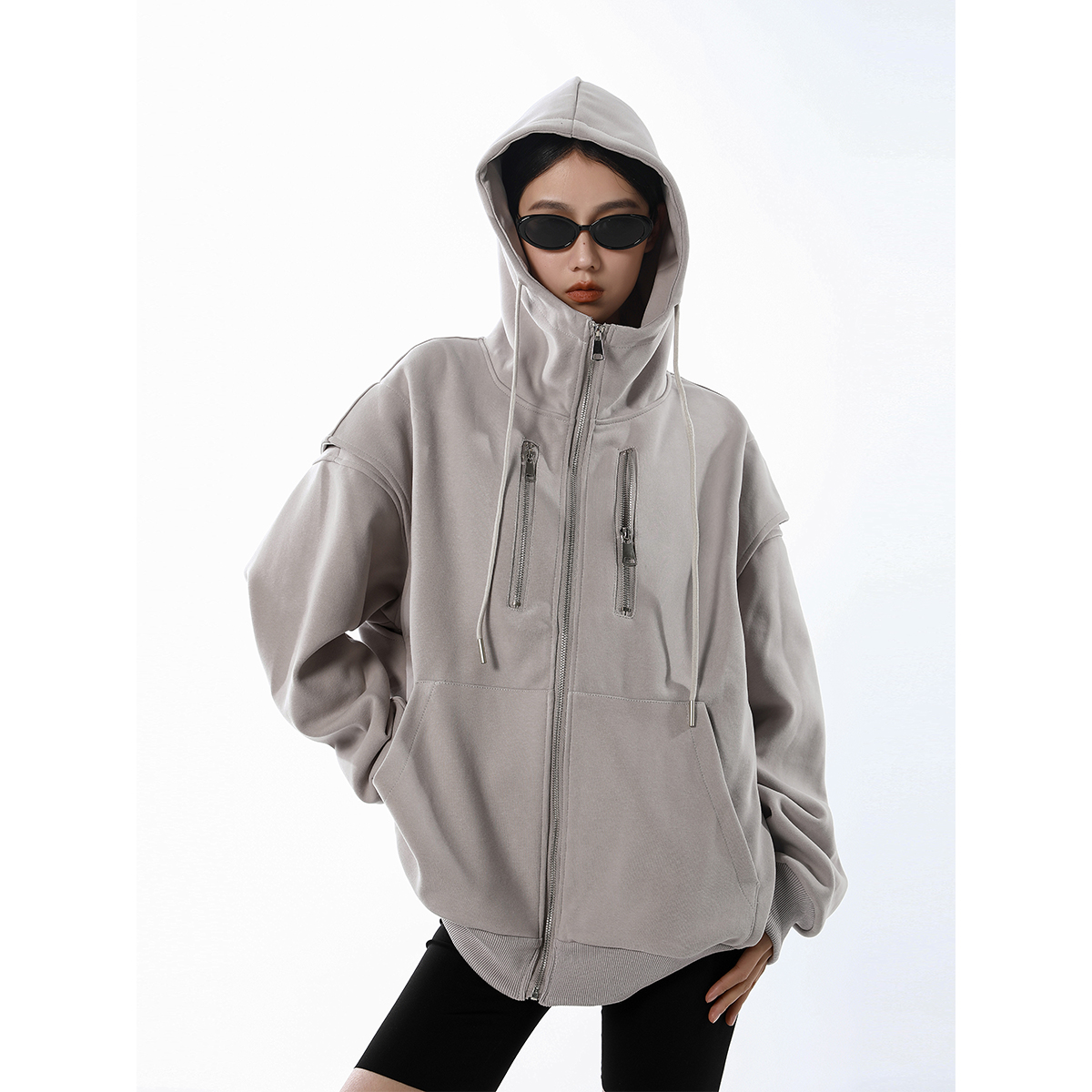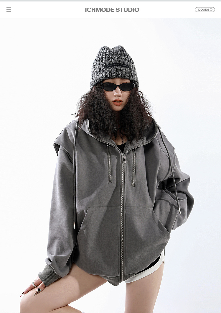 ICH MODE簡約重磅設計感拉鍊春秋開衫外套女美式街頭潮牌連帽運動衫