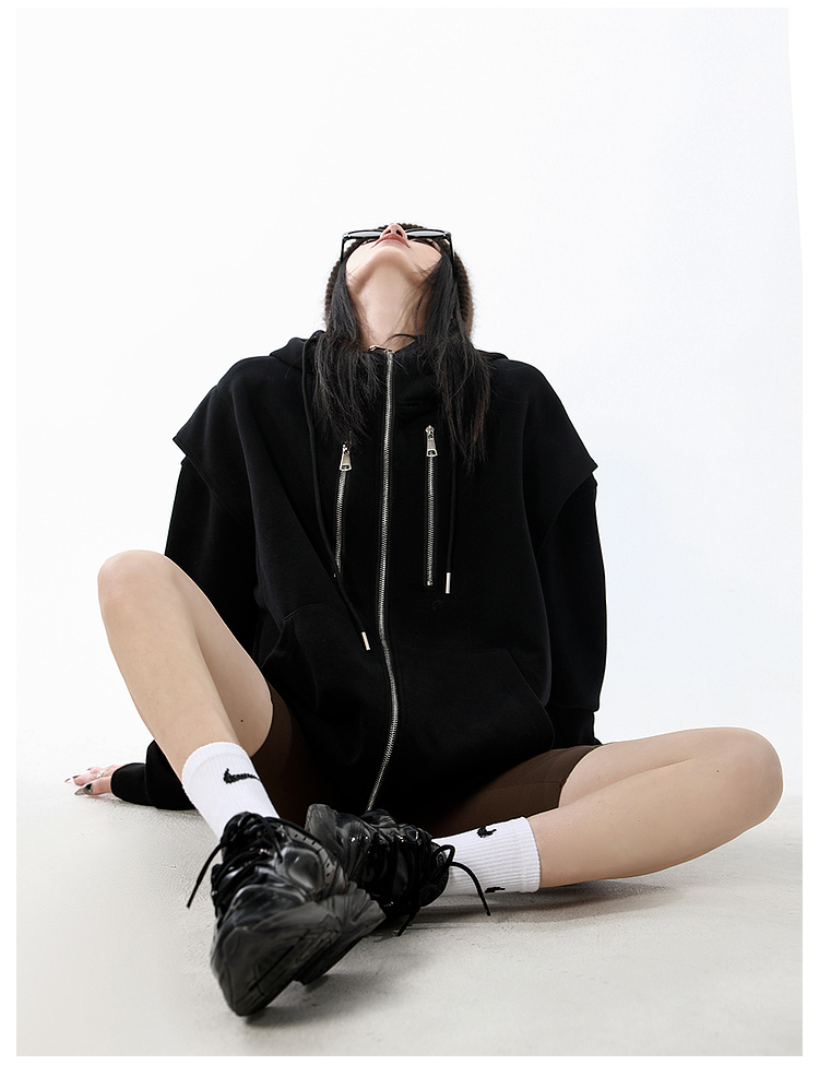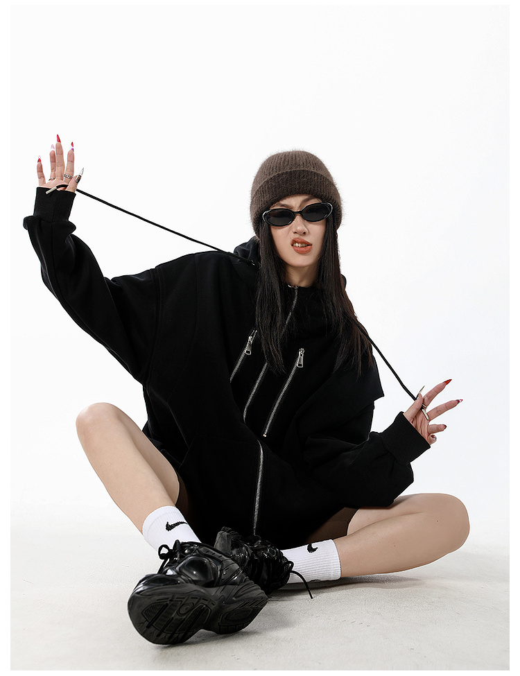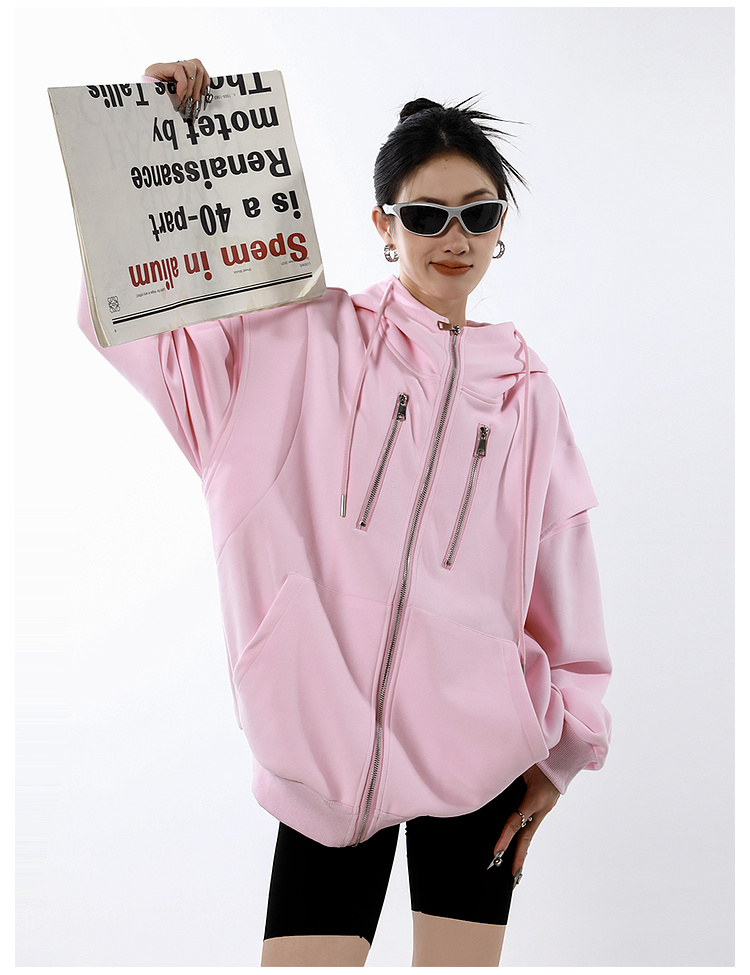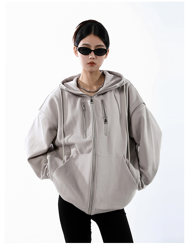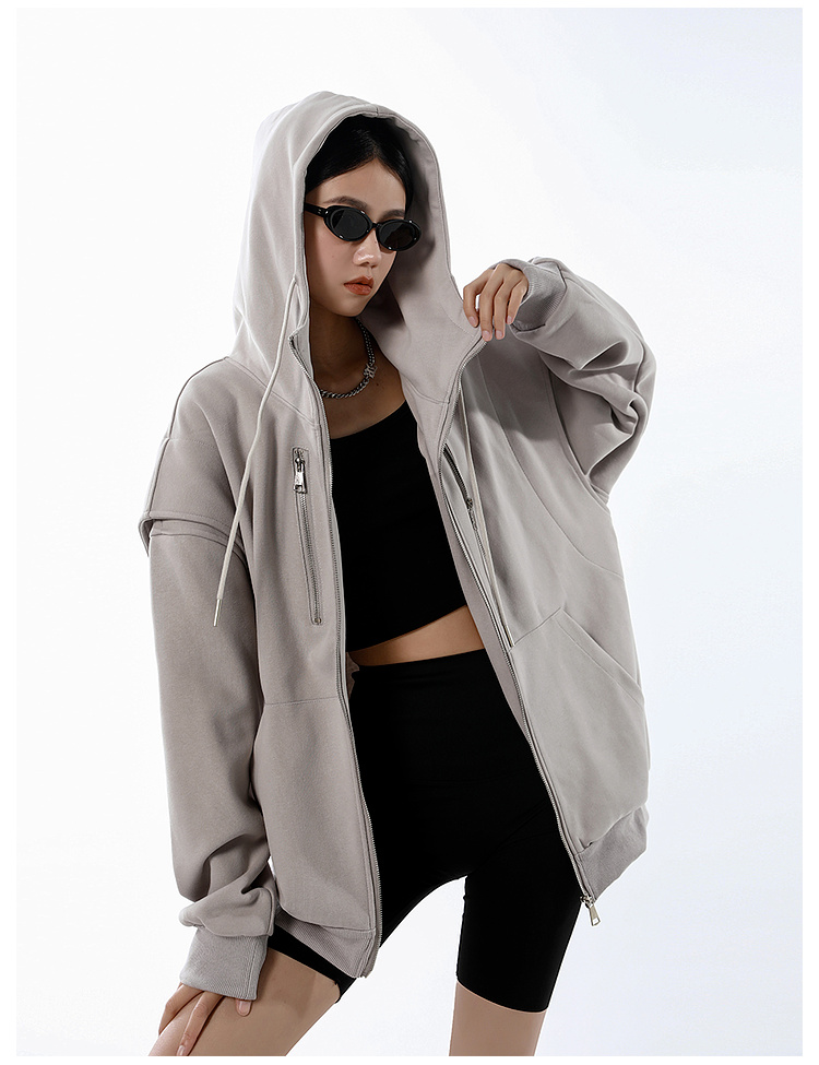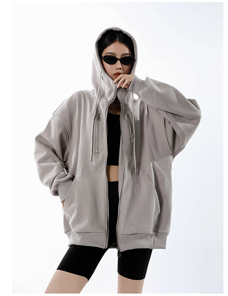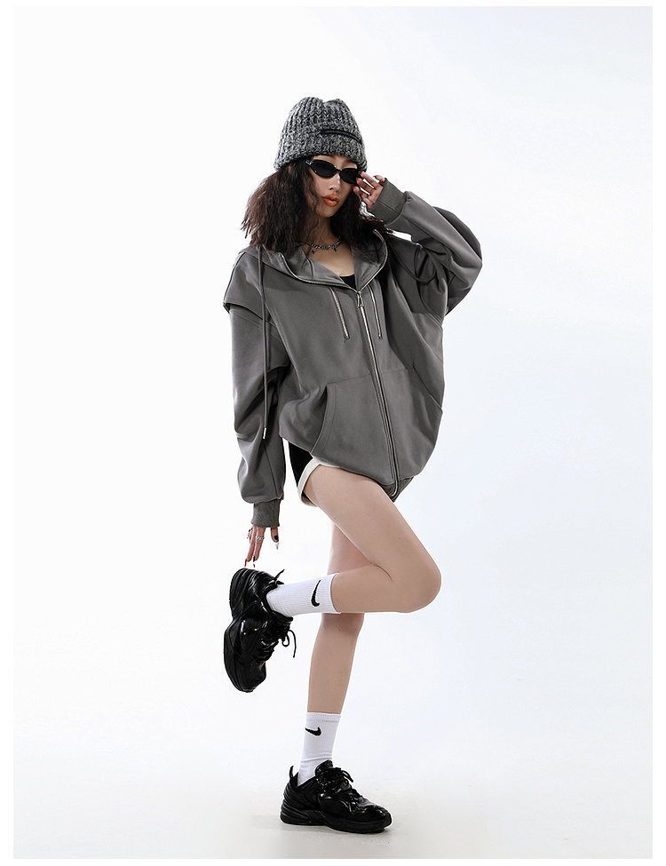 ICH MODE簡約重磅設計感拉鍊春秋開衫外套女美式街頭潮牌連帽運動衫