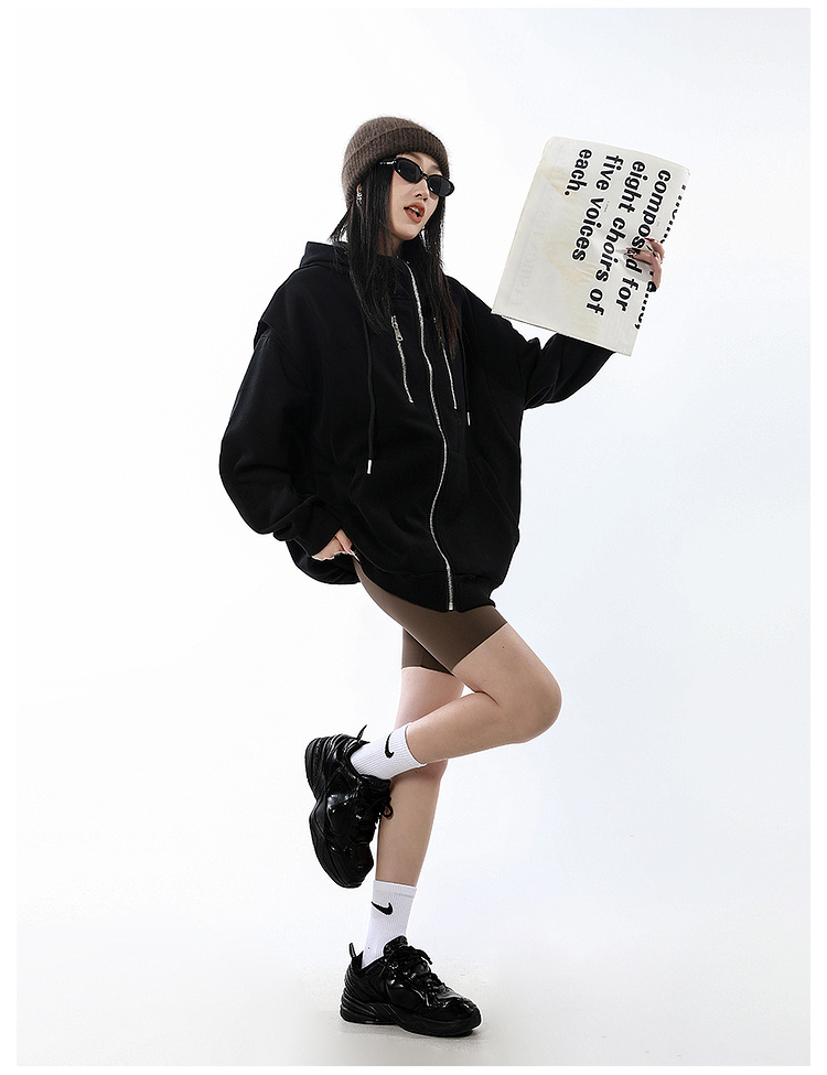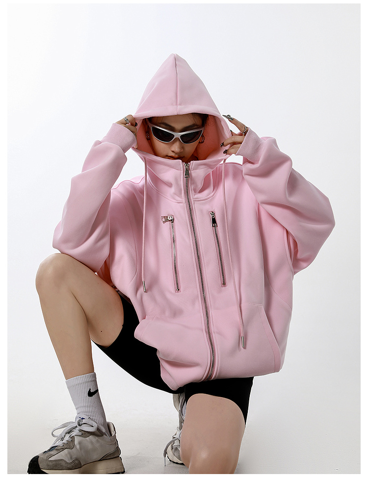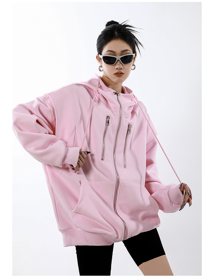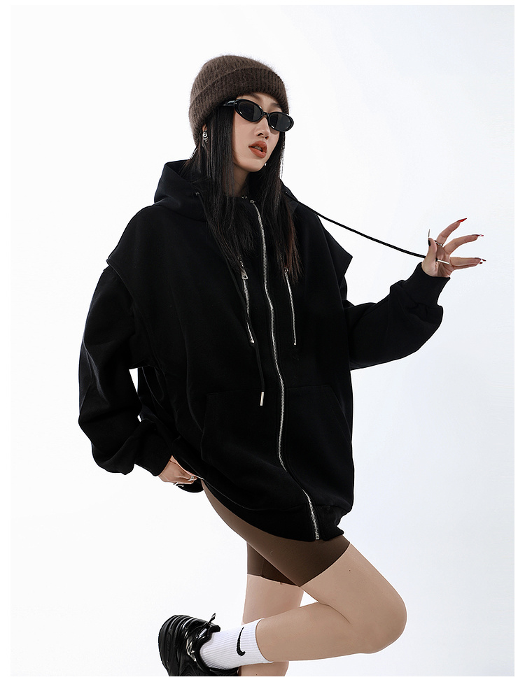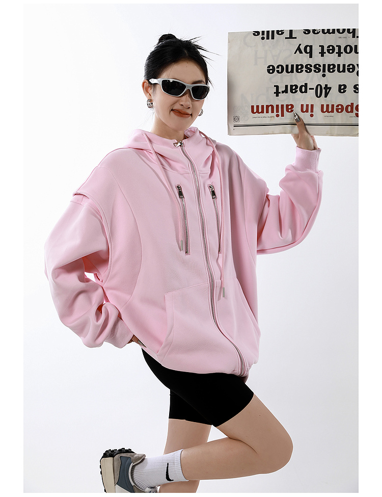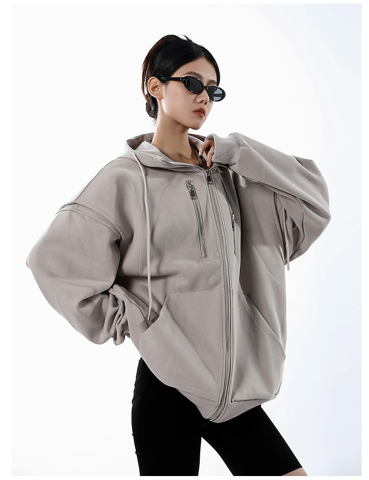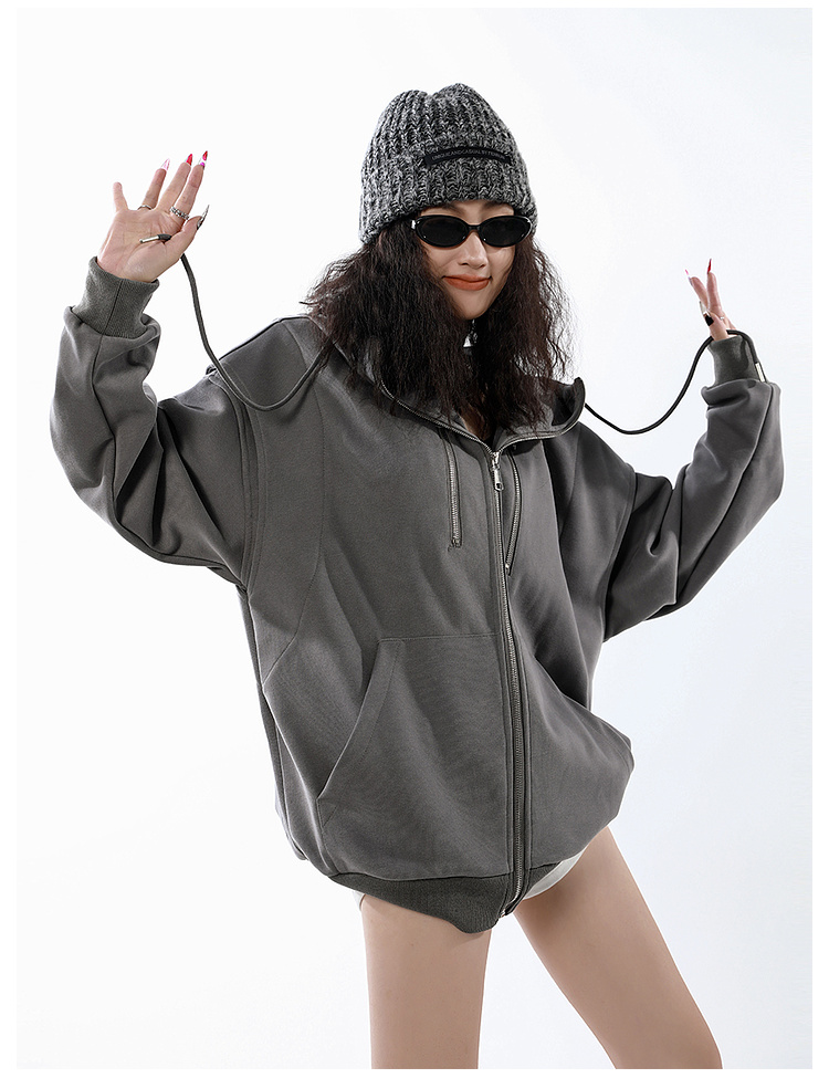 ICH MODE簡約重磅設計感拉鍊春秋開衫外套女美式街頭潮牌連帽運動衫