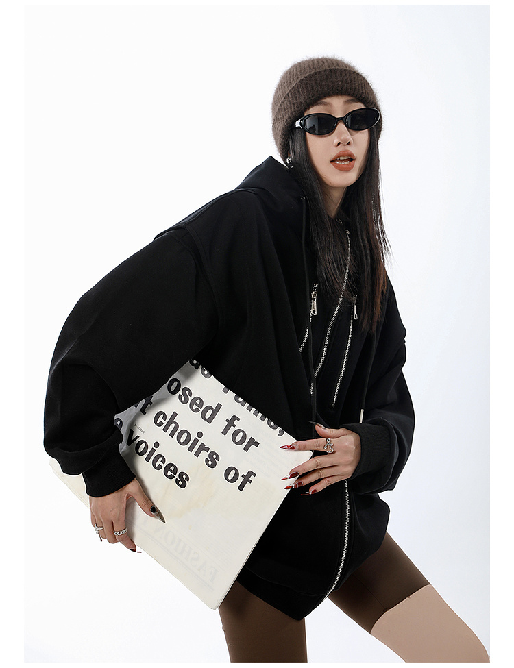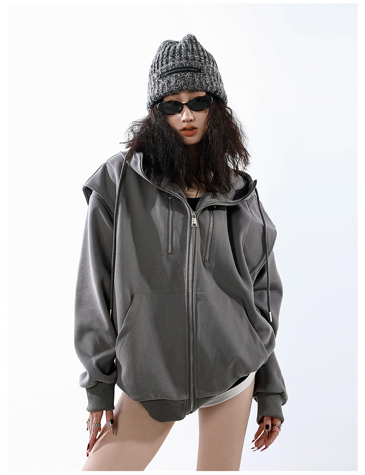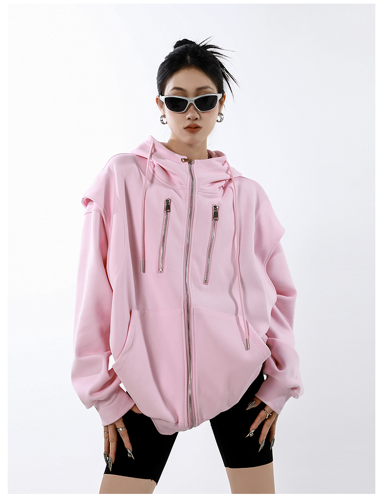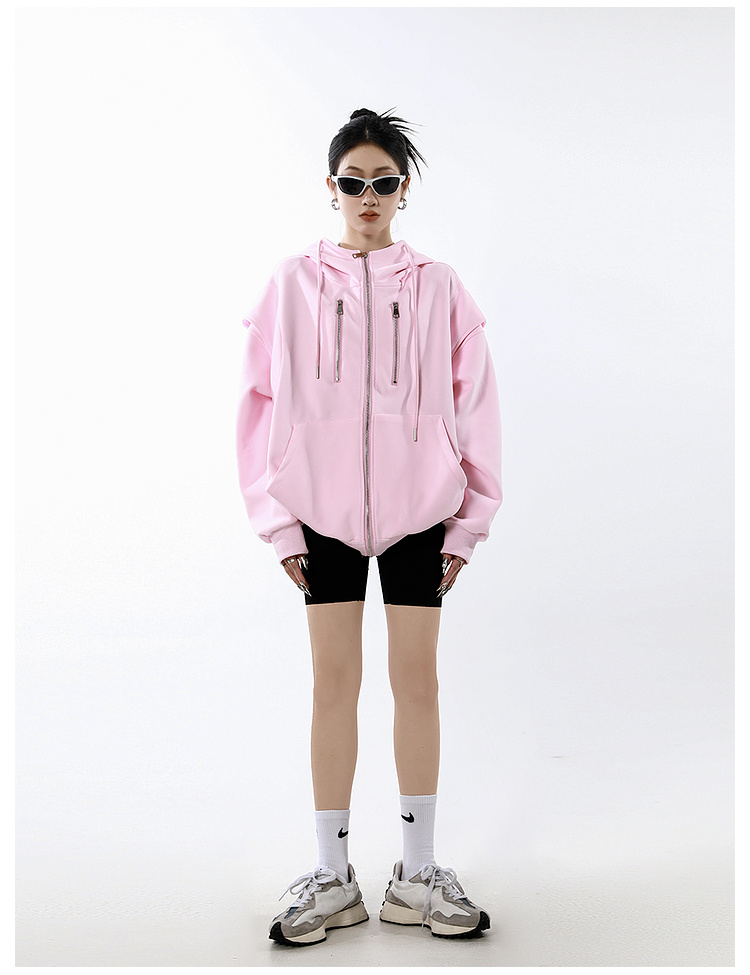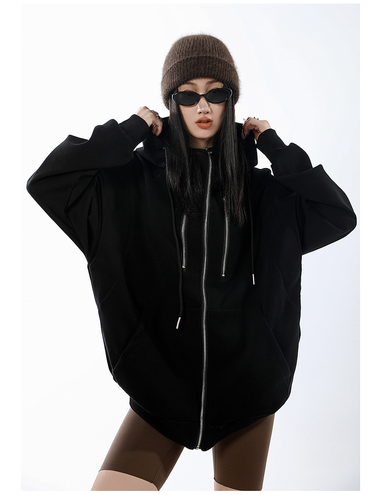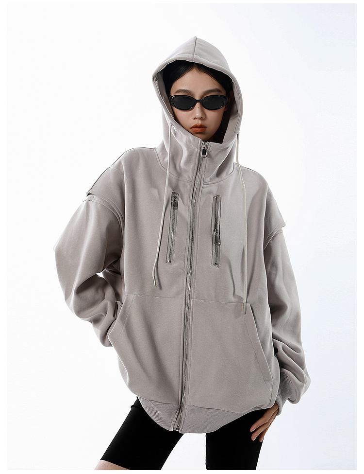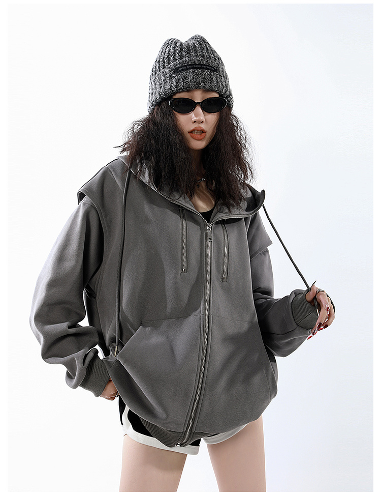 ICH MODE簡約重磅設計感拉鍊春秋開衫外套女美式街頭潮牌連帽運動衫