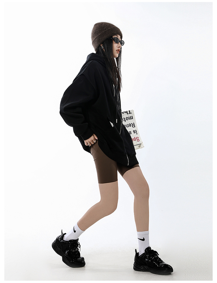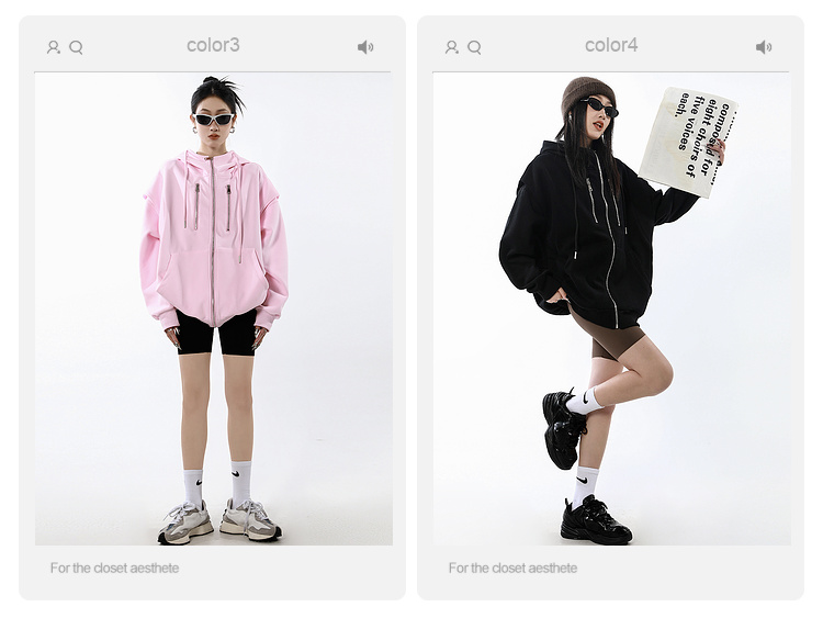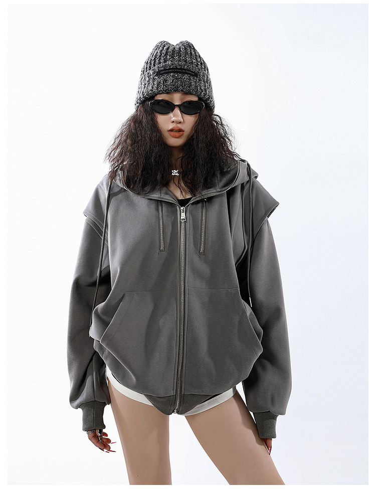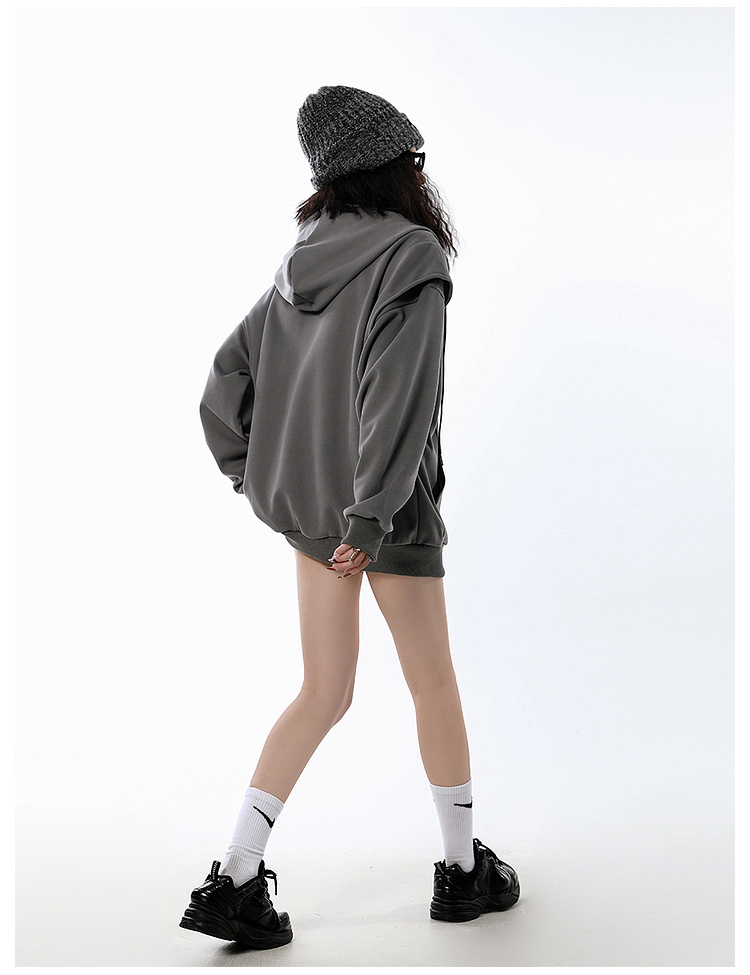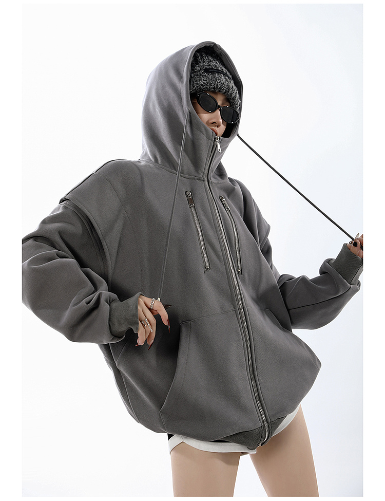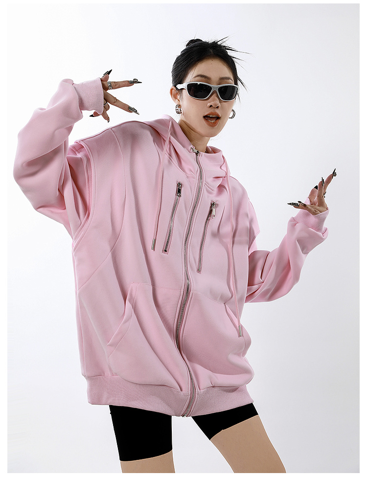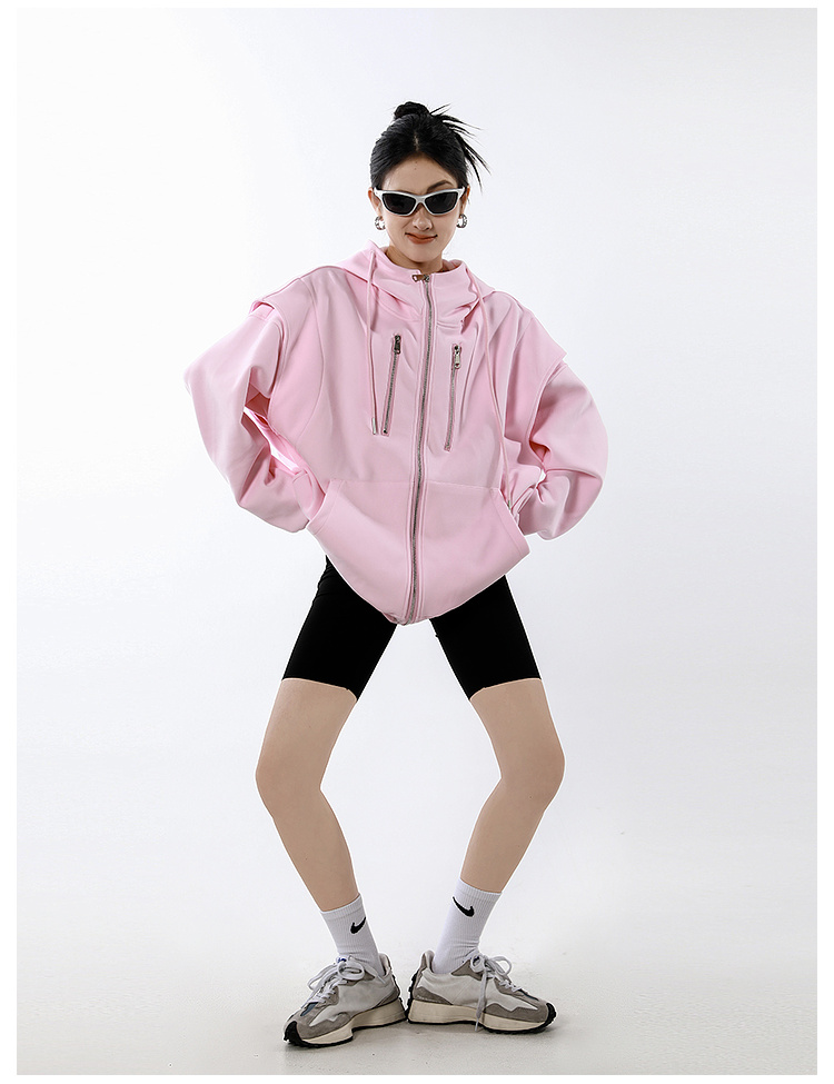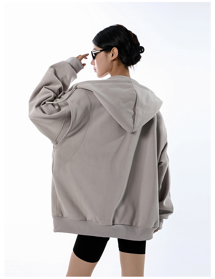 ICH MODE簡約重磅設計感拉鍊春秋開衫外套女美式街頭潮牌連帽運動衫