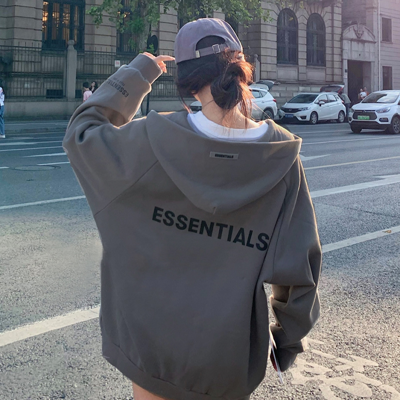 複線ESSENTIALS拉鍊開衫厚棉T女休閒寬鬆情侶裝高街潮牌FOG外套春