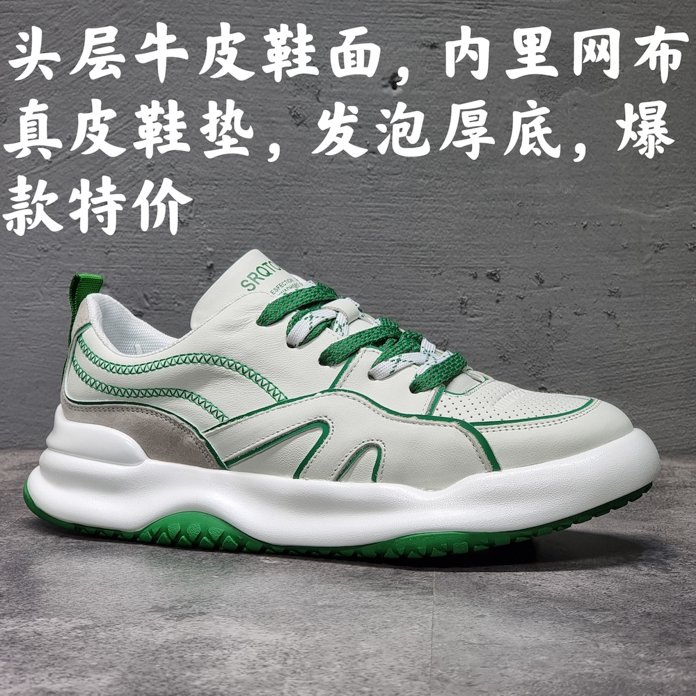 稀缺牛貨外貿尾單爆款特價撿漏頭層牛皮小白鞋厚底透氣休閒時尚鞋