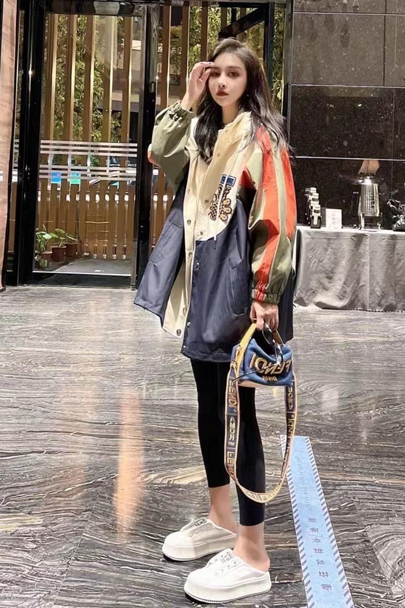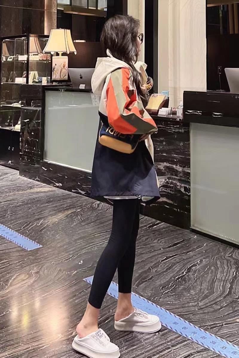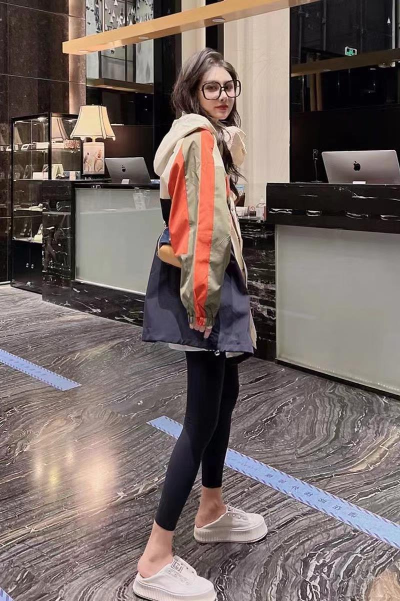 日本erouy moussy撞色連帽風衣工裝外套女春新款寬鬆拼色接衝鋒衣