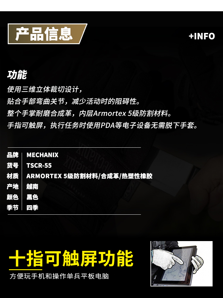 美國Mechanix超級技師5級防割手套CR5追擊者軍迷戰術觸控屏幕全指手套