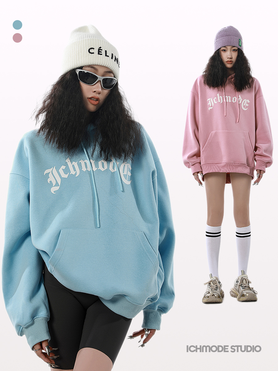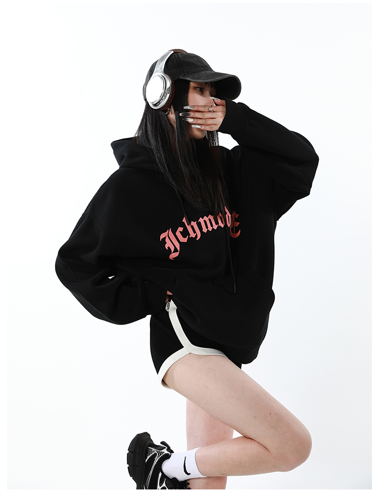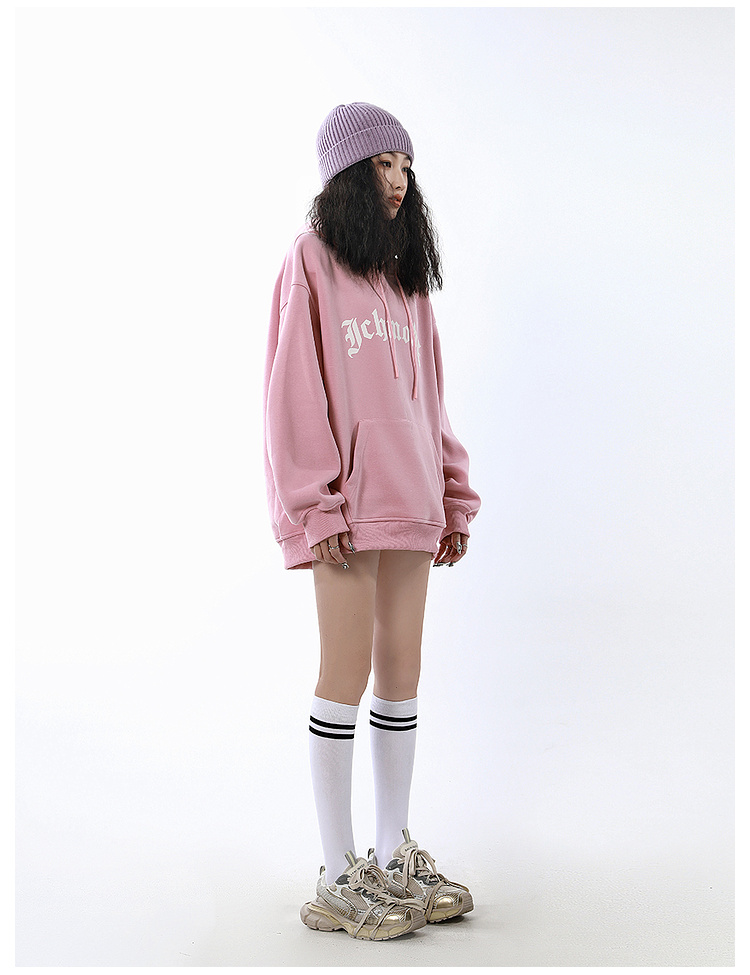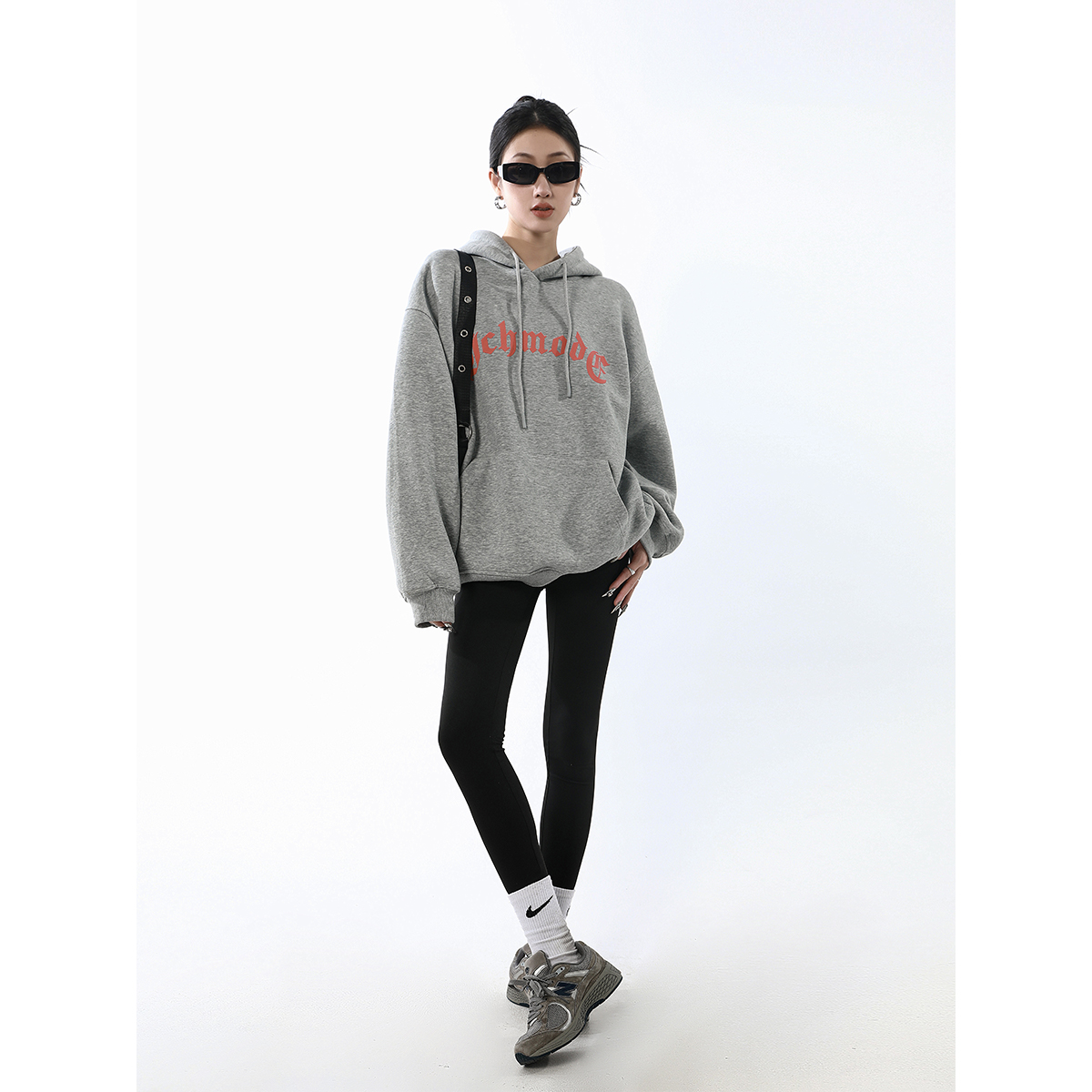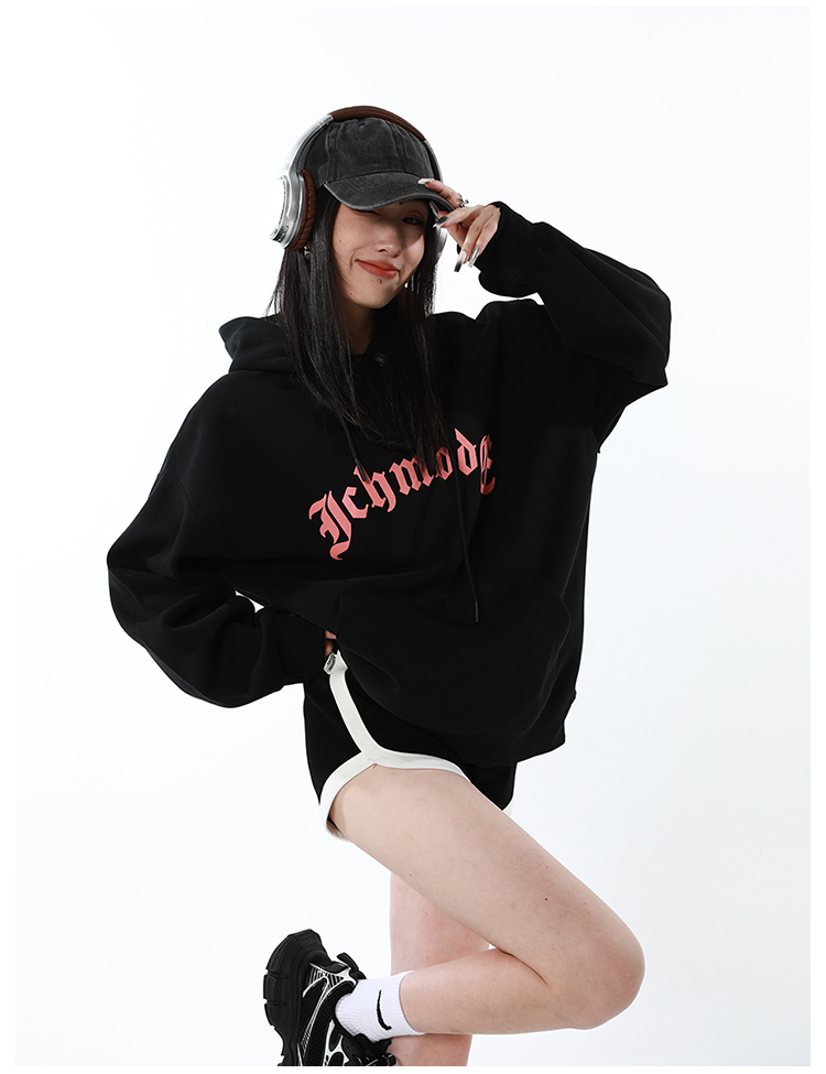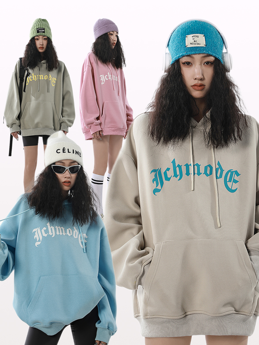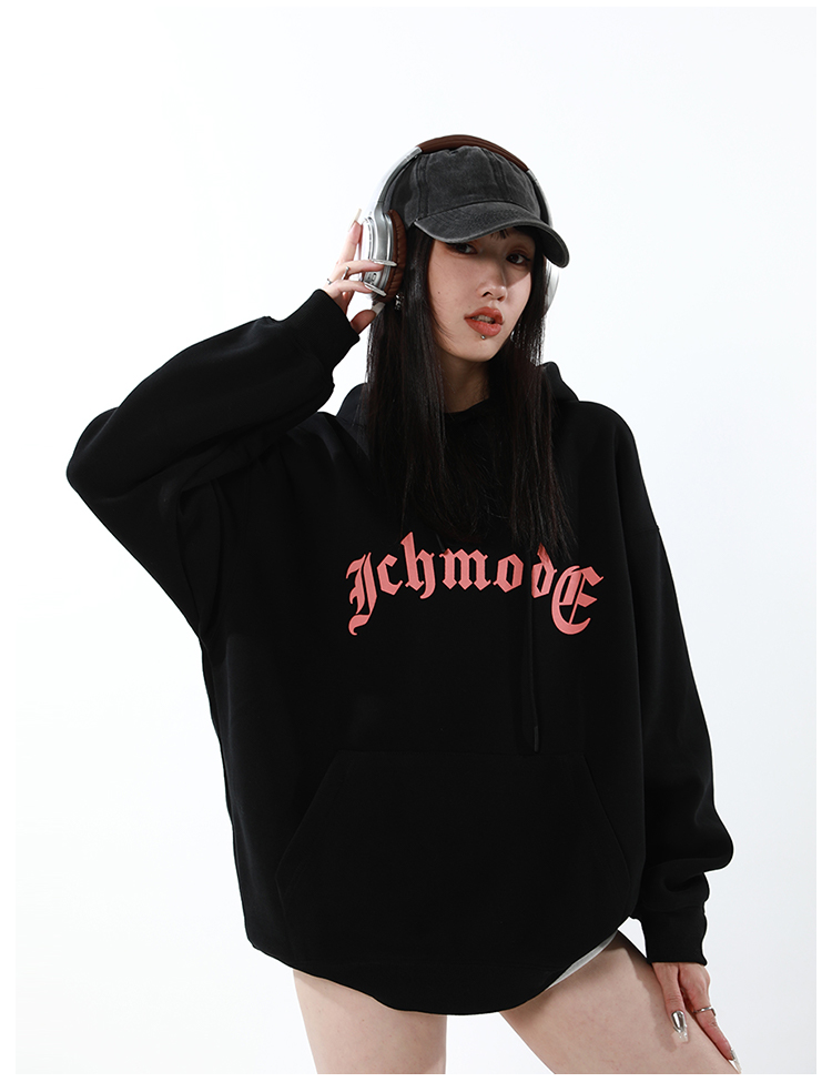 ICH MODE潮牌美式街頭設計感字母長袖寬鬆百搭春秋新款連帽運動衫女
