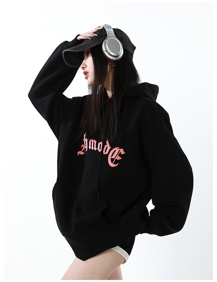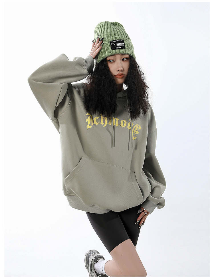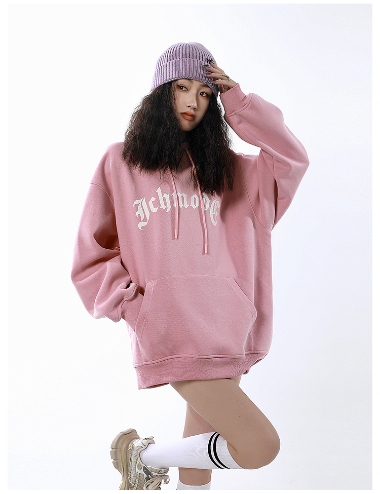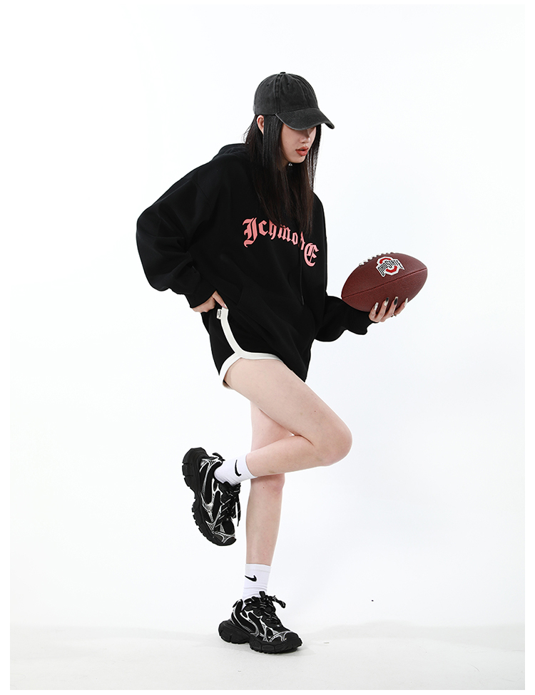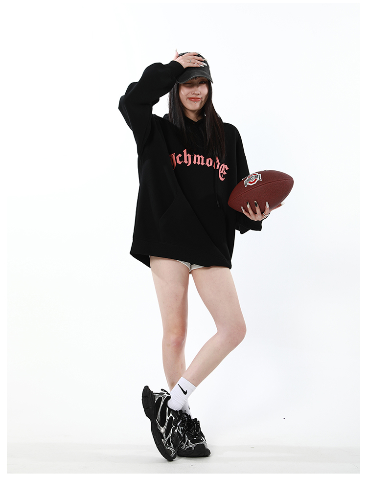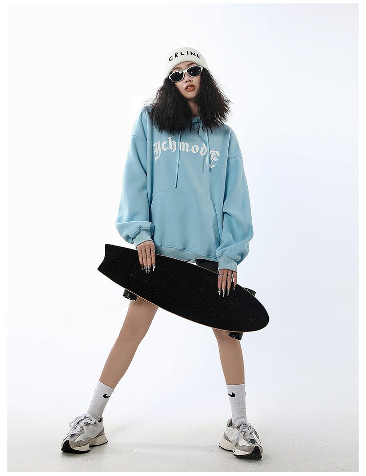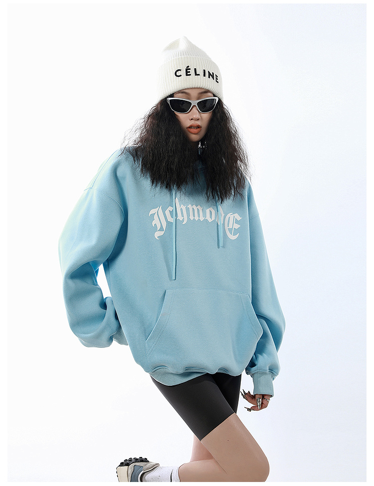 ICH MODE潮牌美式街頭設計感字母長袖寬鬆百搭春秋新款連帽運動衫女