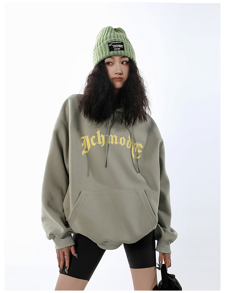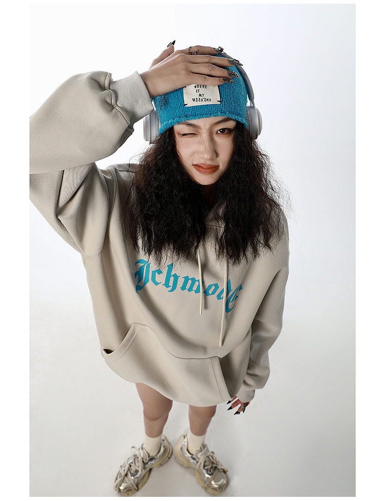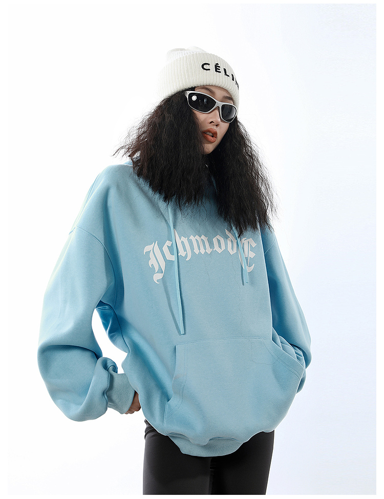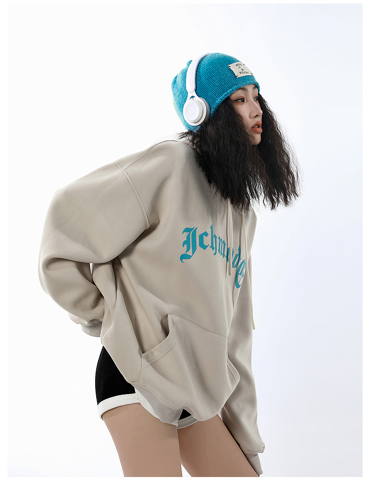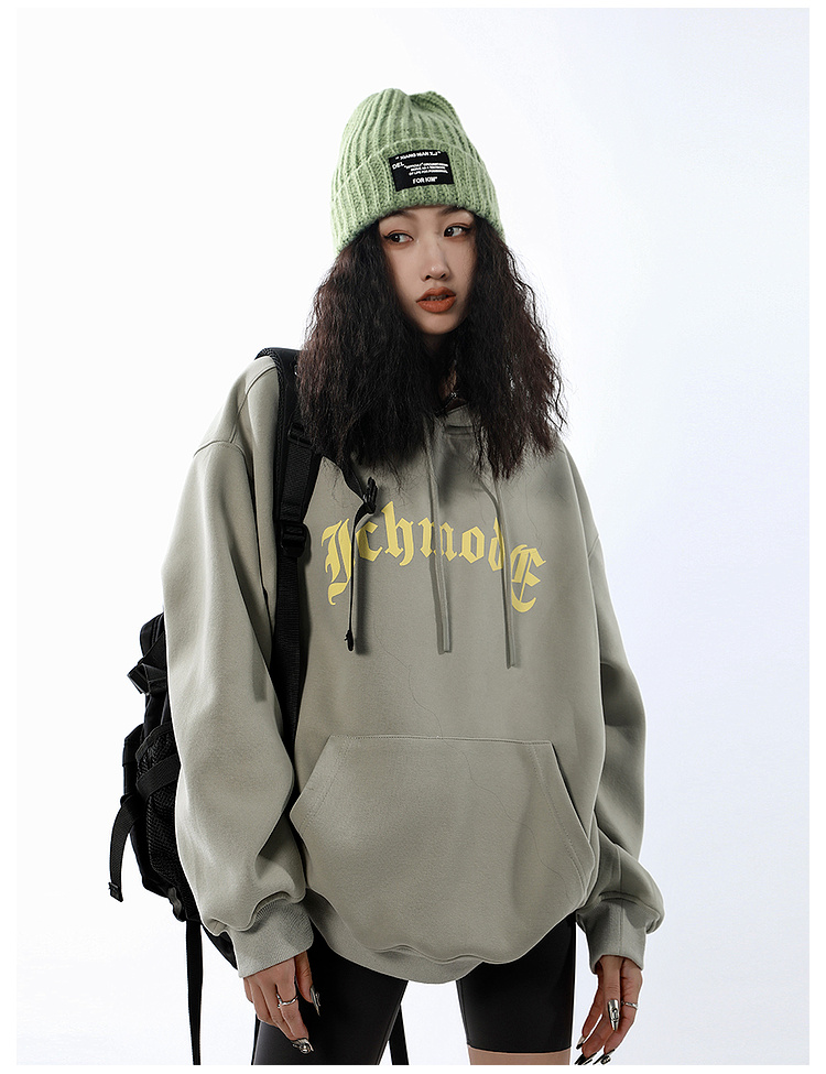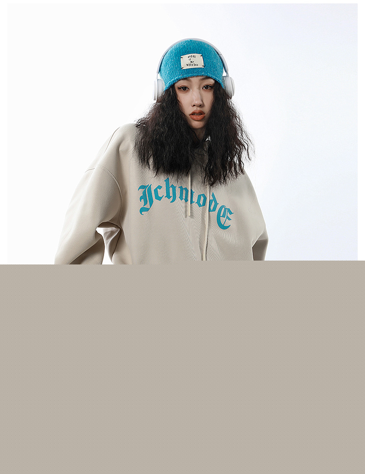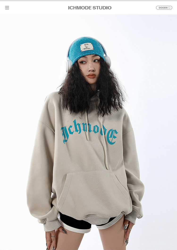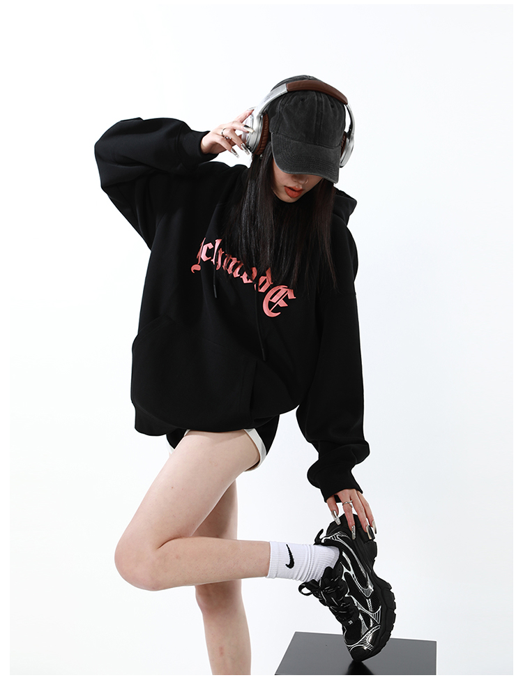 ICH MODE潮牌美式街頭設計感字母長袖寬鬆百搭春秋新款連帽運動衫女