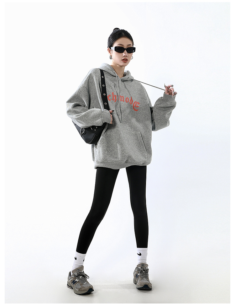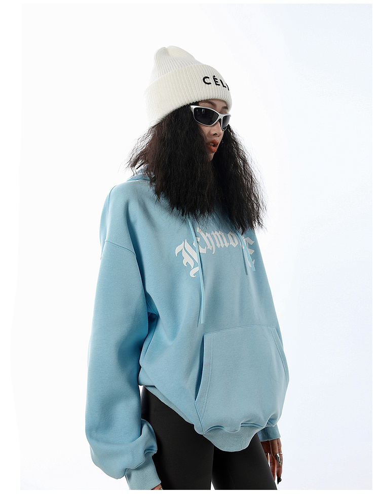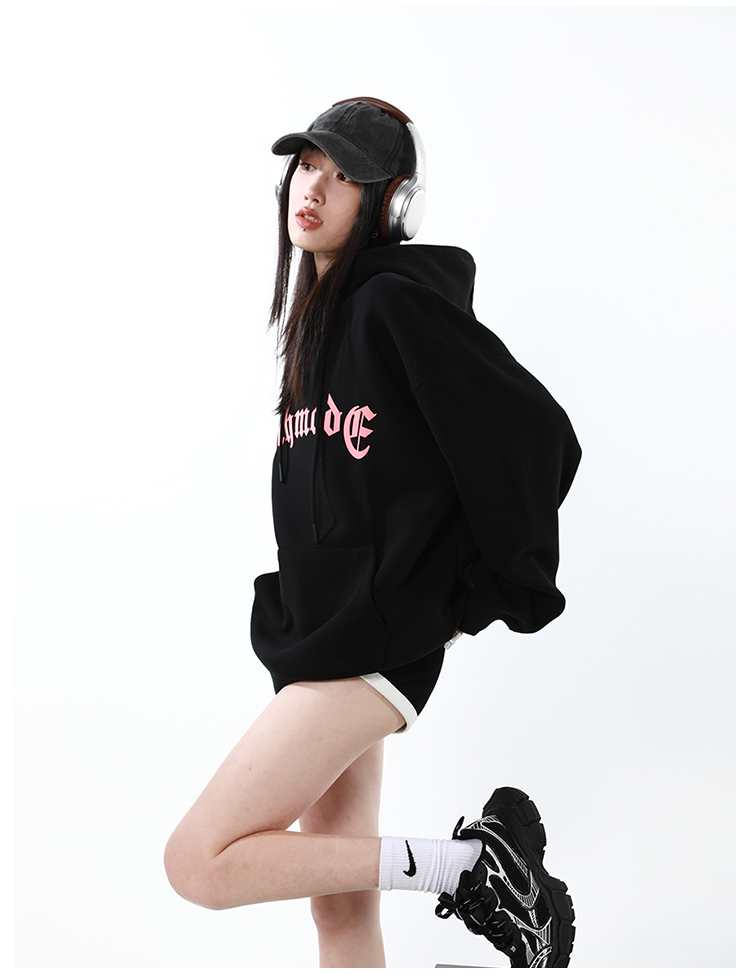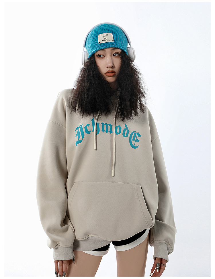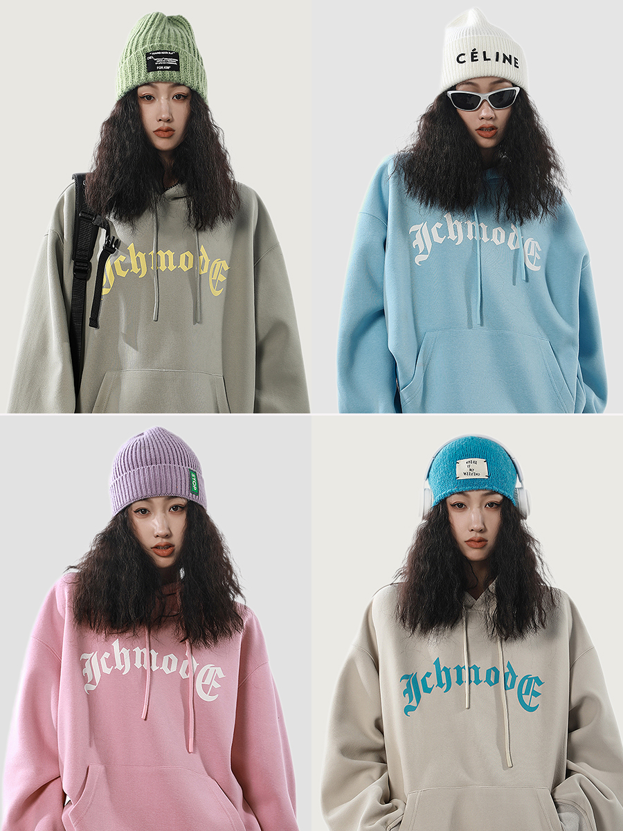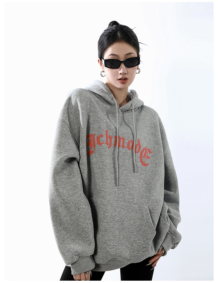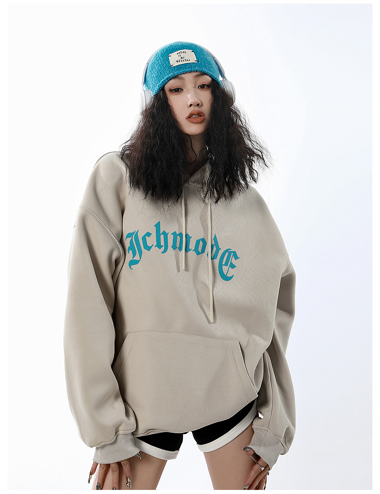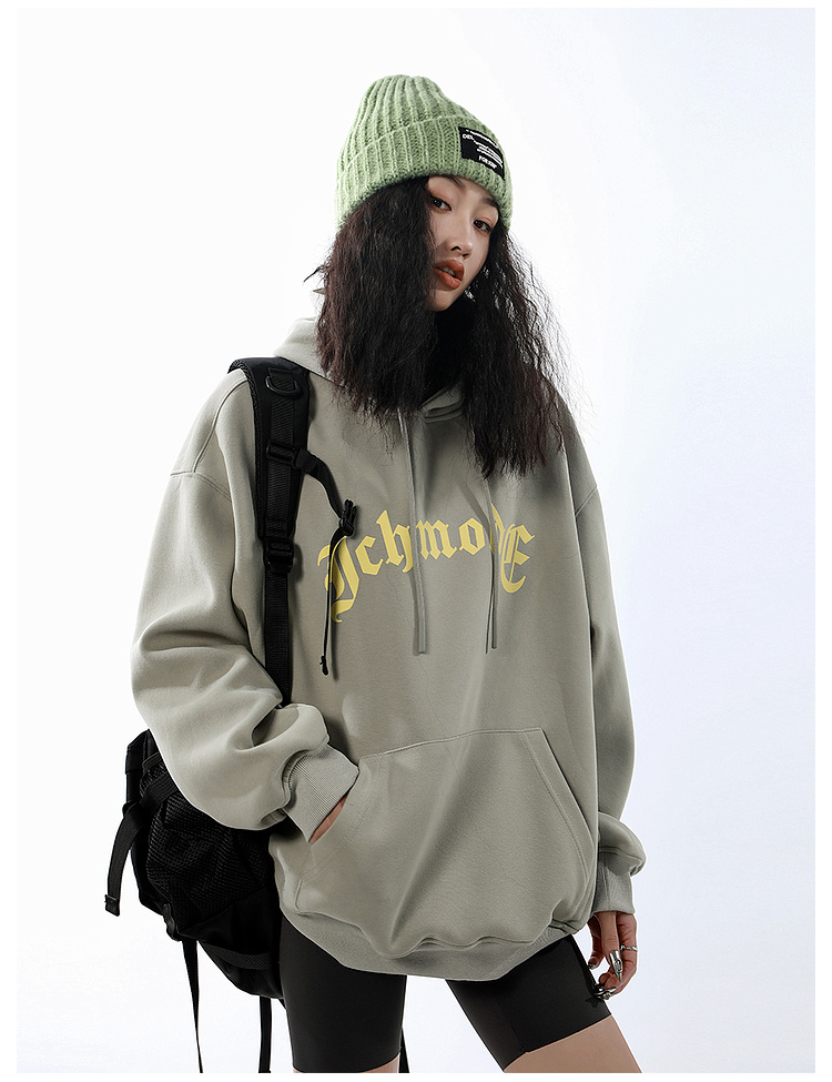 ICH MODE潮牌美式街頭設計感字母長袖寬鬆百搭春秋新款連帽運動衫女